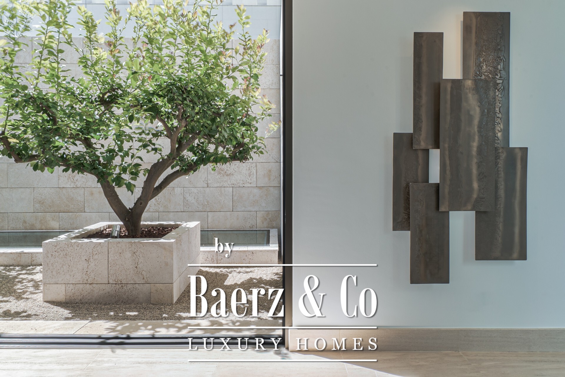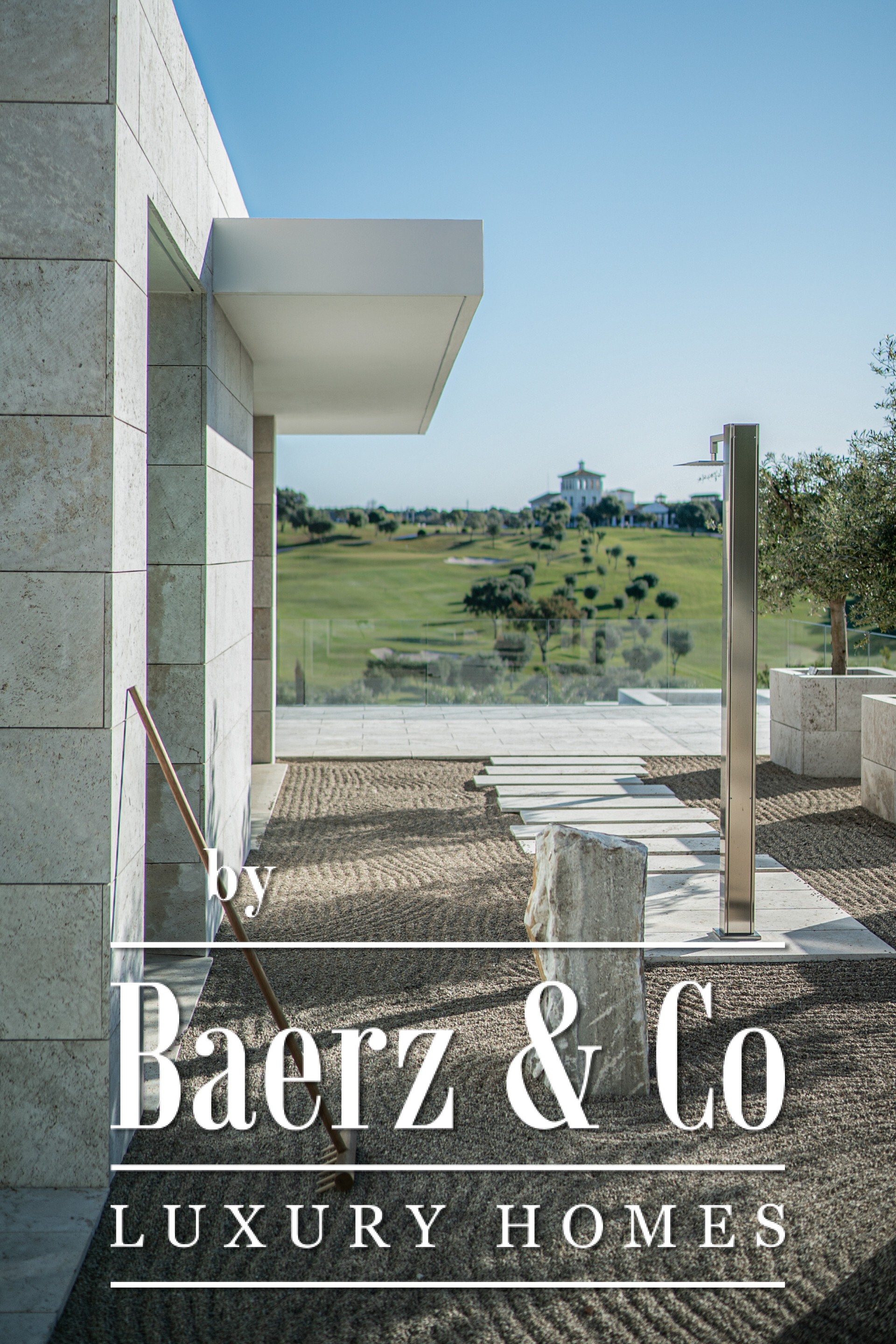 Set just above the 18th hole of La Reserva Club Sotogrande, this exceptional contemporary villa blends cutting-edge architecture with calm natural surroundings. Designed by Manuel Ruiz Moriche of ARK Architects, it occupies a 3,416 m² plot with 1,174 m² built across three floors connected by a lift. Expansive glass walls flood the interiors with light and capture open views across the golf course to the Mediterranean. Inside are five elegant bedrooms, generous open-plan living spaces, and a sleek designer kitchen, all finished to an impeccable standard. A discreet Sonos sound system runs throughout the home, offering seamless audio indoors and out. The lower level is dedicated to leisure and wellness, featuring a spa, gym, sauna, and cold plunge pool, creating a private sanctuary for relaxation and entertainment. Outside, landscaped gardens by renowned designer Rocío Sainz de Rozas integrate olive trees and aromatic Mediterranean planting, enhancing the villa’s harmony with its surroundings. Expansive terraces,