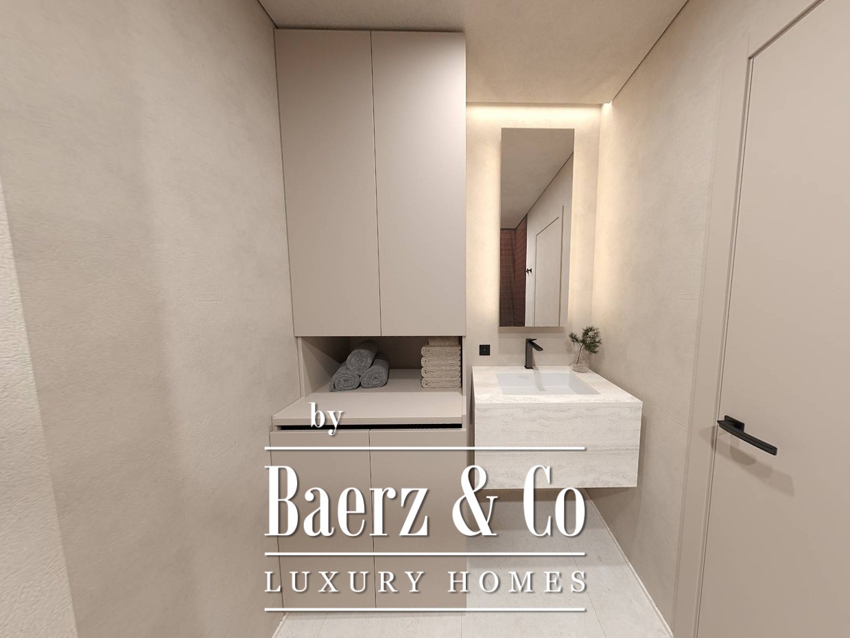 The apartment is offered fully furnished with bespoke interiors curated by ANSER & Partners, complemented by furniture from renowned maker Old Hara. Smart home systems by Legrand, premium appliances, and exquisite finishes—such as natural wood, stone, and high-end sanitary fixtures by Villeroy & Boch and Dornbracht—promise comfort and enduring quality. The residence benefits from independent ventilation, Samsung WindFree climate solutions, energy-saving glazing, and LED lighting throughout.