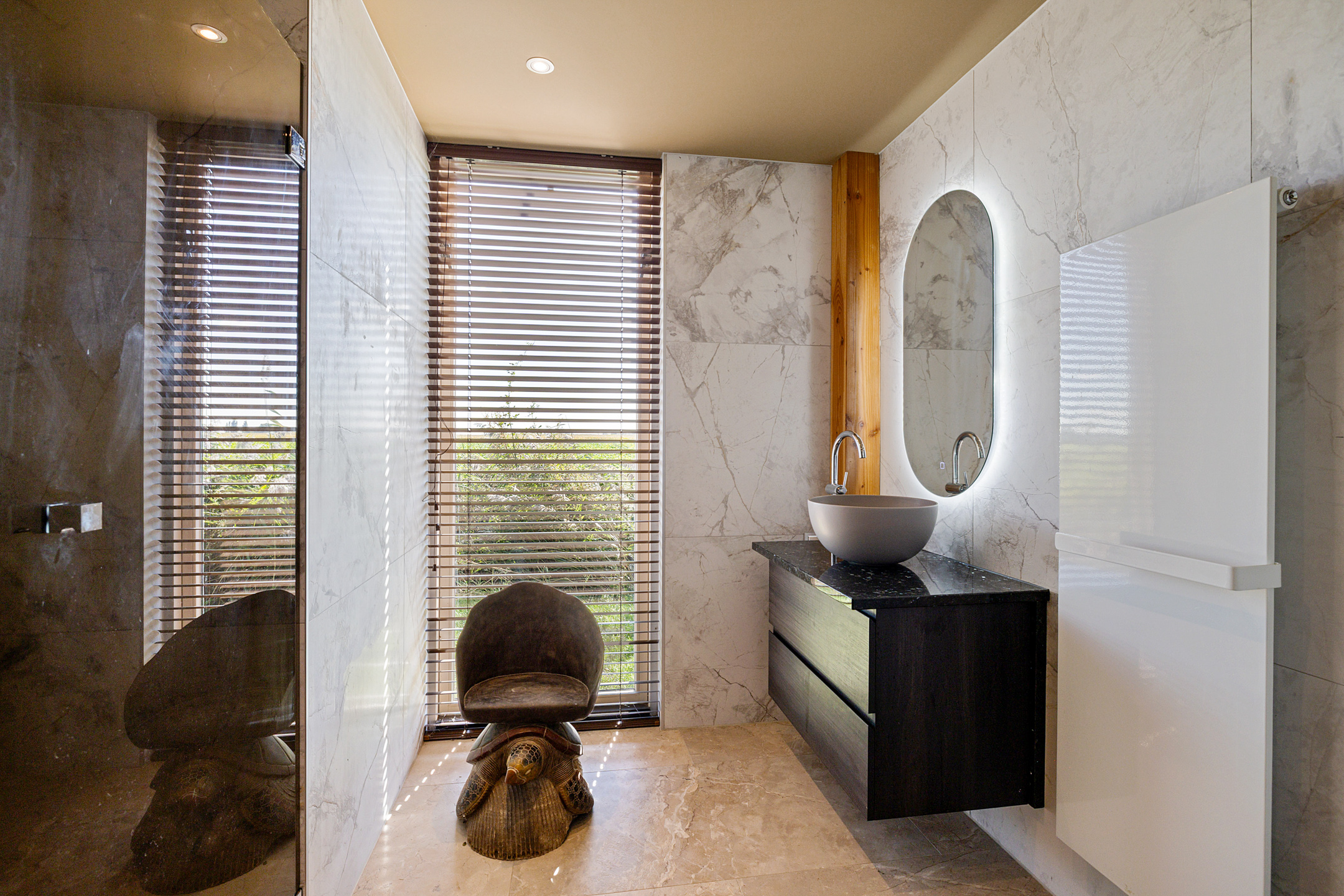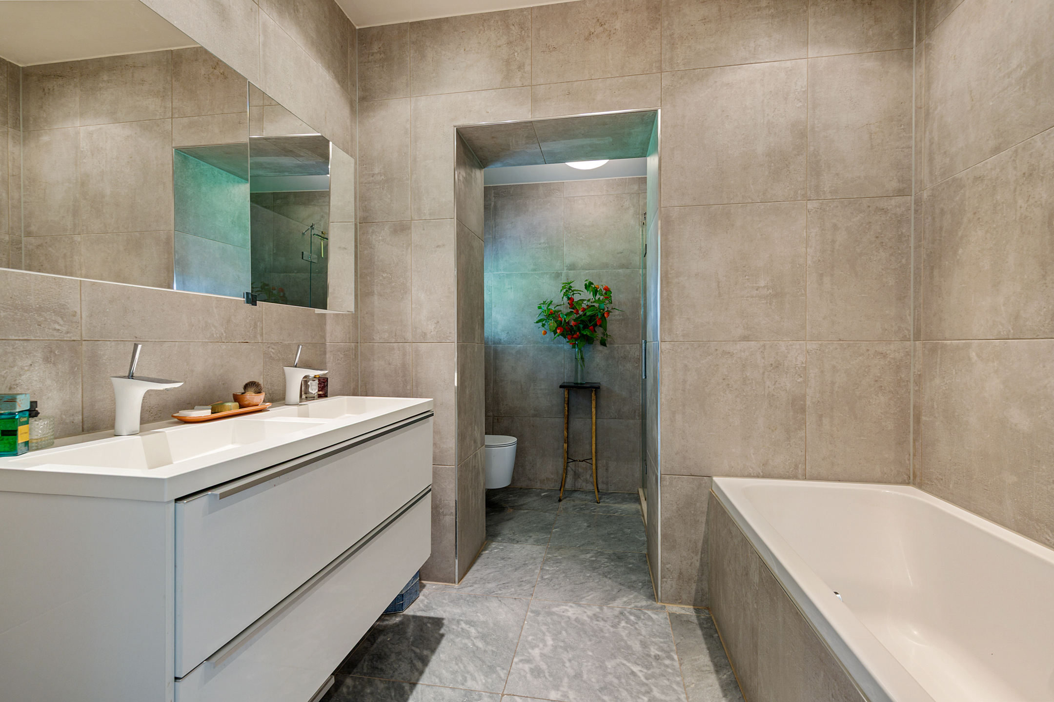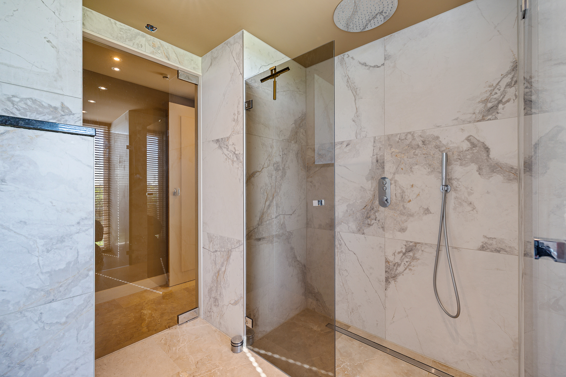 The residence opens with original wrought-iron detailing, antique Frisian tiles, and hardstone floors, guiding you through living spaces that blend classic character with contemporary ease. The ground floor’s four bedrooms and bathrooms, expansive kitchen with premium appliances, and living room framed by original beams establish a rhythm of daily life that shifts elegantly from indoors to panoramic terraces. Upstairs, additional bedrooms and a loft-style space create privacy and light, while the master suite connects directly to a dedicated wellness area with sauna, jacuzzi, and sun terrace.