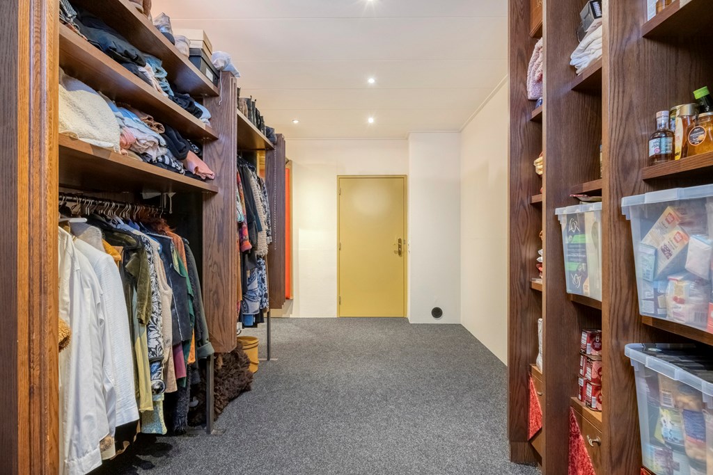 The live-in kitchen is modern and fitted with luxury appliances such as a large gas stove, a canopy extractor, dishwasher, fridge and freezer, air conditioning and a Quooker tap. Here you cook with a view of the garden, while natural light beautifully glides across the kitchen’s golden fronts. The conservatory and back garden can also be accessed via the kitchen. Adjacent, you reach on one side the practical utility room with laundry connections, and on the other a very spacious bedroom with an equally spacious walk-in closet and an en-suite bathroom. Sliding doors connect the bedroom to the garden, and the garden can also be easily reached via the walk-in closet. The generous bathroom features light tiling and a skylight, a whirlpool bath, double vanity, walk-in shower, wall-hung toilet and plenty of storage space.
