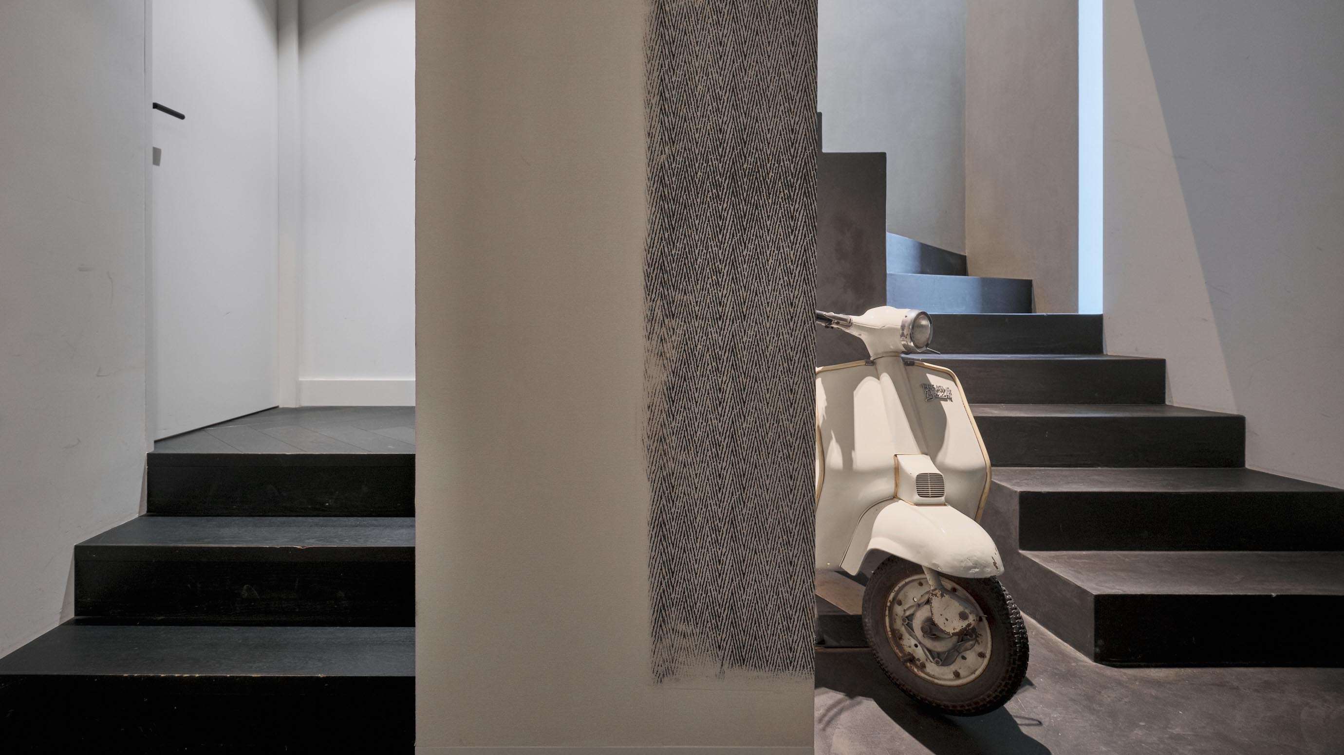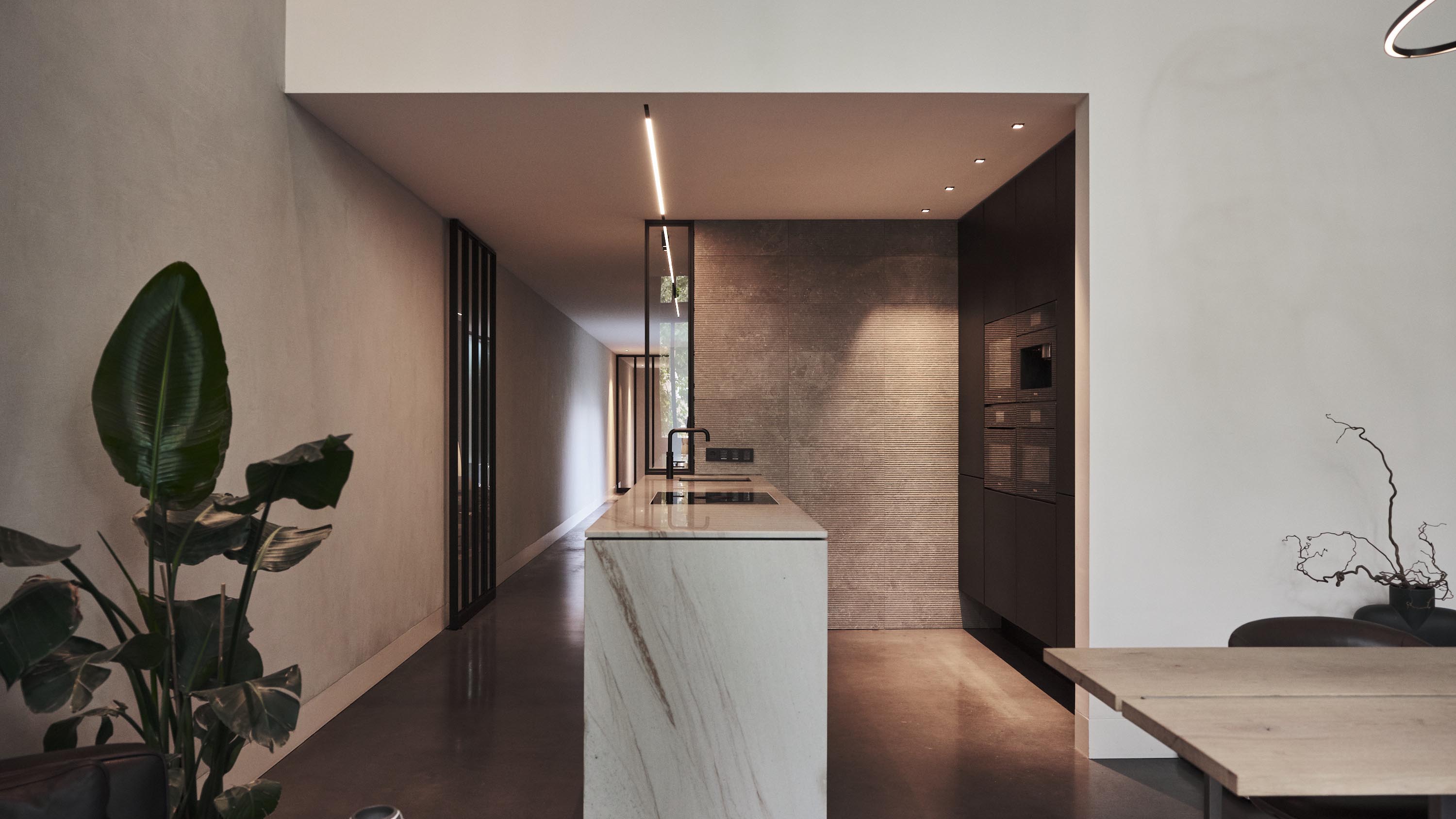 The residence at Cedron forms a serene oasis featuring high-quality materials and an iconic vertical glass shaft with a Tuscan cork oak as a living sculpture. The presentation space on Nieuwstraat, by contrast, is a restrained and thoughtfully designed workspace where clarity, focus, and creativity take centre stage.