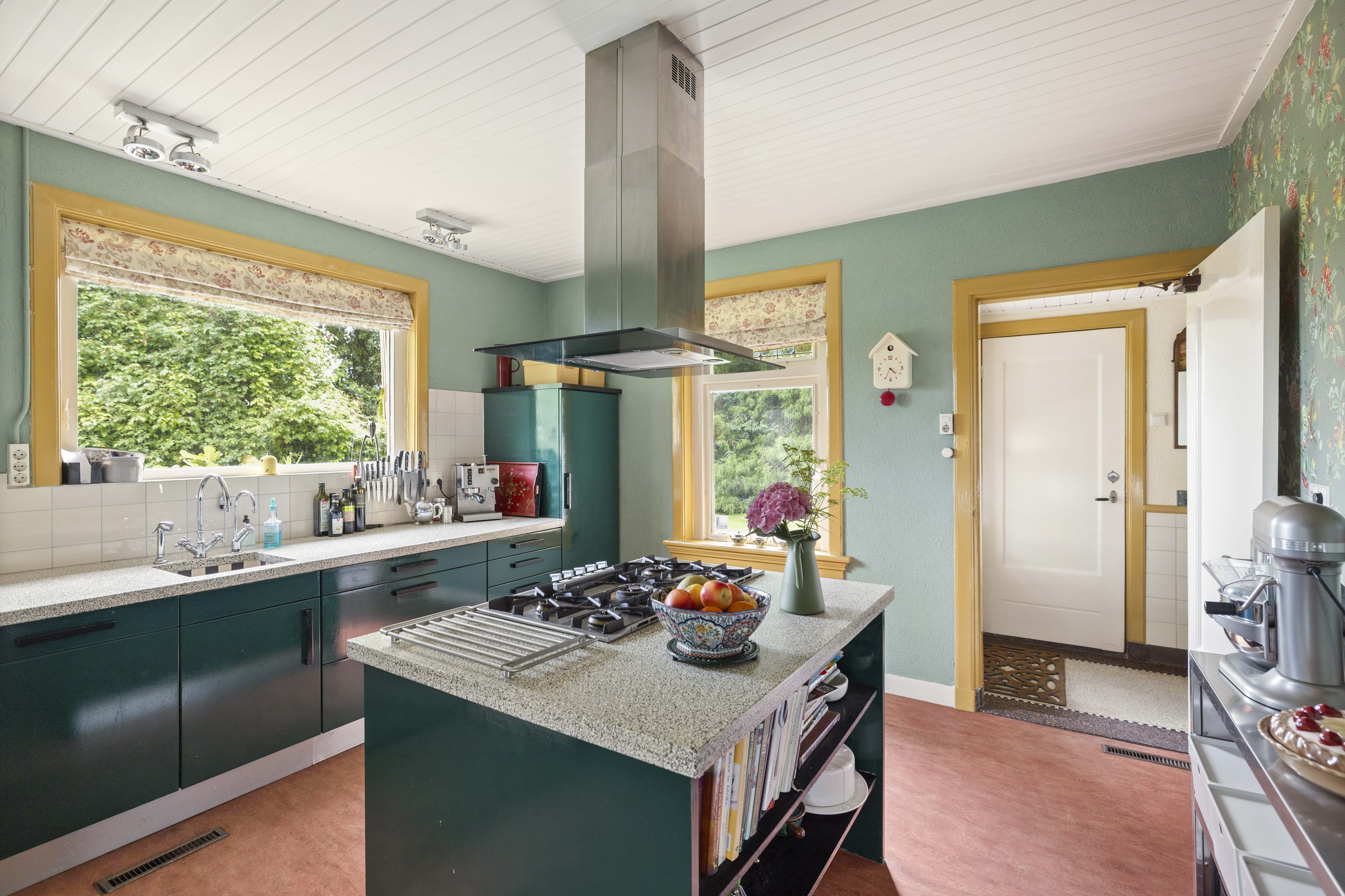 The current residents have lived here for a long time, so it is obvious that they have grown very fond of this house. Although the villa is not a listed building, it has been brought into the 21st century with a great deal of love, knowledge and skill. After all, in these times of sustainability, it is good to remember that few objects are as sustainable and circular as these kinds of special houses. This house is well insulated and there are 27 solar panels on the roof of the garage. In addition, you can keep this house wonderfully warm with the fireplace and electric fireplace with mantelpiece and a Rayburn in the kitchen.