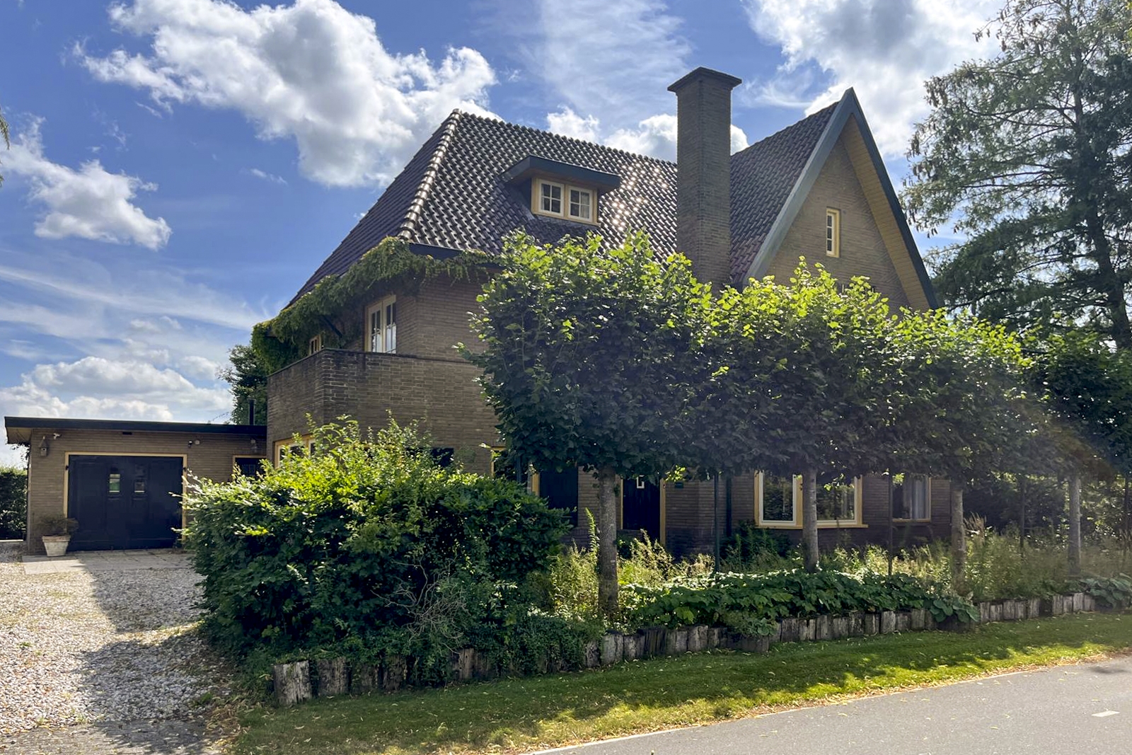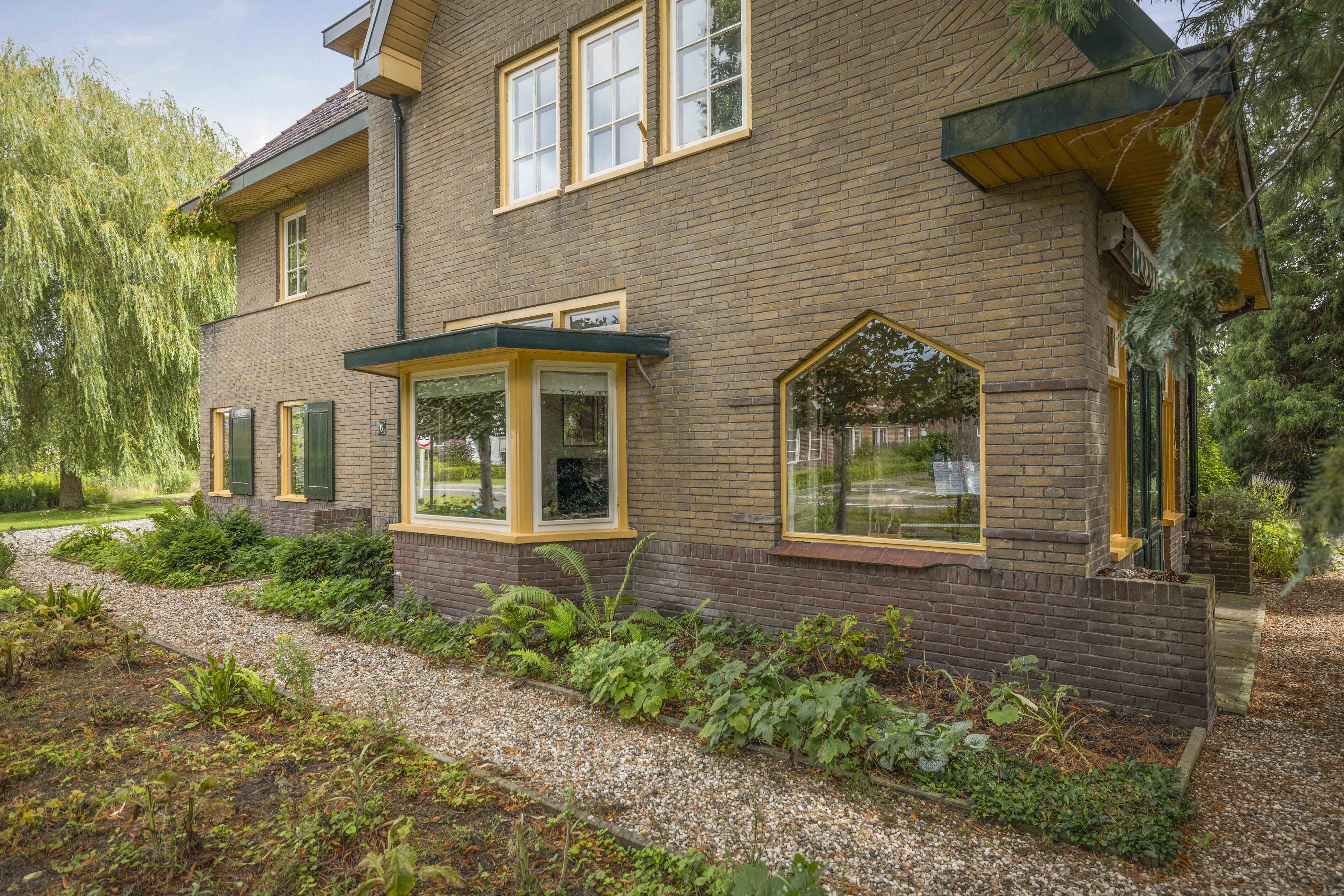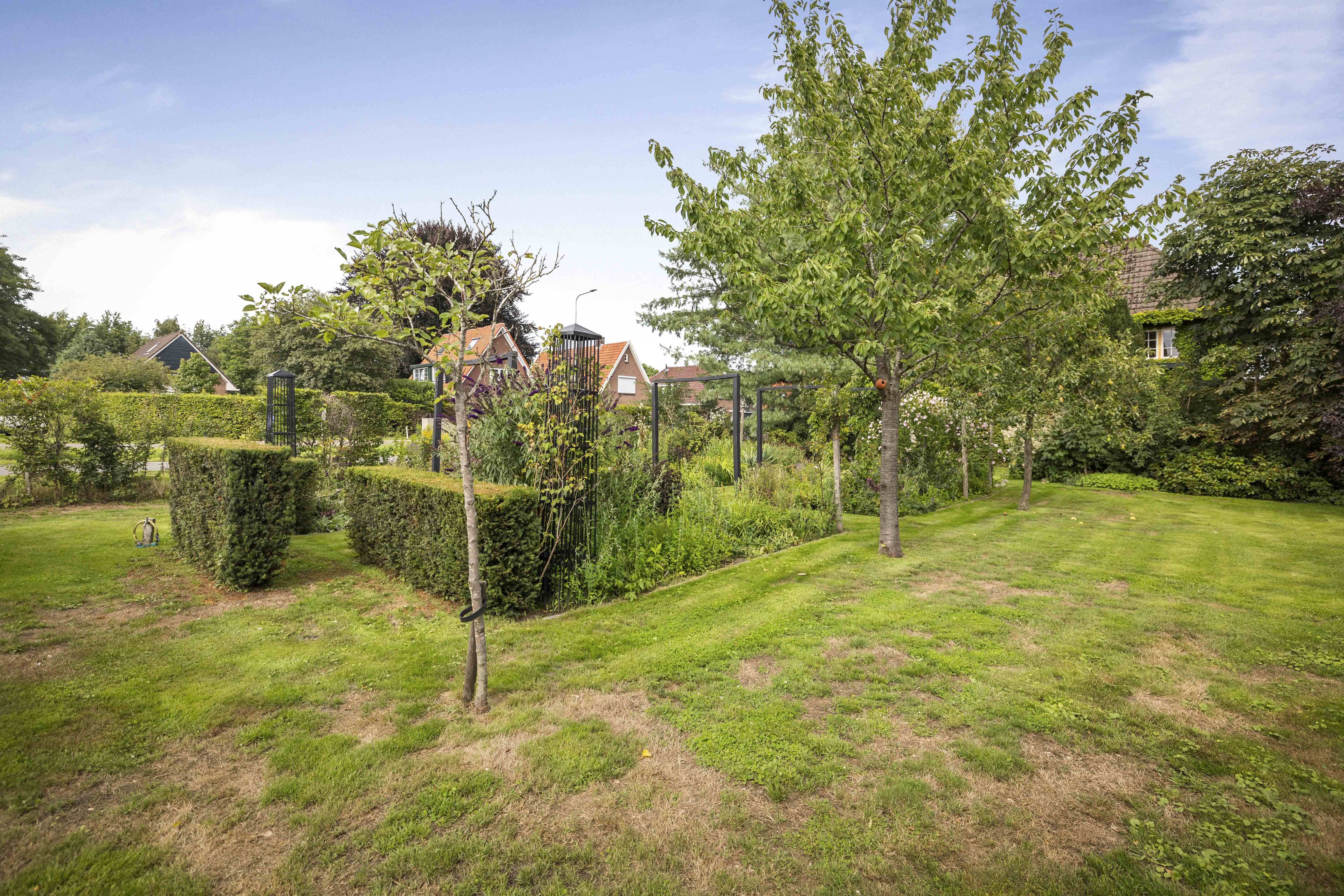 The house is surrounded by a beautiful garden. There is a wooden garage with an adjoining carport, providing space for two cars to be parked in the dry. Garden equipment can also be stored here neatly and sheltered. Due to the orientation of the house, there is a lovely sun terrace behind the property. There are cosy seating areas scattered throughout the garden. The plants are diverse, colourful and carefully chosen, making it a real treat for the senses. There are beautiful sightlines, a small flock of chickens in a cosy run and the dahlias can quietly awaken from their hibernation in the greenhouse. There are two water features and you will enjoy a great deal of privacy here thanks to the secluded location, the man-sized hedges and the mature trees.