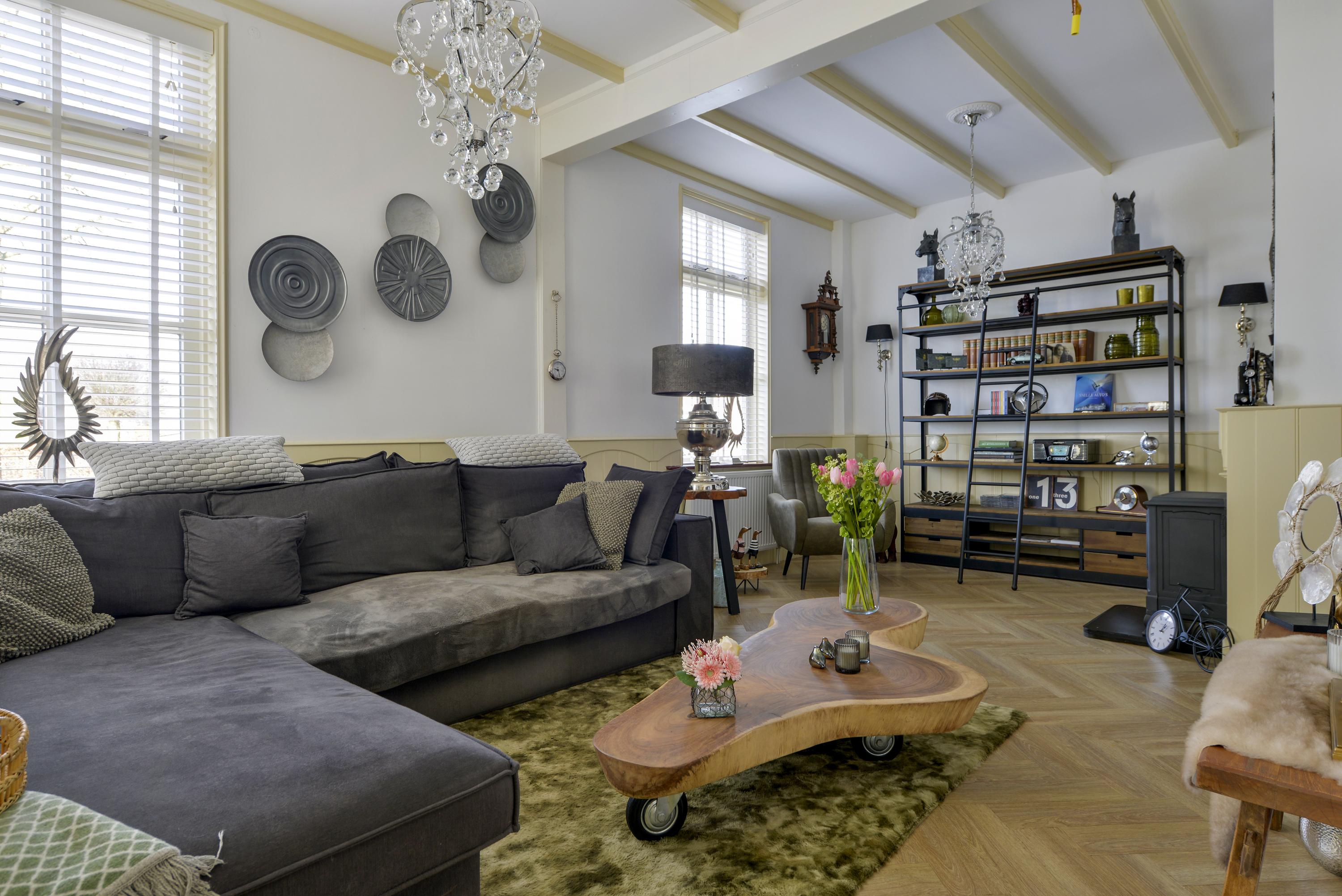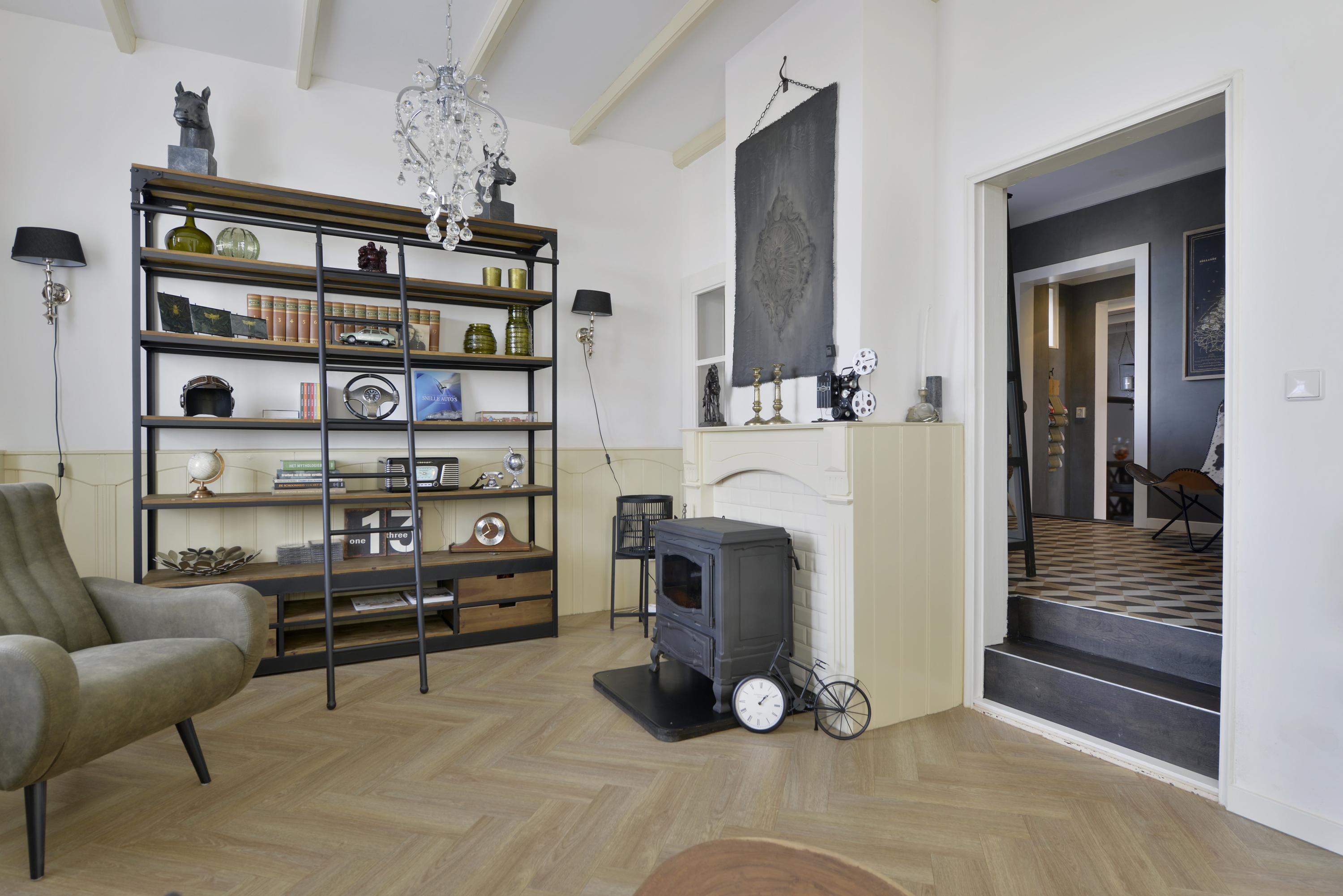 Ground floor: entrance hall with meter cupboard access to the cellar and staircase. Atmospheric and bright living room at the front of the house with an adjoining cosy raised room. From both the hall and the raised room the spacious kitchen is accessible. This modern kitchen was renewed in 2022 and fitted with various built in appliances. There is also a generous utility room with the central heating system and laundry connections.