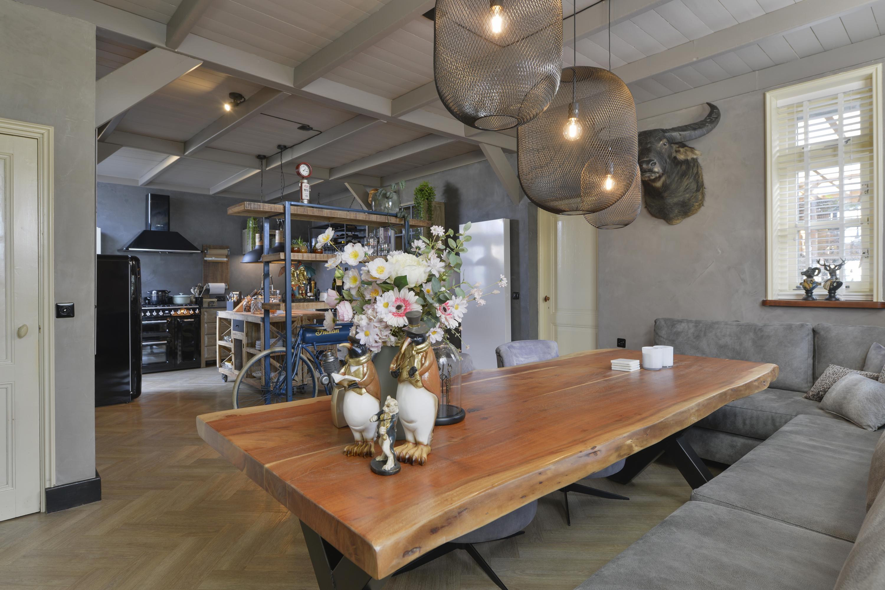 Behind the characteristic facade you will find a modernised farmhouse that has been finished with great care and designed for comfortable living. With a living area of no less than 416 m² and energy label A luxury and sustainability come together convincingly. The kitchen was renewed in 2022 and connects perfectly to the spacious and bright living areas that offer a calm and pleasant atmosphere. Outside there is a heated swimming pool a generous covered terrace with outdoor kitchen a spacious driveway and several multifunctional outbuildings including one that has been furnished in an atmospheric restaurant setting (private use only). The property also has its own orchard which enhances the rural feel. A total of 48 solar panels contribute to low energy costs.