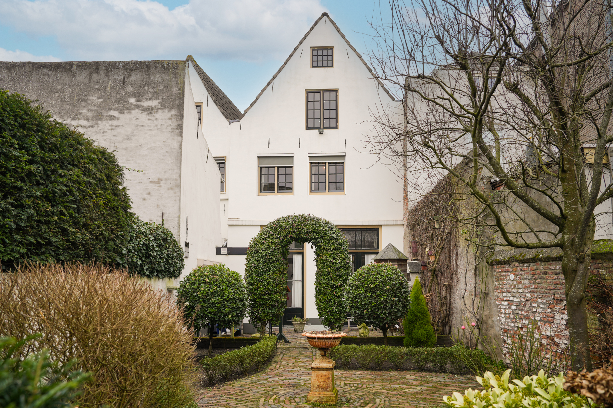 Originally dating back to the 16th century, the house features a double vaulted cellar running the full depth of the property, accessible from the garden. The property is heated via an Intergas HRe boiler. In front of the house lies a charming stone stoop with wrought-iron railings on either side. Behind the property is a delightful city garden with a rear entrance to Koningstraat. This evergreen garden is arranged with terraces paved in traditional brick, bordered by low hedges and shrub-lined beds.
