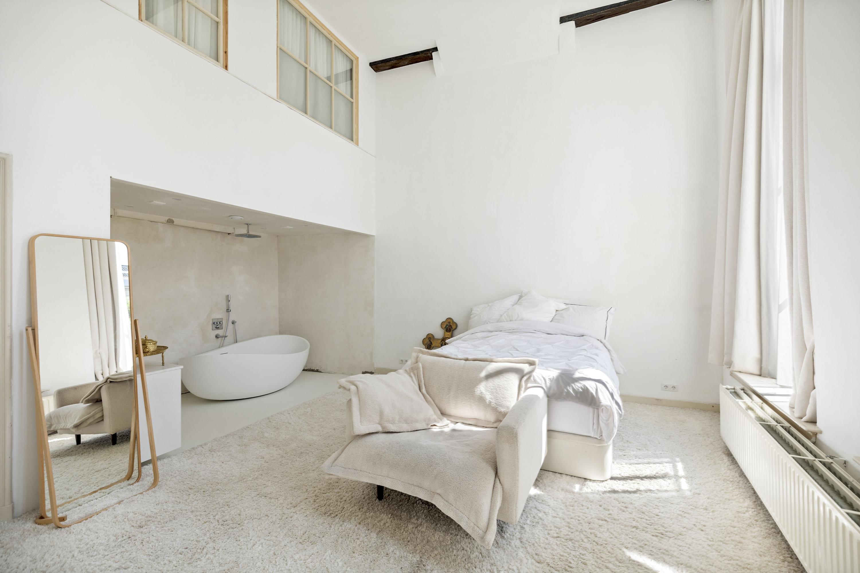 Three bedrooms are arranged for both privacy and connection. The master suite is complemented by a plush ensuite with a freestanding bathtub and double sinks, while the mezzanine reveals a fourth bedroom with a private bathroom and walk-in closet. Contemporary comfort is woven throughout, yet the romantic grandeur of the late nineteenth century endures.