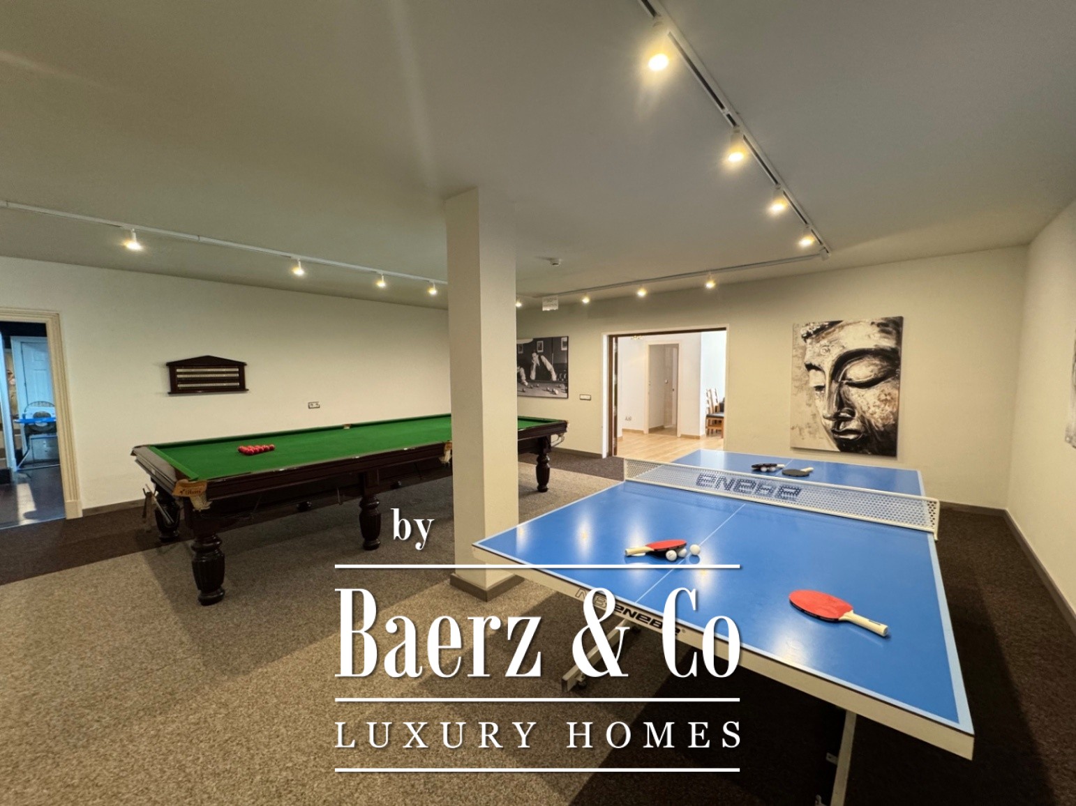La planta baja está destinada al bienestar, con un cine privado, spa, gimnasio y lavandería, complementados por un apartamento de invitados con tres dormitorios y cocina totalmente equipada. Un garaje para tres coches completa las cuidadosamente planificadas zonas exteriores, que incluyen piscina, jardín paisajístico y una parcela cercada y segura de 6.315 m².