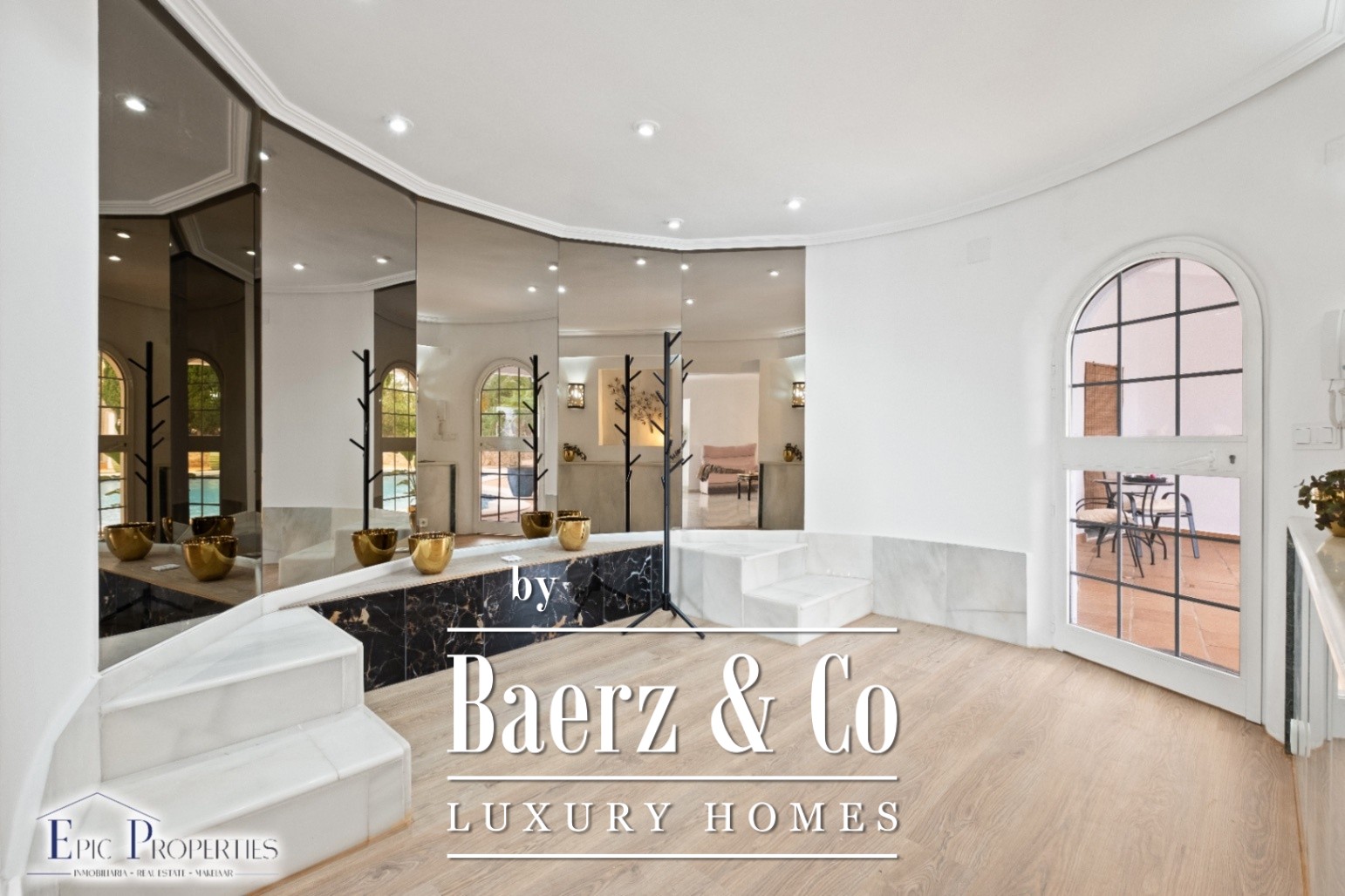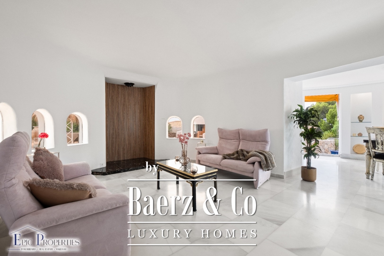 En el exterior, dos atractivas piscinas, una con cascada, solárium con acceso independiente, zona de barbacoa y jardines maduros enmarcan la vida diaria con una elegancia discreta. Con amplio aparcamiento, cochera y detalles pensados como doble acristalamiento, puerta de seguridad y parcela vallada, esta villa responde al estilo de vida de quienes valoran la autenticidad, la tranquilidad y la atemporalidad de Altea. La moderna villa en Altea se erige como una opción refinada para quienes buscan una villa de lujo en venta en Altea, con espacios interiores y exteriores ejemplares.