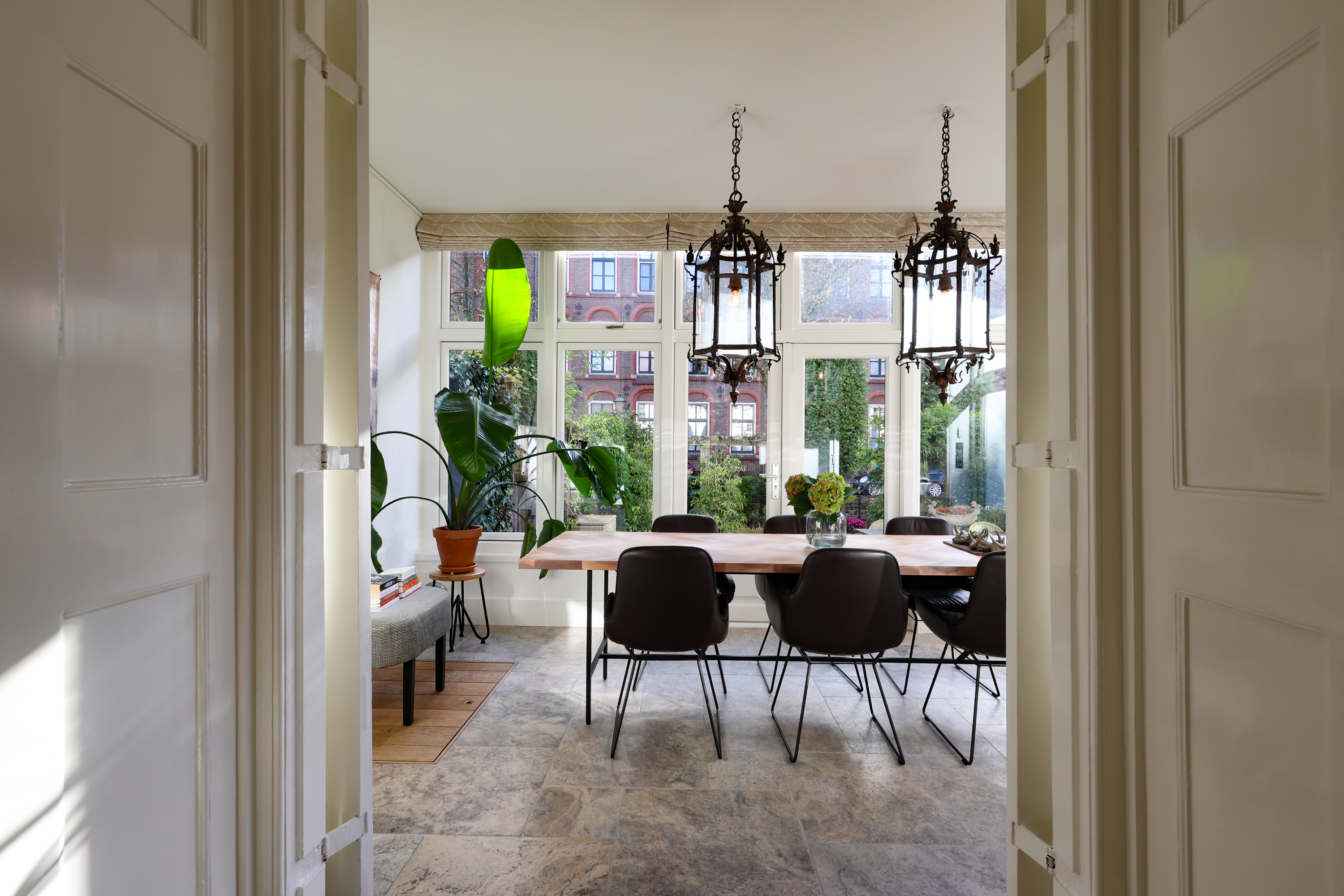 Al entrar, el ambiente destaca por su luminosidad, amplitud y detalles originales. La chimenea abierta y las ventanas tradicionales del salón enmarcan vistas a la ciudad, mientras que la cocina Lodder y el rincón de desayuno se orientan hacia la histórica avenida. Un espectacular invernadero conecta directamente con el jardín privado, donde una terraza se asoma sobre el canal Zuidsingel, generando un remanso de paz a pocos pasos del bullicio urbano.