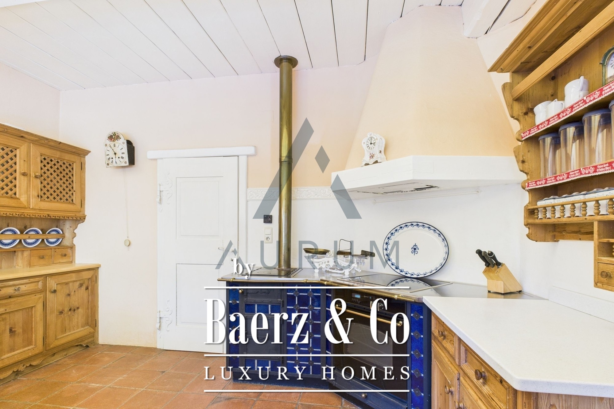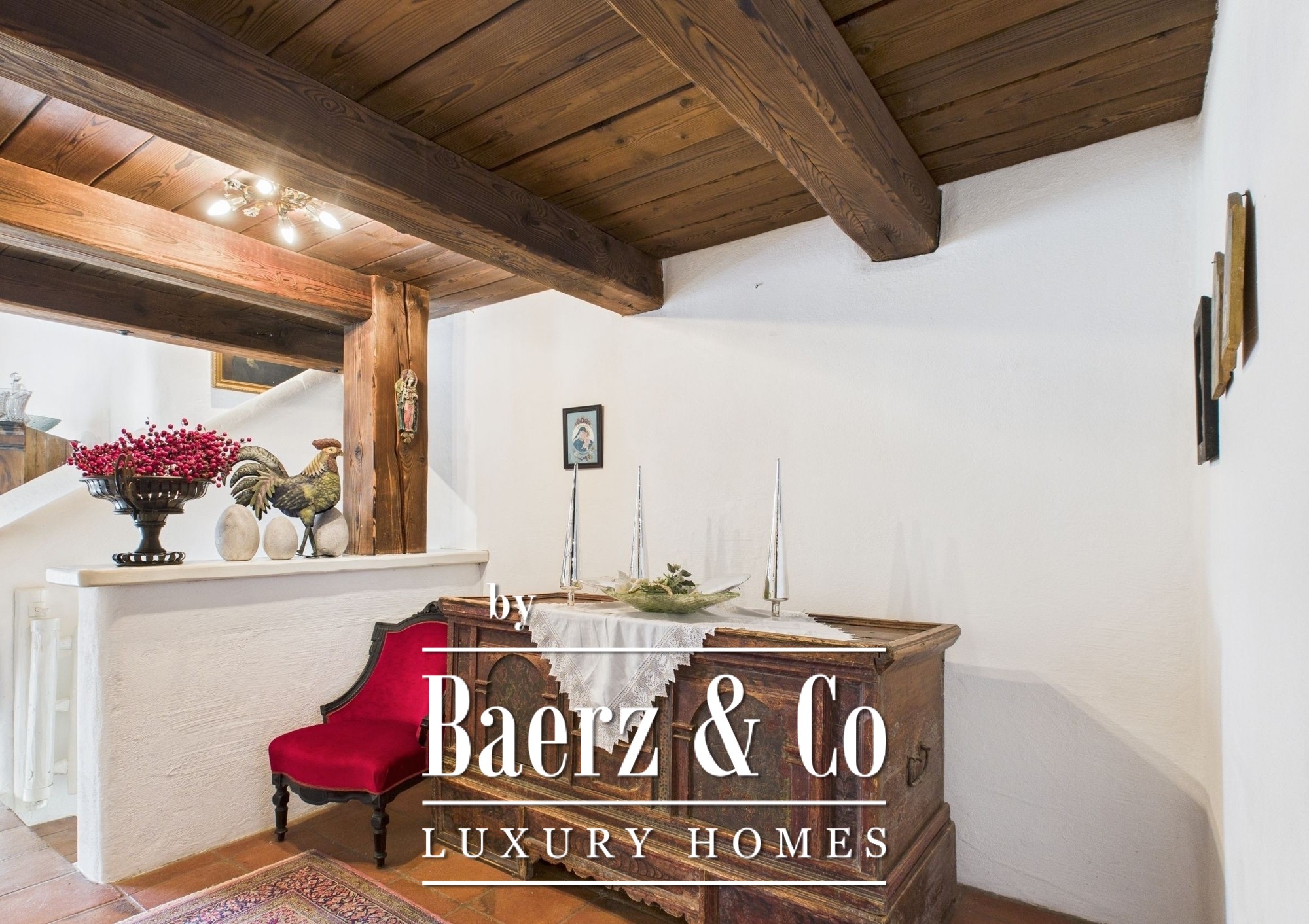 La esencia de la casa se encuentra en la planta superior, donde las vigas vistas, una estufa de cerámica y suelos italianos acogen el salón de 50 m². La luz natural entra a través de una gran puerta corredera que da paso a la terraza orientada al suroeste y conecta perfectamente con el cuidado jardín. Una cocina tradicional con comedor, paneles de madera, horno adicional y despensa, ofrece un espacio acogedor para las comidas. Esta planta se completa con un dormitorio, un vestidor y un baño. En la planta baja, dos dormitorios más tienen acceso directo al jardín, acompañados por un segundo baño con bañera.
