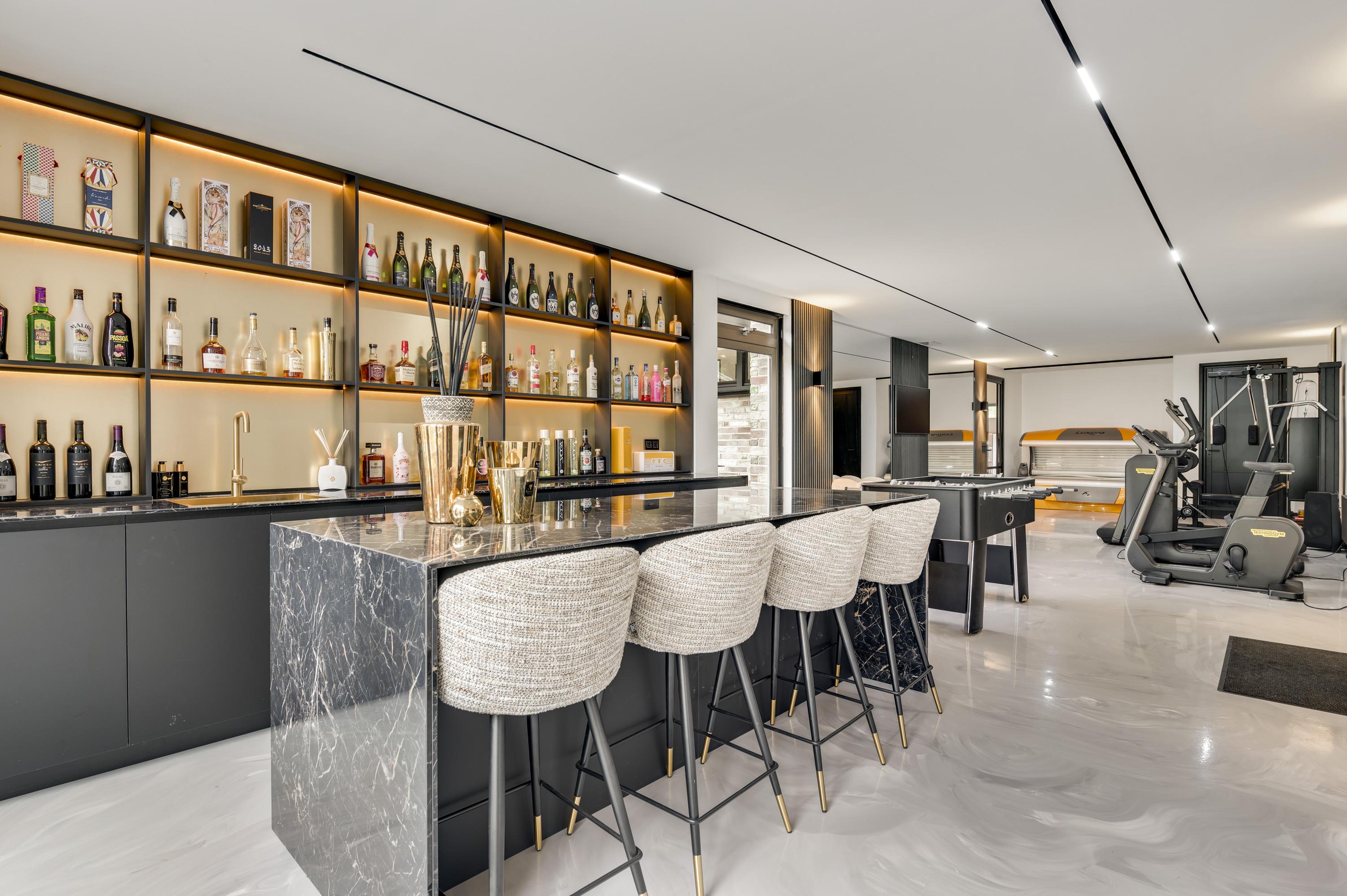 La villa, de 490 m² y completamente modernizada en 2020 con mejoras adicionales en 2024, combina claridad arquitectónica con una profunda sensación de privacidad. Una majestuosa entrada privada da paso a un doble carport y garajes integrados. En el interior, la luz natural invade los amplios espacios de estar orientados al sur, presididos por una chimenea abierta y una cocina equipada con electrodomésticos de alta gama. Cinco dormitorios, incluyendo una suite principal con vestidor y acceso directo al jardín, se complementan con tres baños diseñados cuidadosamente. Aire acondicionado, calefacción por aire caliente, triple aislamiento y certificado energético C refuerzan el confort y la eficiencia de la vivienda.