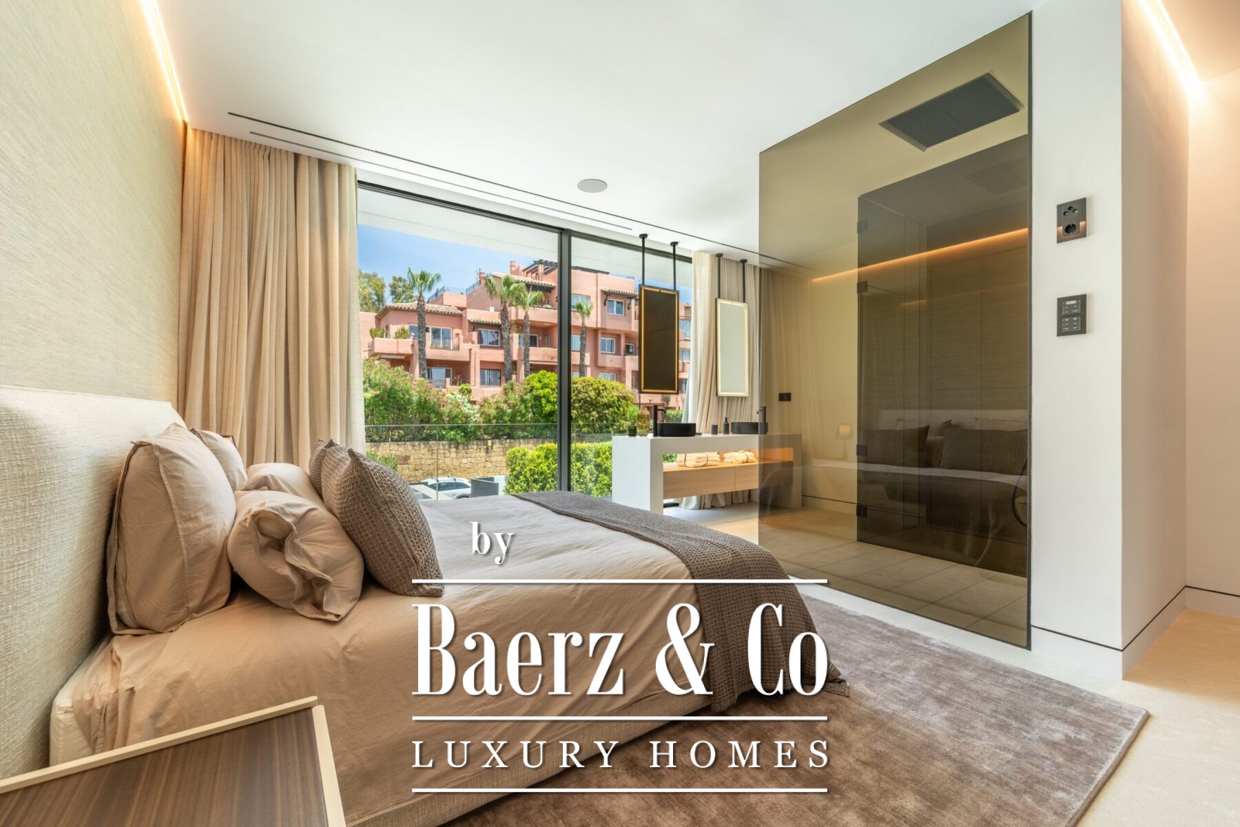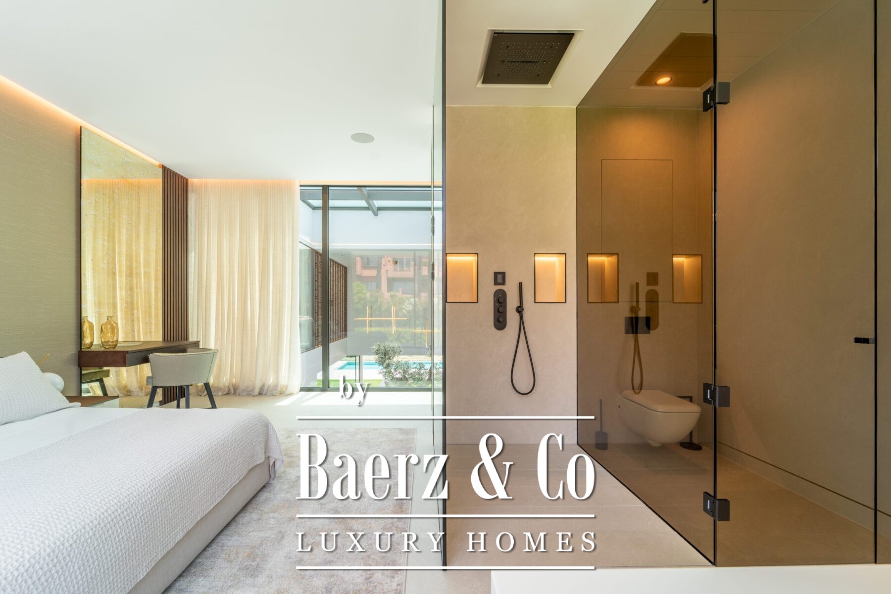 Refinada en cada detalle, la propiedad dispone de cinco dormitorios en suite y cinco baños, con cada espacio concebido para armonizar con la luz andaluza y las vistas del mar Mediterráneo. La planta principal presume de una generosa zona de salón y comedor, acceso directo a la terraza y una cocina totalmente equipada conectada con los jardines y dos piscinas privadas. En la planta superior, cada dormitorio disfruta de terrazas privadas, destacando la suite principal por su espacioso vestidor y vistas panorámicas al mar que se extienden a lo largo de la Milla de Oro.