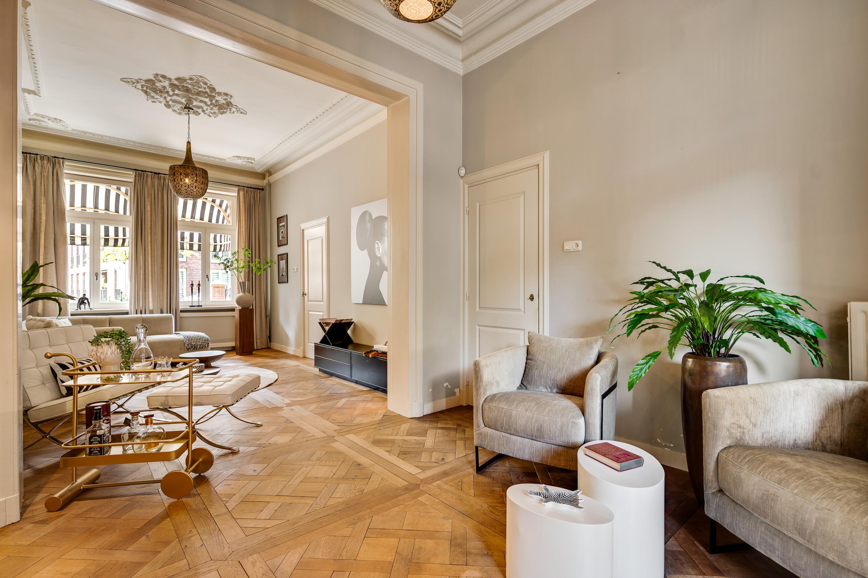 La mansión Roermond se erige como una residencia señorial en el apreciado barrio de Kapel in 't Zand, donde la grandeza clásica se encuentra con el confort moderno en el corazón de la ciudad. Esta propiedad, con 420 m² de espacio habitable sobre una parcela de 576 m², representa el refinamiento de la vida urbana, combinando privacidad con cercanía al animado centro de Roermond. Tras su imponente fachada, nueve dormitorios, tres baños y un elegante despacho se integran mediante una distribución cuidadosamente diseñada. El salón, de casi diez metros de longitud, está realzado por un suelo de parqué estilo Versalles y grandes ventanales, mientras que las puertas francesas se abren a una terraza cubierta y a un apacible jardín urbano—un refugio privado en plena vitalidad de la ciudad.