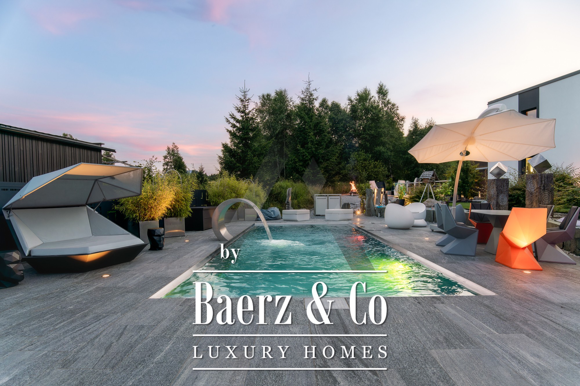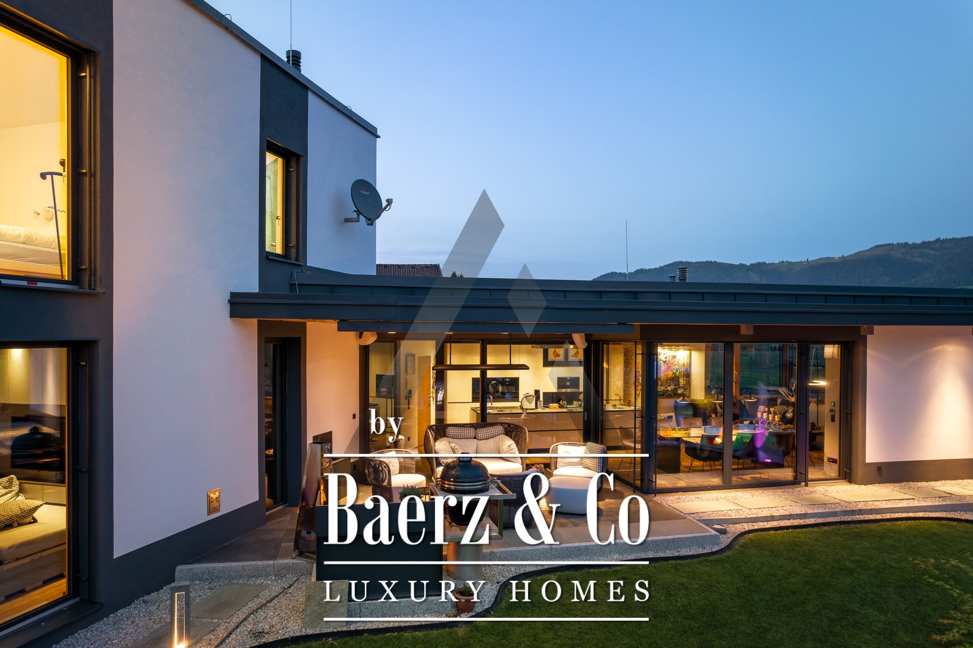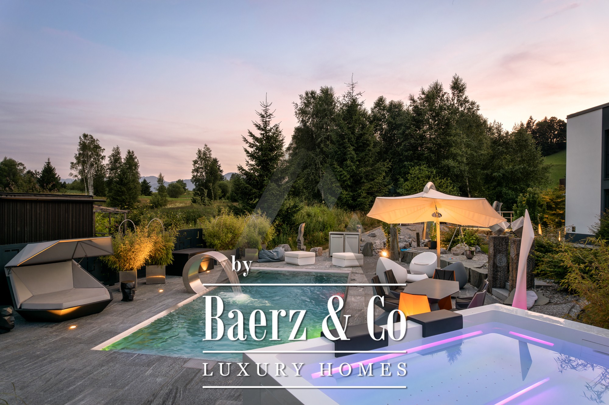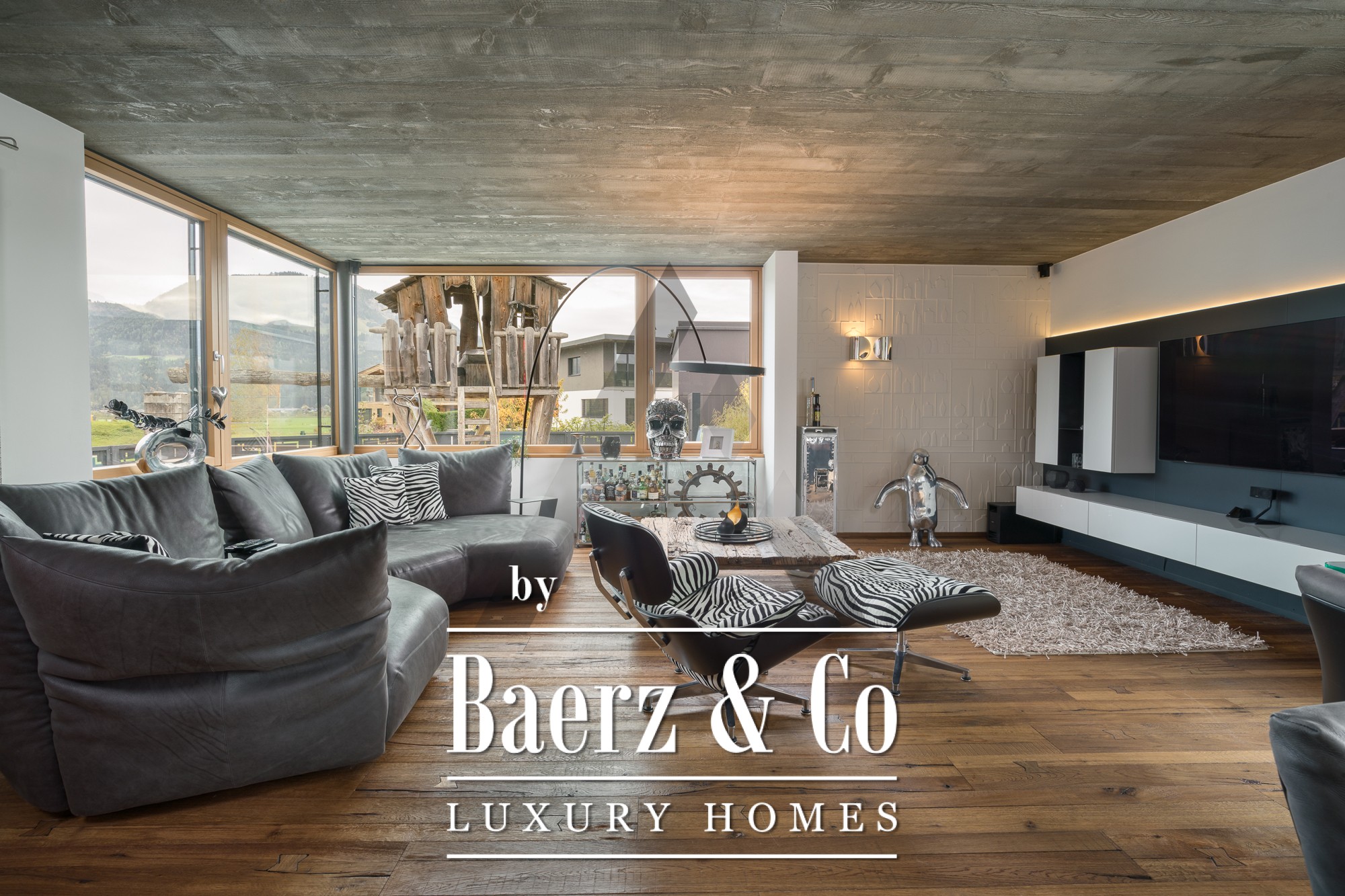 La casa independiente en St. Johann in Tirol se ubica en una posición tranquila y bañada por el sol, ofreciendo vistas panorámicas al Kitzbühel Horn y a las montañas Wilder Kaiser. Esta propiedad contemporánea, con 418 m² de superficie habitable en una parcela de 1.186 m², encarna la esencia de la vida alpina refinada. Un paisaje idílico se despliega con un estanque, arroyos ajardinados, amplias terrazas y panorámicas de montaña. El entorno exterior se realza con una piscina de acero inoxidable, un jacuzzi de diseño Treesse y una sauna, que invitan a disfrutar de mañanas relajadas y tardes reparadoras.