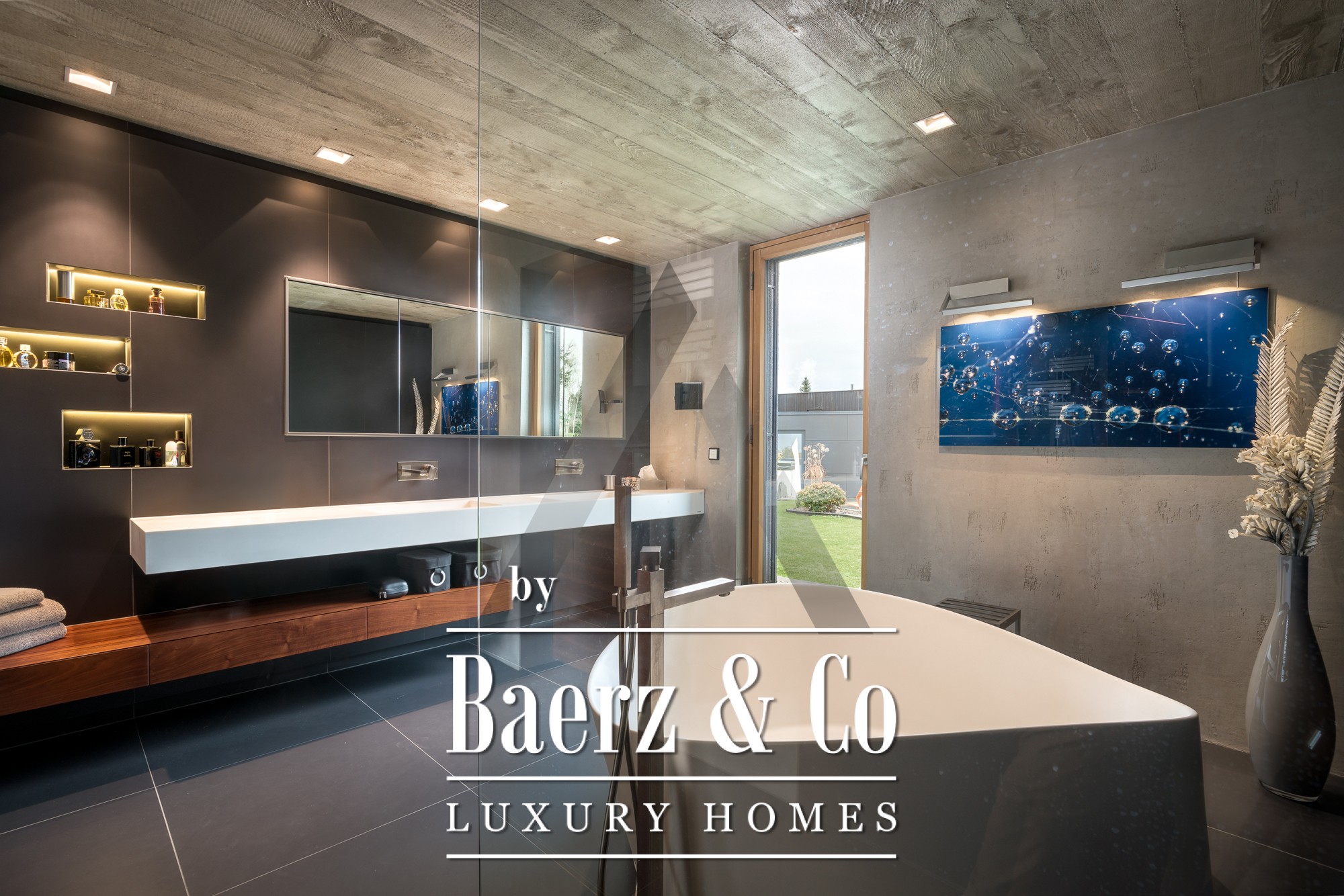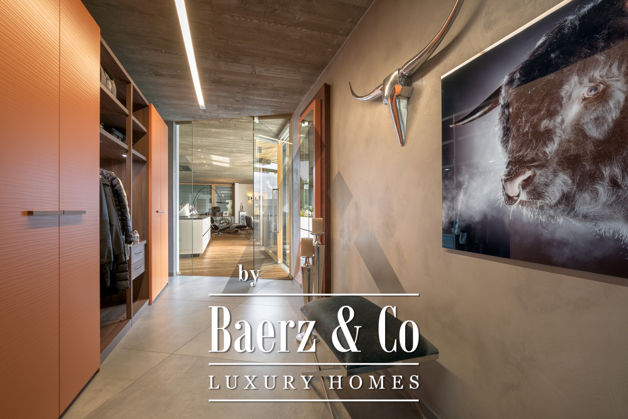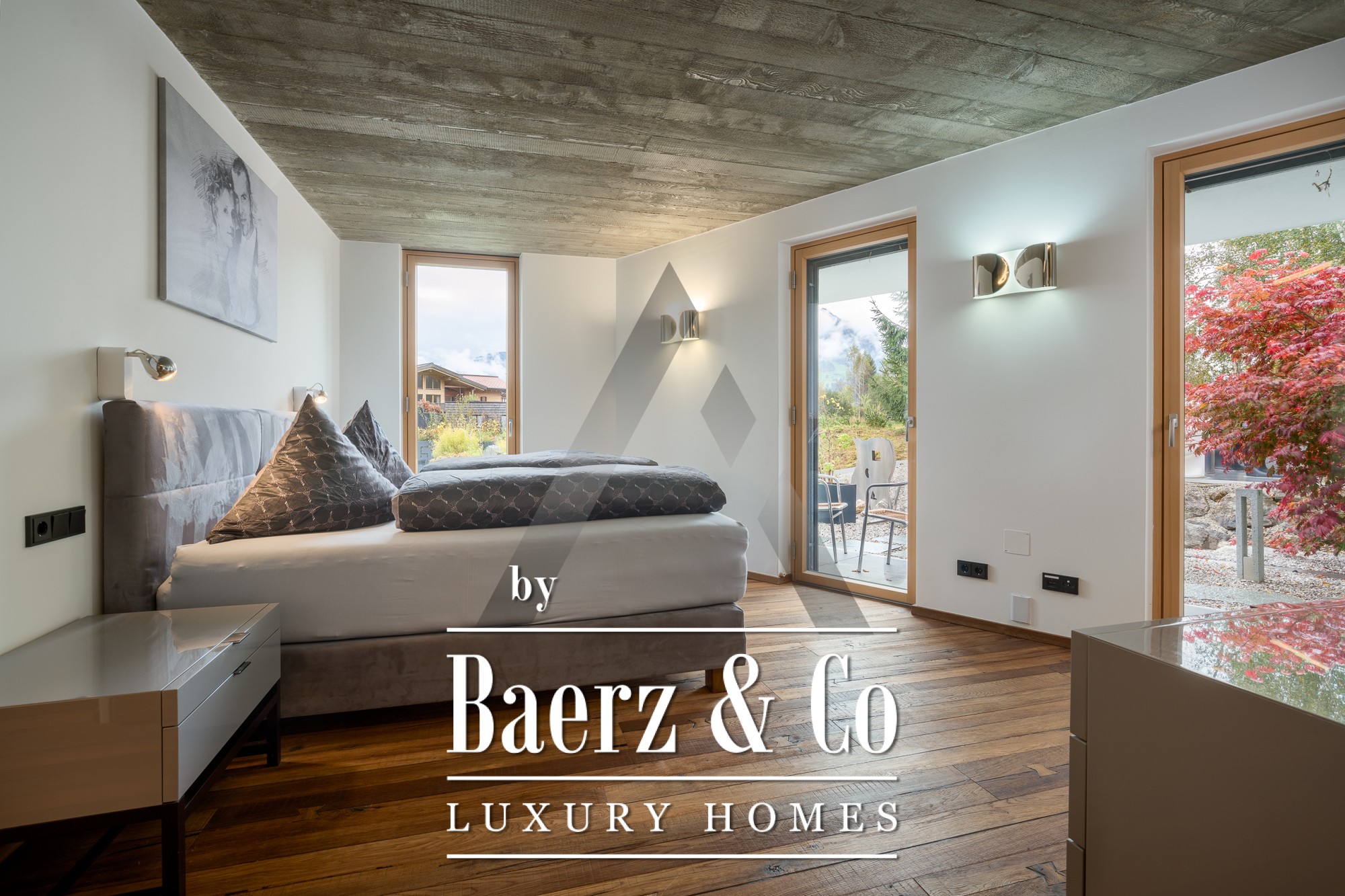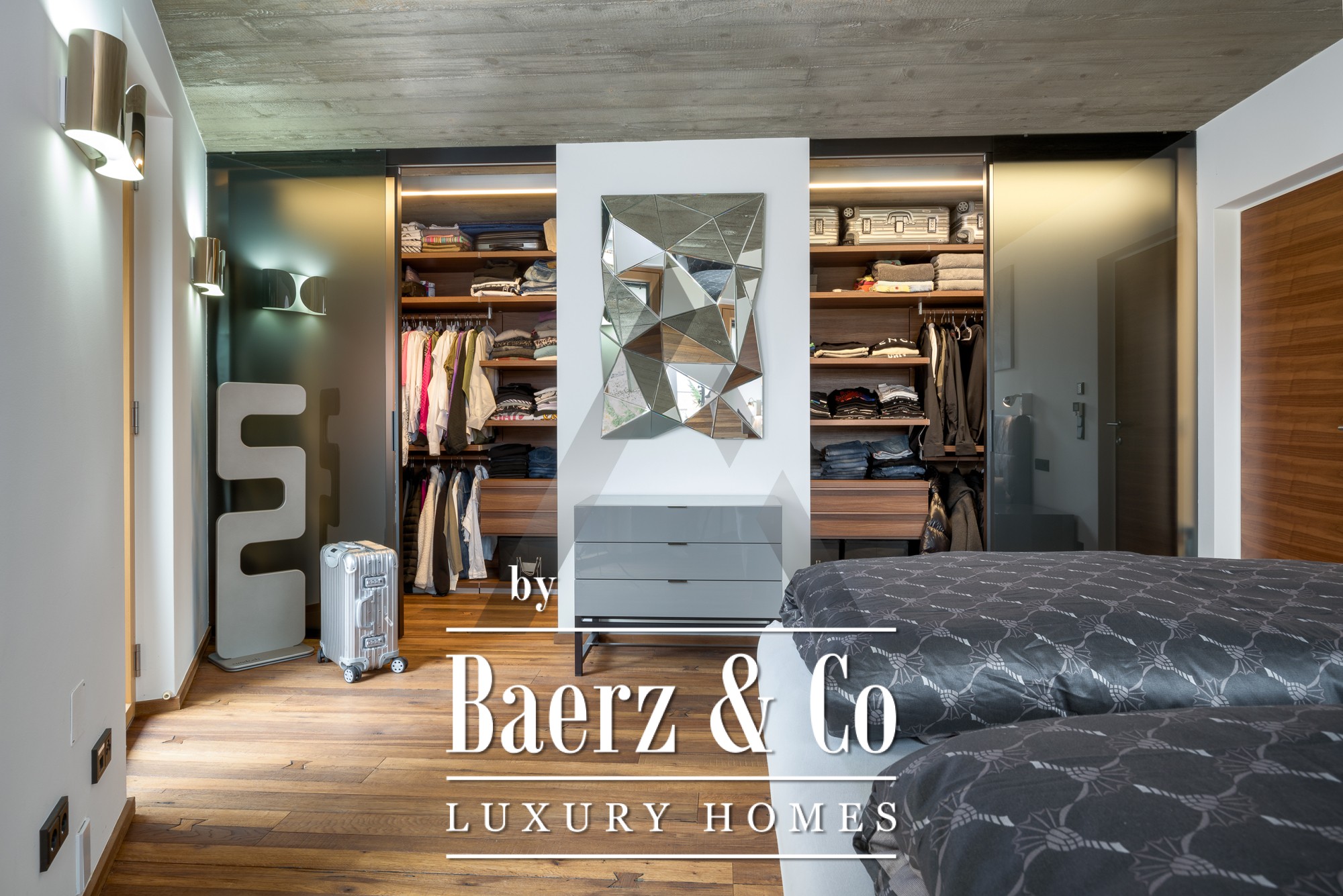 En el interior, los techos de hormigón visto y los suelos de roble recuperado dotan al ambiente de una sofisticación sutil. La planta baja de concepto abierto es el centro del hogar, donde los ventanales panorámicos inundan de luz natural las zonas de estar, comedor y la cocina Miele de diseño. En esta planta se distribuye una suite principal con vestidor, habitación infantil, baños amplios y almacenamiento de fácil acceso. En la planta superior, un apartamento independiente cuenta con dos dormitorios, salón con chimenea y una terraza en la azotea que enmarca el horizonte montañoso. Se completa con una suite de fitness de 18 m², totalmente climatizada, con acceso a su propia terraza.