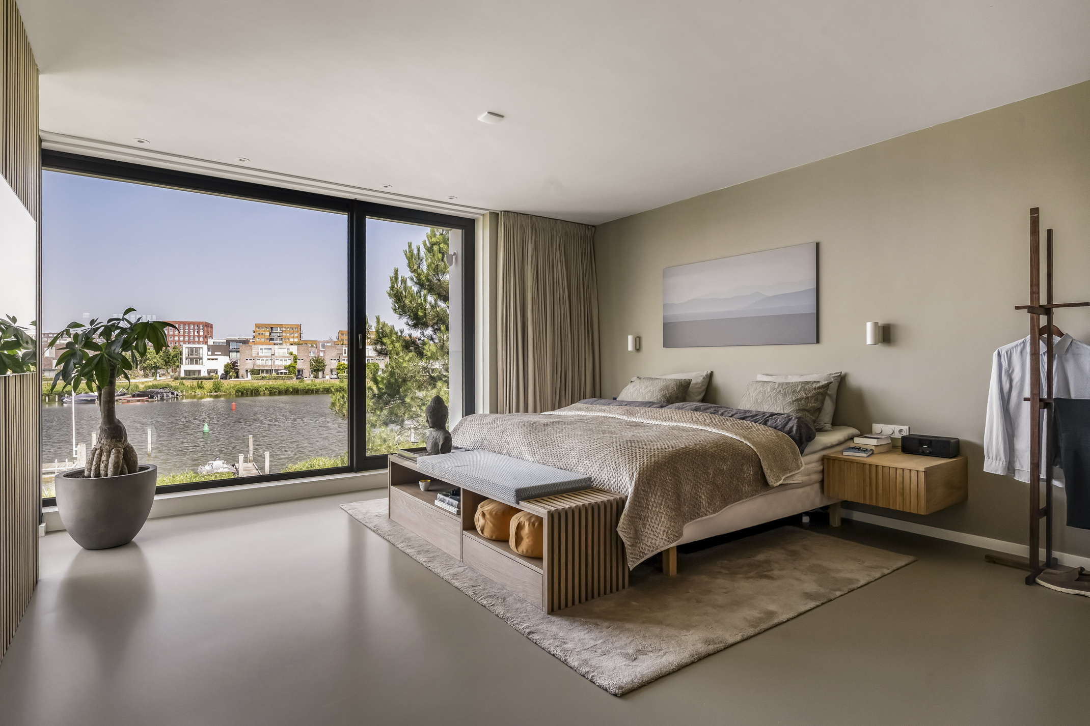 Villa indépendante à Amsterdam Rieteiland Oost : une expérience de vie en bord d’eau immersive, alliant intimité, pureté architecturale et connexion privilégiée à la nature. Construite en 2018, cette villa de 380 m², incluant un garage intégré, occupe une parcelle paisible bordée d’eaux ouvertes. Le ponton privé de la propriété permet de naviguer et de nager directement depuis le jardin paysagé, tandis que les baies panoramiques et les hauteurs sous plafond procurent partout une sensation constante d'espace et de lumière.