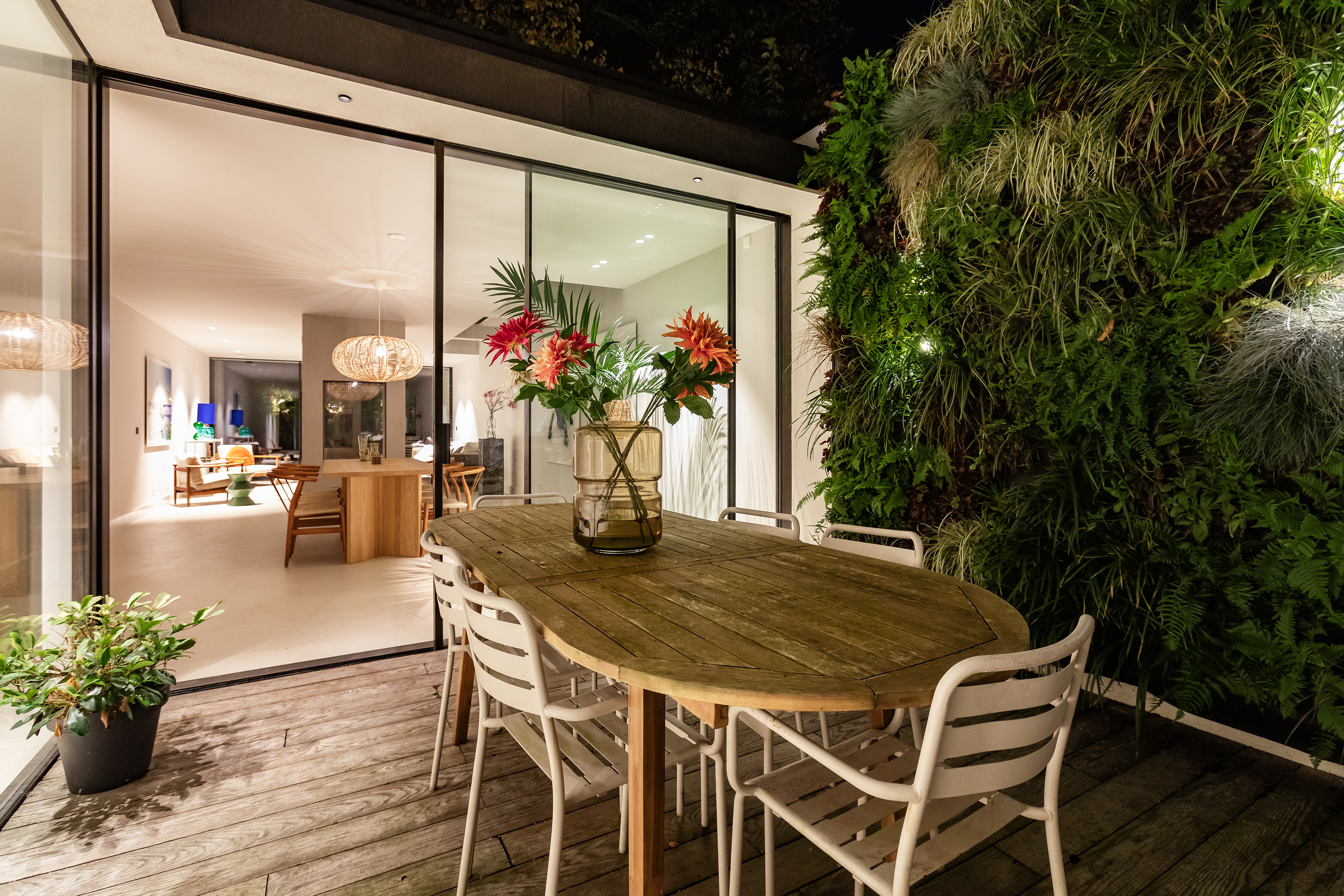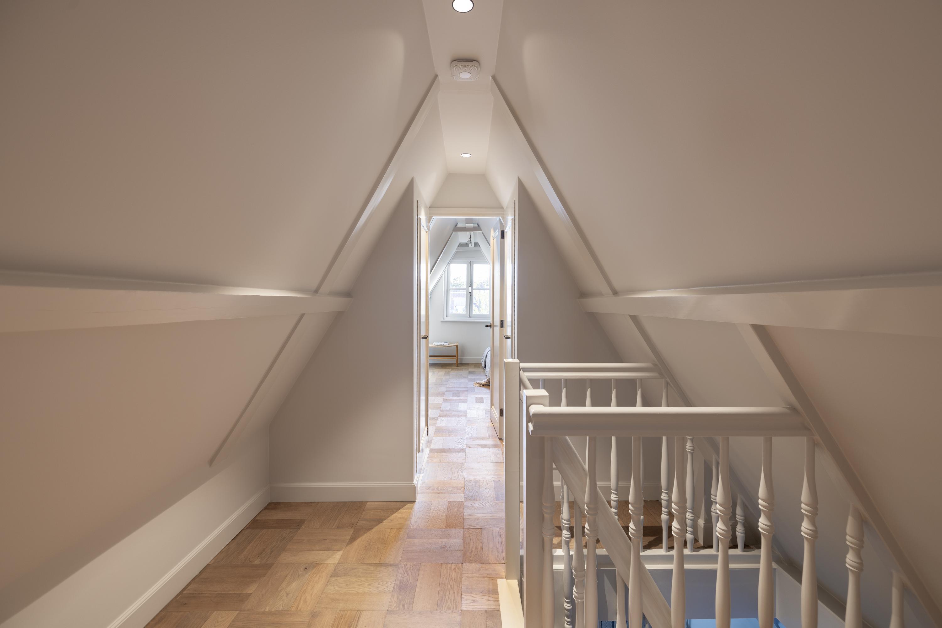 Chaque étage supérieur est mis en valeur par du chêne français : des espaces du premier étage, parfaits pour un bureau ou une salle familiale, à la suite parentale qui occupe tout le deuxième niveau avec vue sur les canaux, poutres apparentes et salle de bains luxueuse en suite. Des chambres supplémentaires, salles de bains haut de gamme en microciment, et une suite au dernier étage offrent un accueil familial généreux, entièrement climatisé et doté d’une domotique avancée.