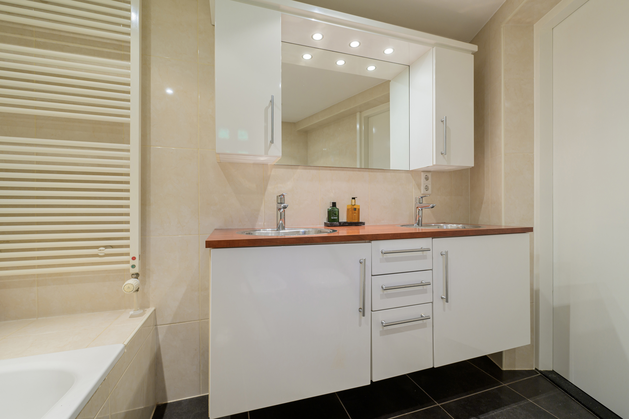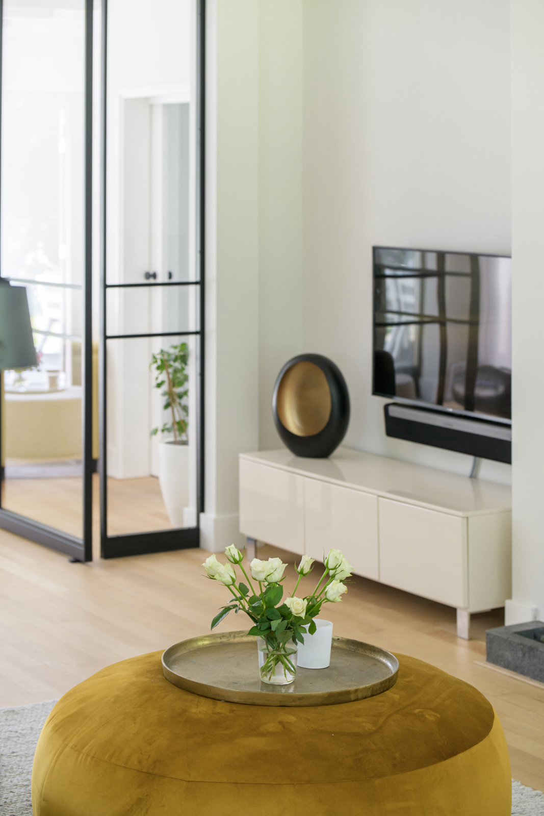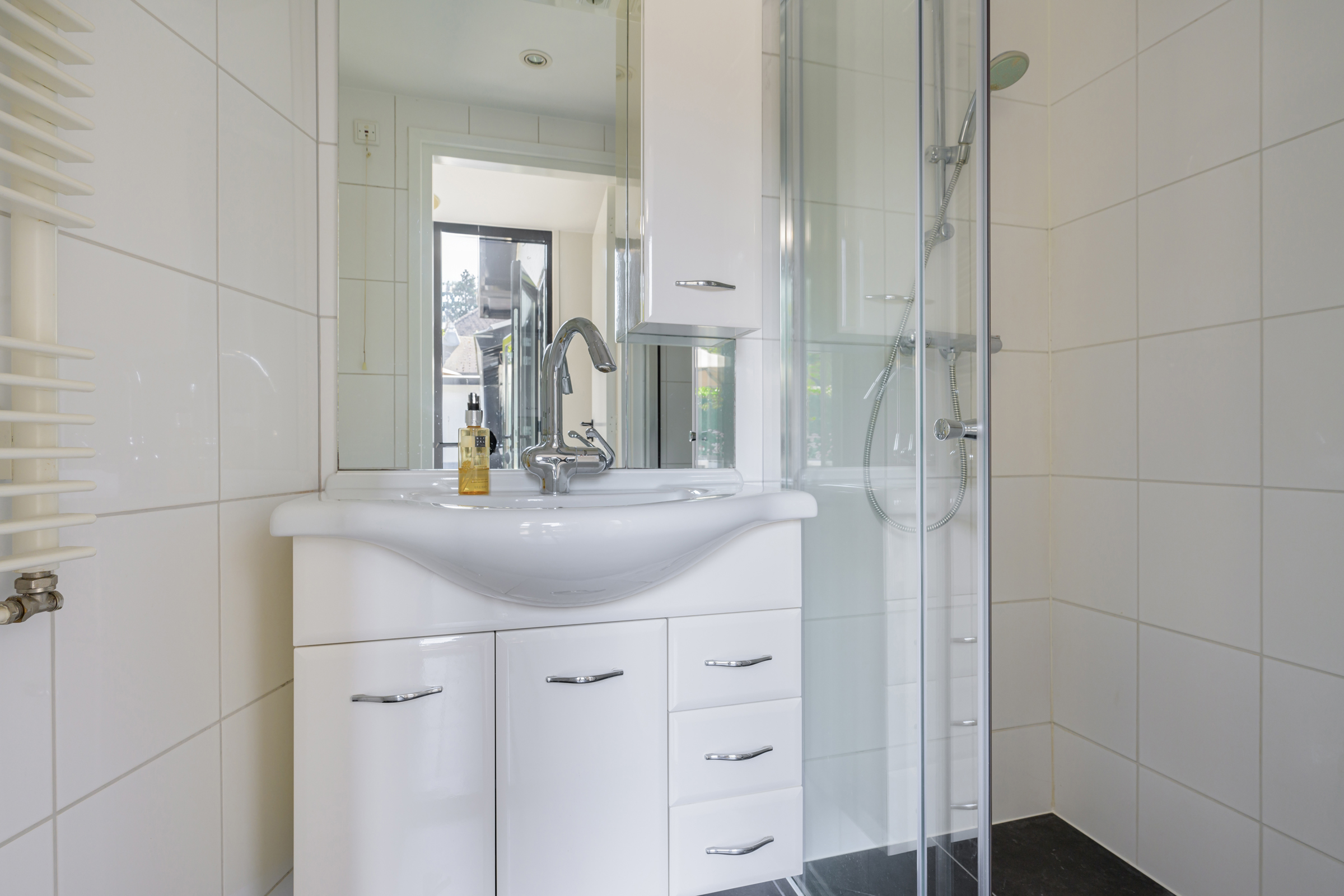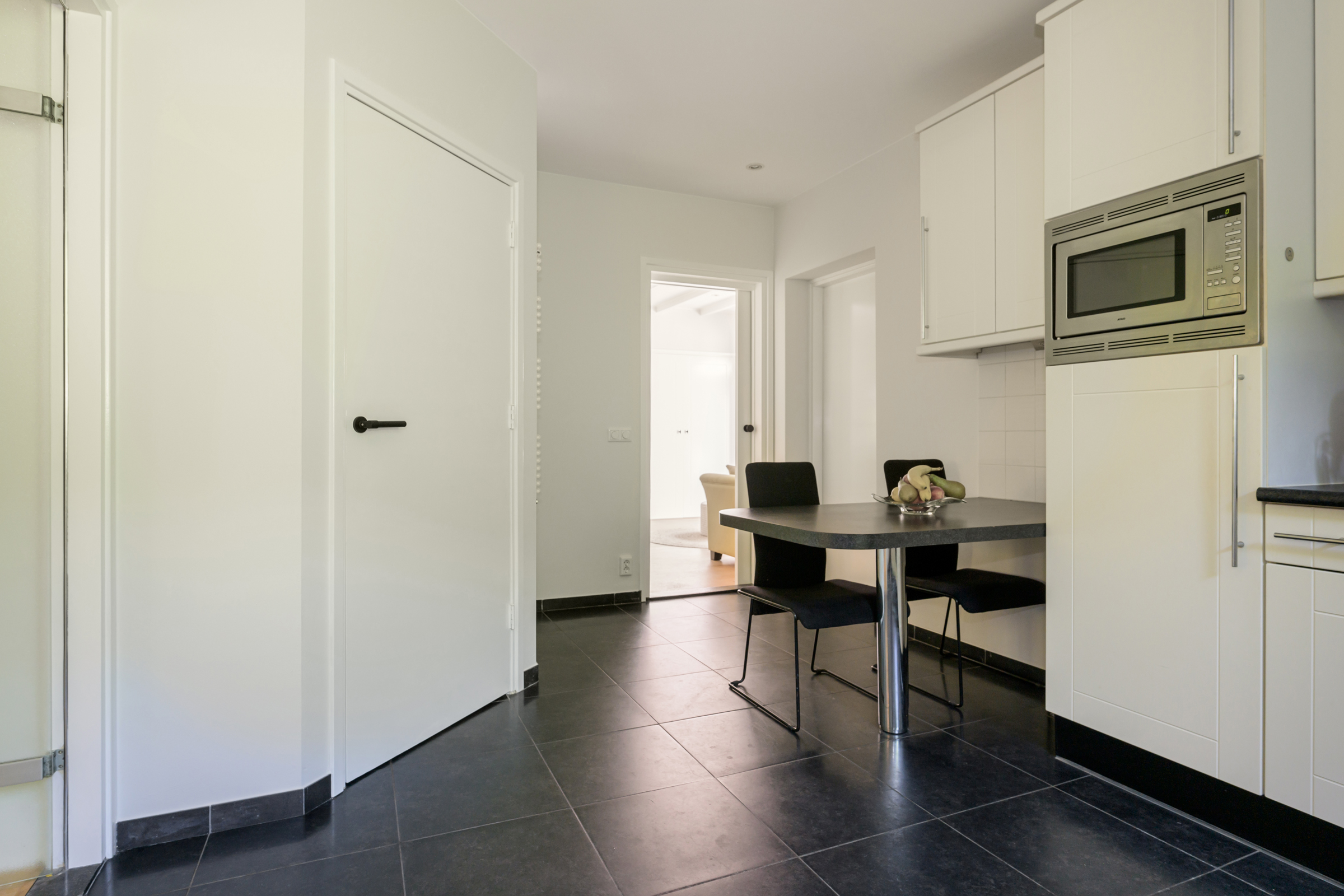 La maison conjugue durabilité et pragmatisme grâce à l’isolation des sols et plafonds, au vitrage HR++, à 18 panneaux solaires et à un chauffage moderne, offrant ainsi un environnement efficace et serein. De grandes dalles en ardoise, du parquet et des sols en bois massif soulignent le caractère feutré de l’ensemble, tandis que les plafonds à poutres apparentes et l’éclairage intégré instaurent une atmosphère rythmée. Les espaces de vie s’ouvrent depuis un salon avec cheminée, traversant des portes vitrées vers le jardin, et communiquent harmonieusement avec une salle à manger séparée et une cuisine entièrement équipée avec buanderie.