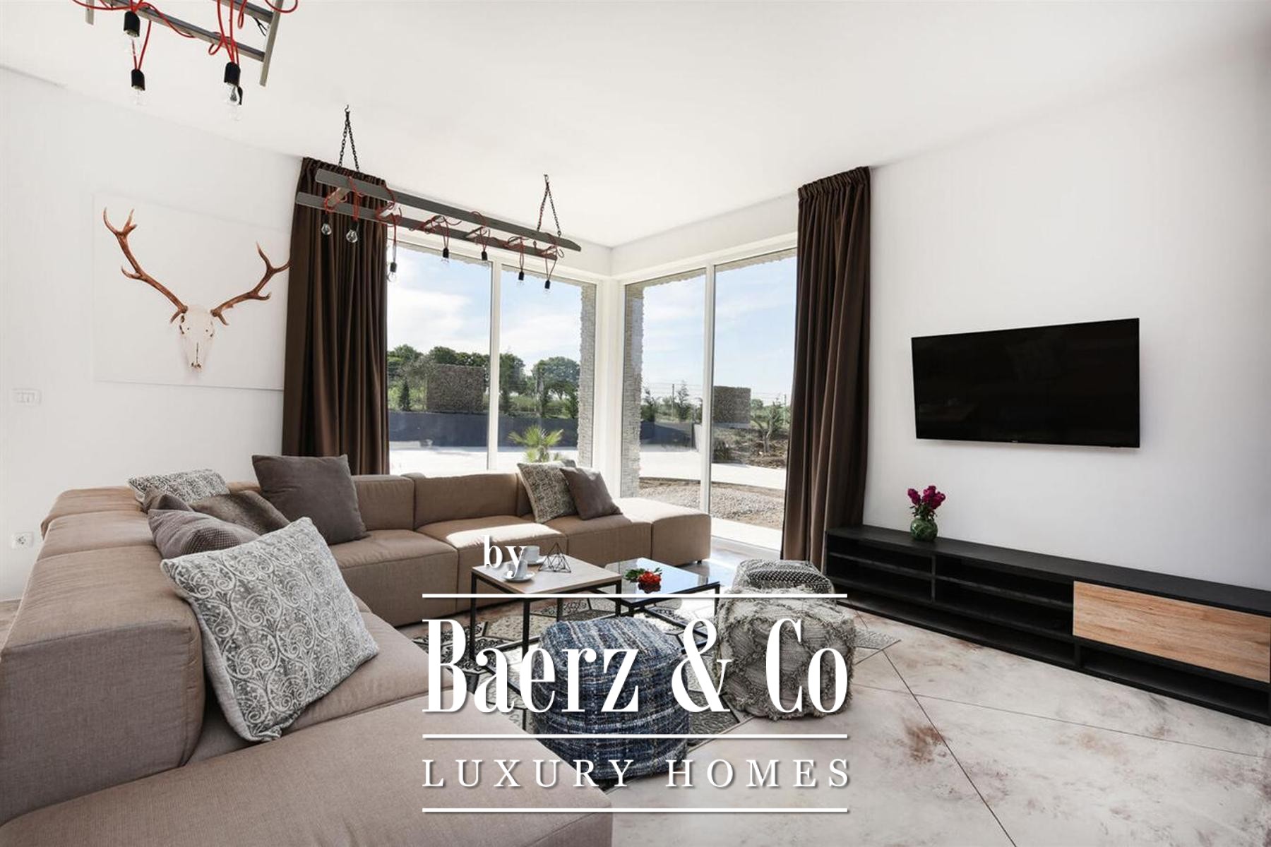 À l’extérieur, une piscine chauffée de 14 par 5 mètres s’impose comme pièce maîtresse, entourée d’espaces soigneusement aménagés pour la détente et le loisir. Le jardin illuminé offre transats, salon extérieur, balançoires et barbecue, pour une transition naturelle entre les instants du jour et de la soirée.