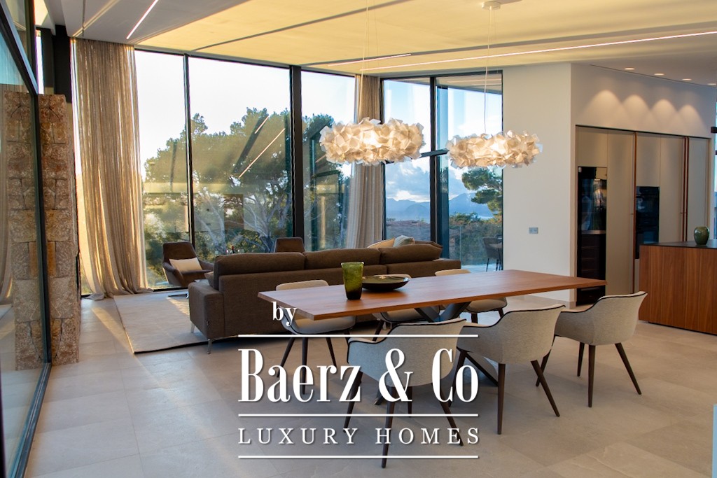 Deze moderne villa in Alcúdia biedt vier ruime slaapkamers, elk met en-suite badkamer, en een master suite met inloopkast en een privé overdekt terras. Het royale ontwerp is gericht op comfort en privacy en vloeit moeiteloos over in een Boffi keuken, een ruime woon- en eetkamer en aansluitende terrassen. Twee zwembaden en een onbelemmerd uitzicht over de baai van Pollensa en het Tramuntana-gebergte zorgen voor een serene, visuele ervaring gedurende het hele jaar.