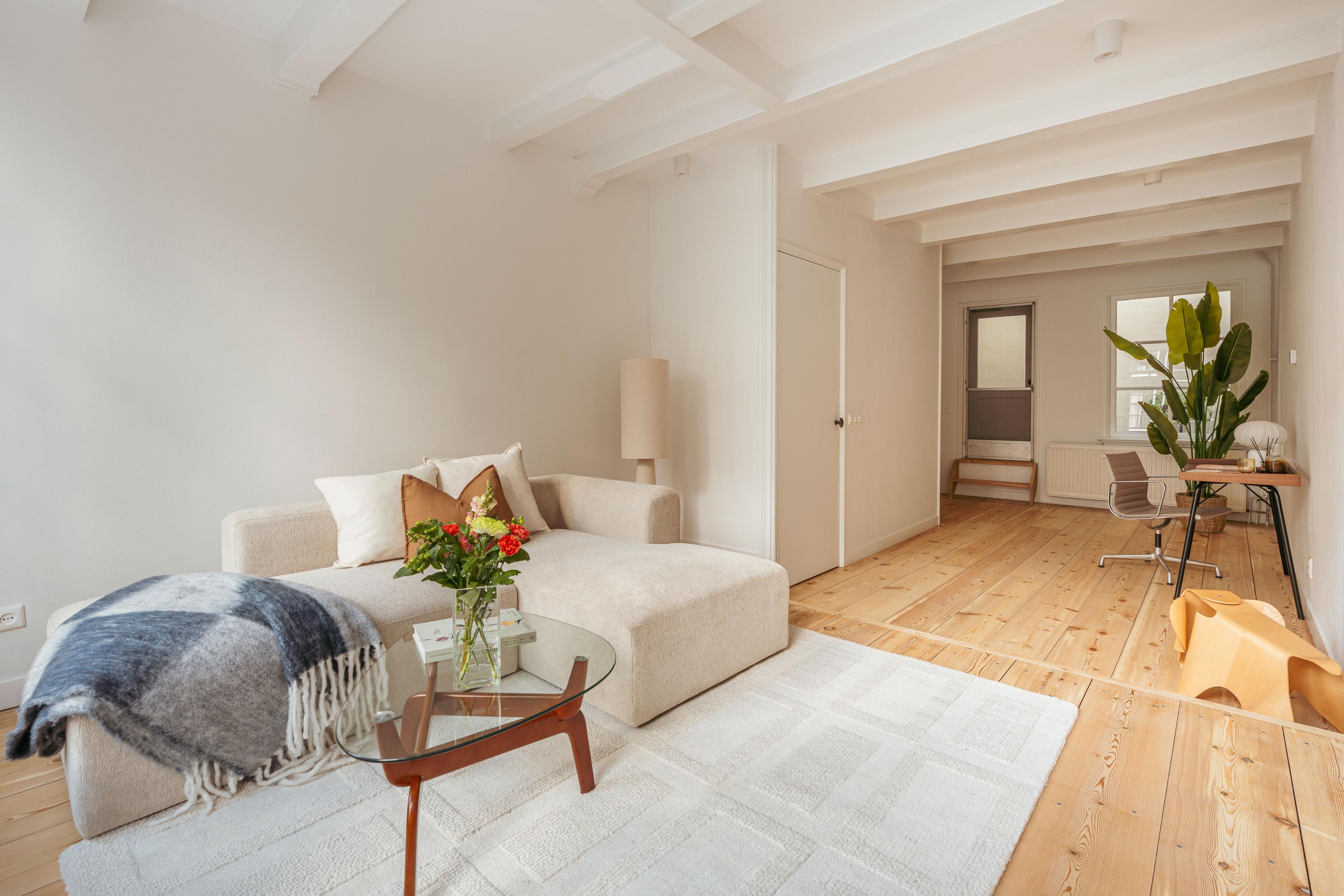 Een open trap leidt naar de eerste verdieping, waar een bijzonder fraaie woonkamer te vinden is. Deze is ingedeeld met een speels split-level, waardoor er ruimte ontstaat voor een gezellige leeshoek en een zitkamer aan de voorzijde. Vanuit hier is het uitzicht over de gracht werkelijk indrukwekkend.