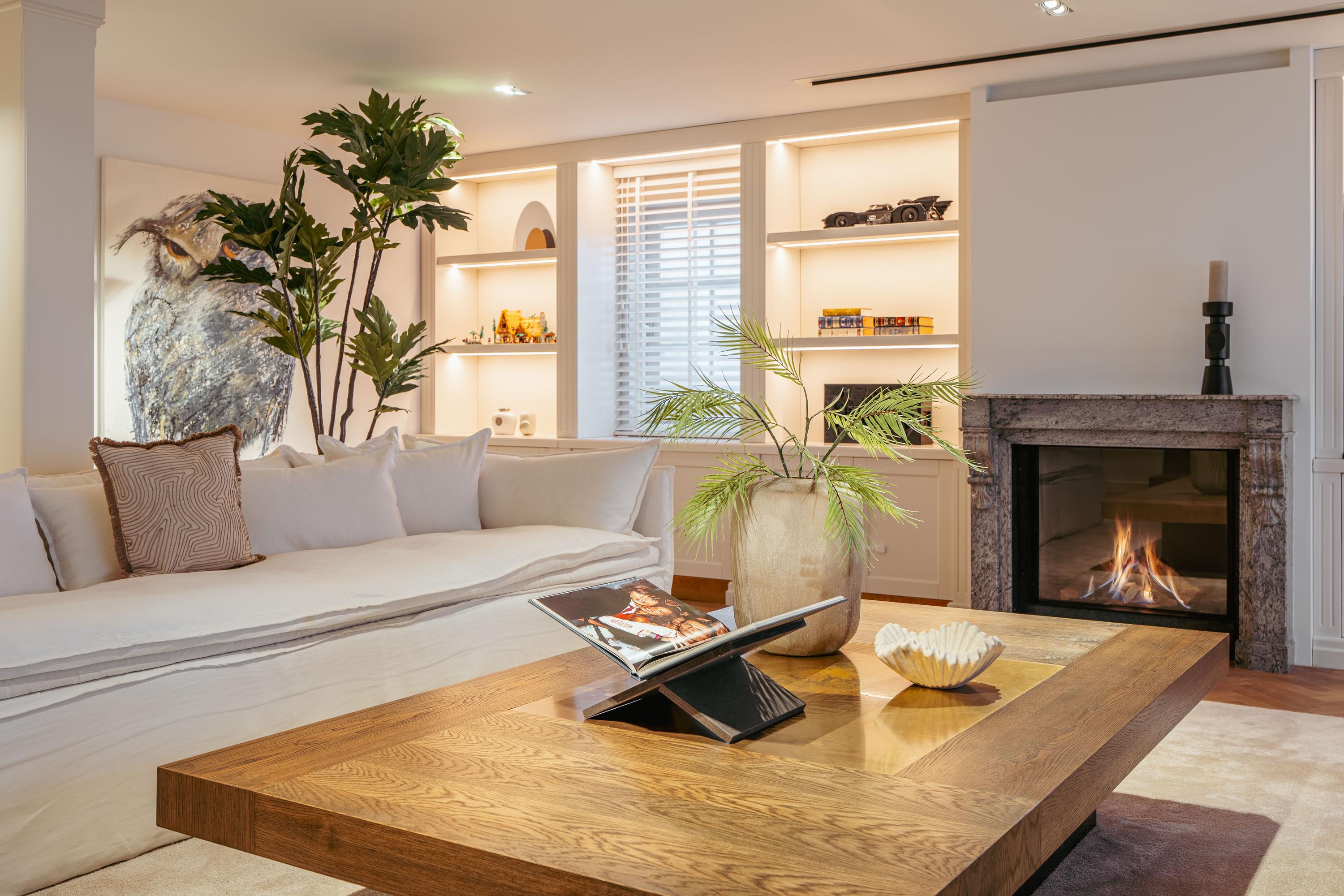 Via een statige entree komt u binnen in de ruime en zeer sfeervolle open woonkeuken. De open woonkeuken is voorzien van diverse inbouwapparatuur, zoals vaatwasser, gasfornuis met oven en een Quooker. De verschillende hoogtes in elke ruimte geven deze woning een speels effect. Tussen de open woonkeuken en de zitkamer bevindt zich de werk/- studeerkamer en het ruime toilet. De woonkamer is voorzien van een mooie visgraat parketvloer, een op maat gemaakte inbouwkast en een beamer met scherm. Om de gezellige woonkamer compleet te maken, is er een grote gashaard geplaatst.