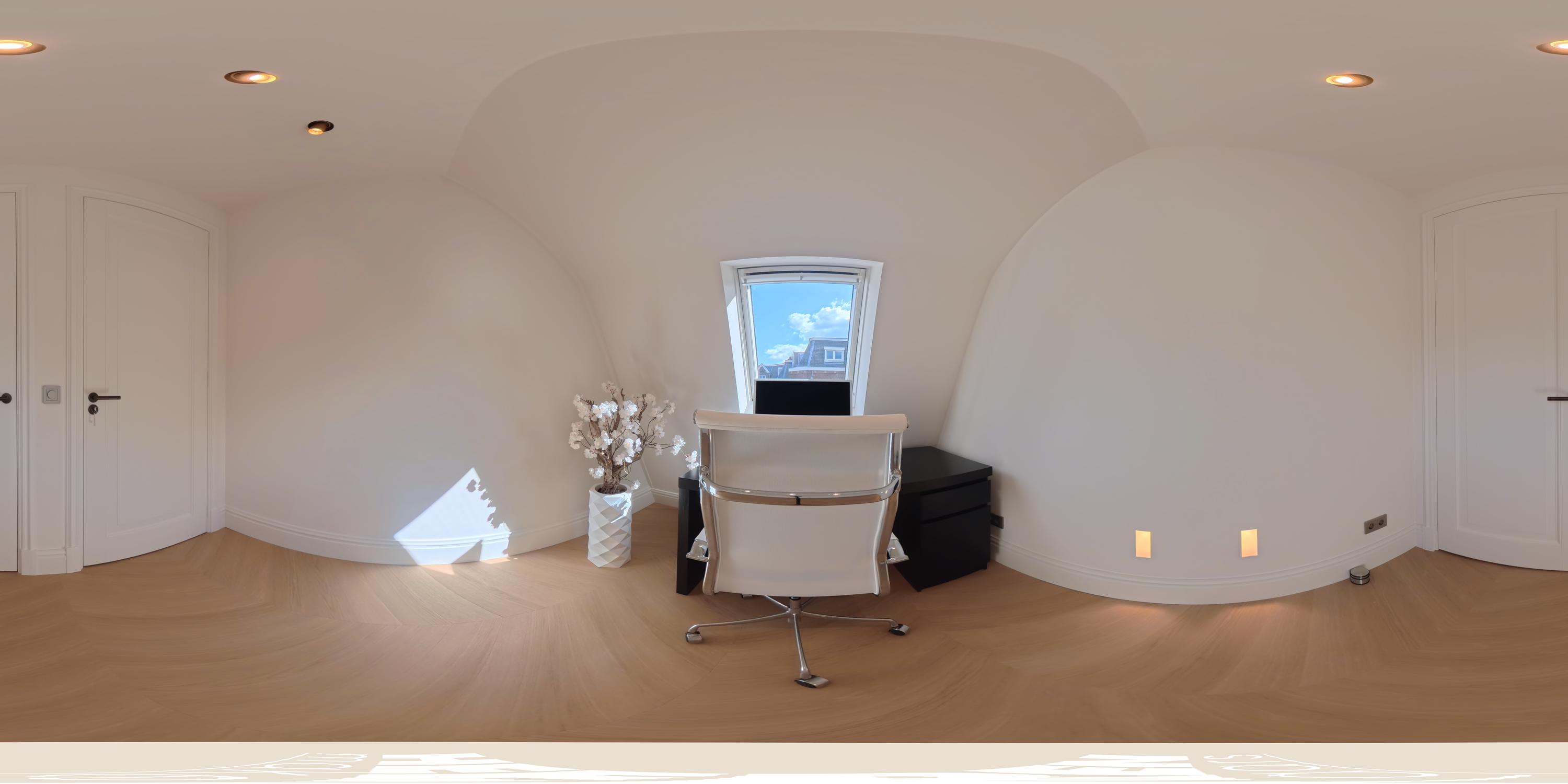 Vanuit de hal heeft u toegang tot de badkamer en twee slaapkamers. De eerste, aan de voorzijde, is multifunctioneel inzetbaar en leent zich ook uitstekend als kinder-, werk- of studeerkamer. Hier bevindt zich tevens de vernieuwde meterkast met 3-fase aansluiting. Aan de achterzijde ligt de master bedroom met fraaie inbouwkasten en directe toegang tot de royale luxe badkamer. Deze is uitgerust met Villeroy en Boch ligbad, inloopdouche en stijlvol natuurstenen wastafel. De badkamer kan met een geïntegreerde schuifdeur worden afgesloten van de slaapkamer indien gewenst.
