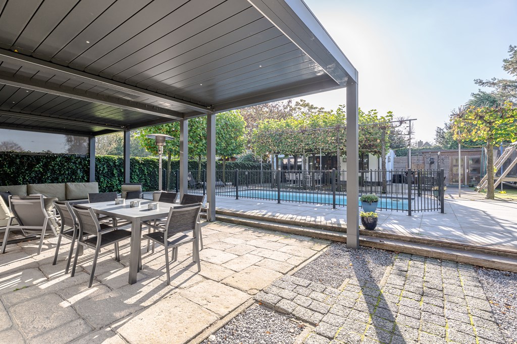 Door de openslaande deuren staat het poolhouse direct in verbinding met een terras en de rest van de tuin. Hier kunt u ultiem ontspannen en genieten.