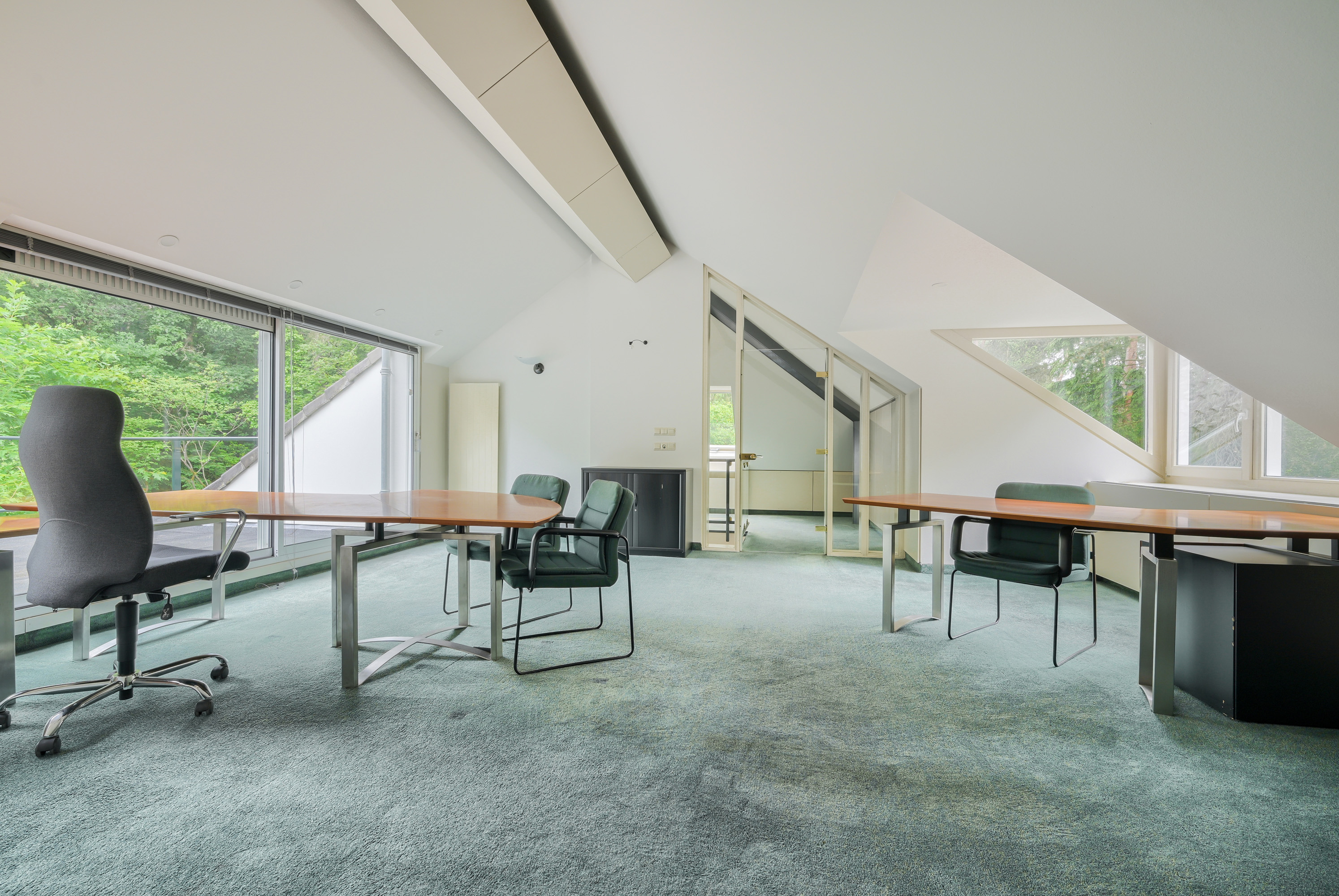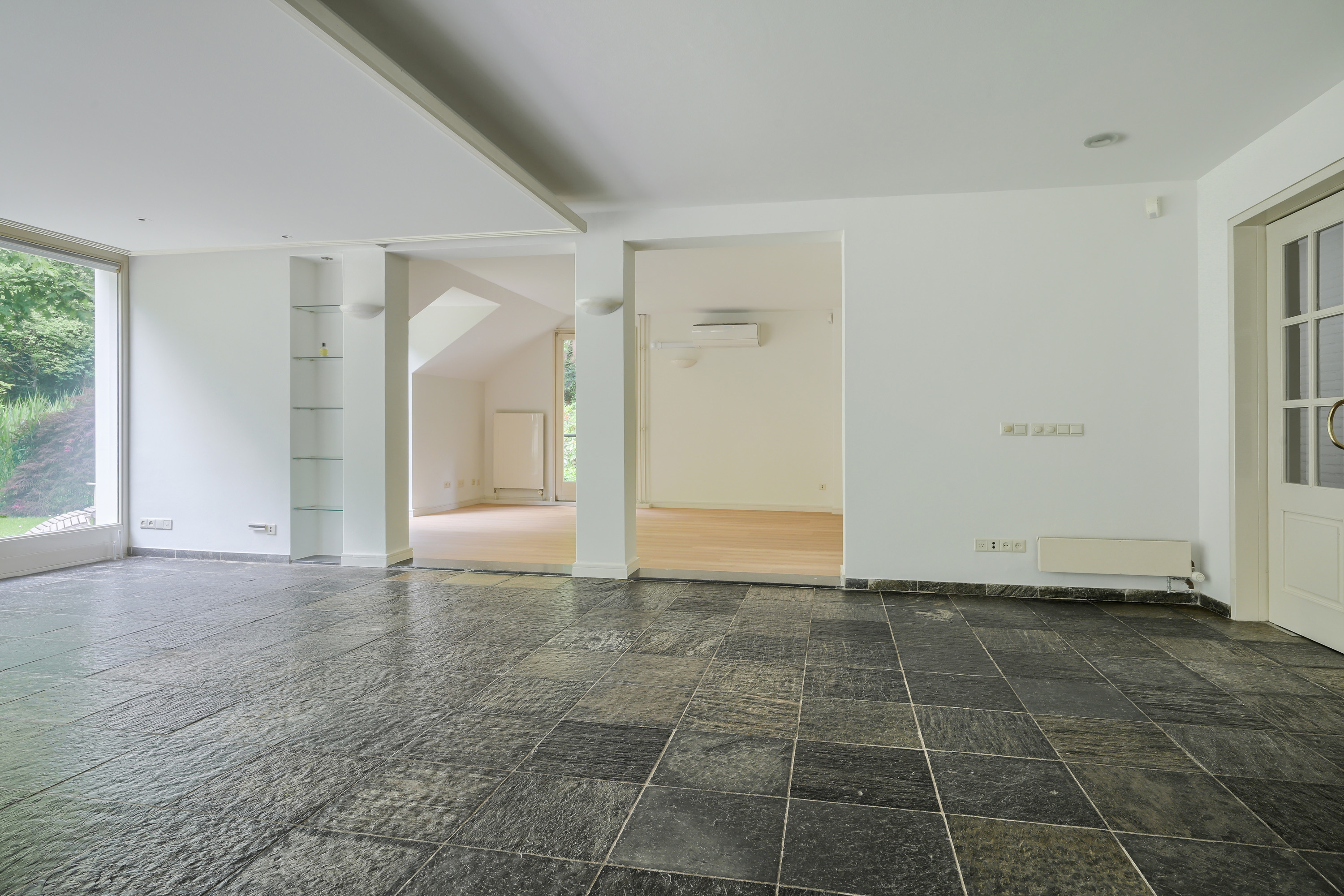 Prachtige woon- annex werkkamer met uitzicht op de tuin en terrassen. Deze lichte ruimte, voorzien van royale raampartijen, is gelegen aan de voorzijde van de woning. In een vaste kast bevindt zich de verdeelunit ten behoeve van de vloerverwarming.