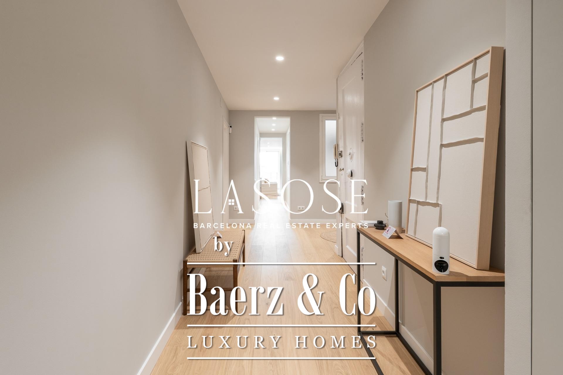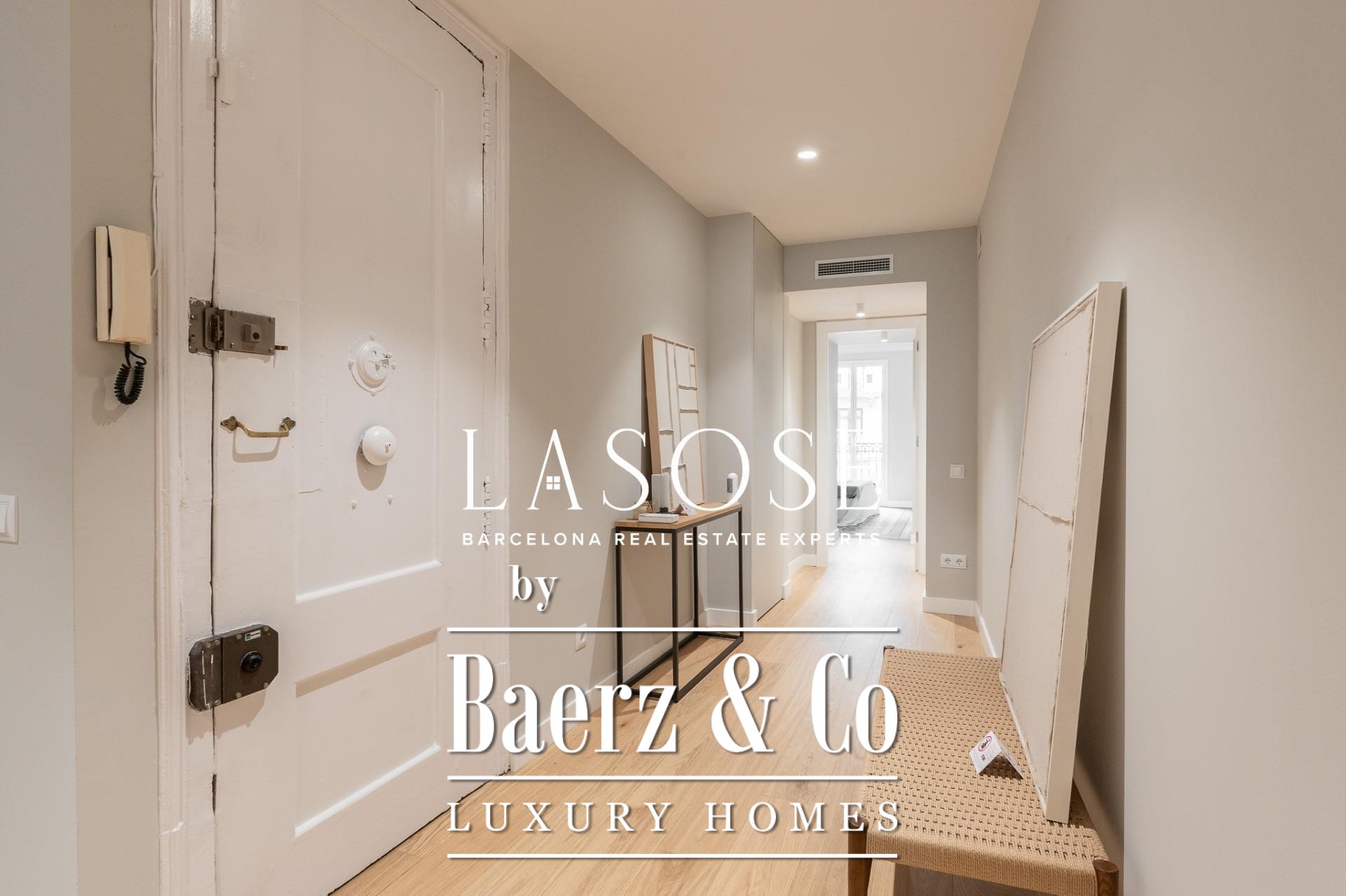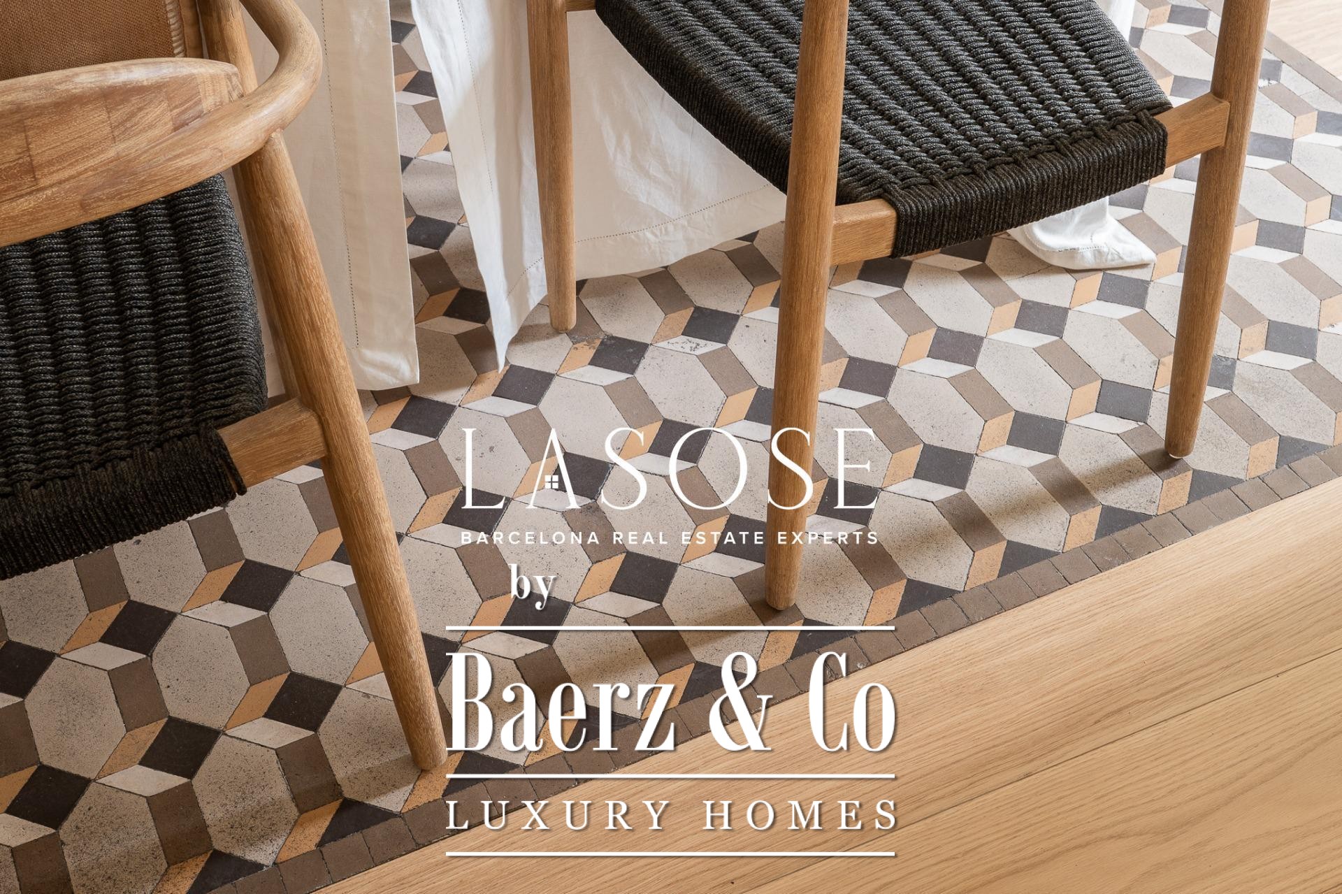 Het appartement Barcelona bevindt zich op het kruispunt van Plaça Catalunya en Dreta de l'Eixample, op een markante locatie aan de Bergara-straat. Deze residentie van 162 m² combineert de architectuur uit het begin van de twintigste eeuw met modern comfort. Natuurlijk licht stroomt door de hoge, voorzien van cassetteplafonds, terwijl de gerestaureerde hydraulische Nolla-mozaïekvloeren, originele houtdetails en verfijnde sierlijsten het erfgoed en karakter onderstrepen.