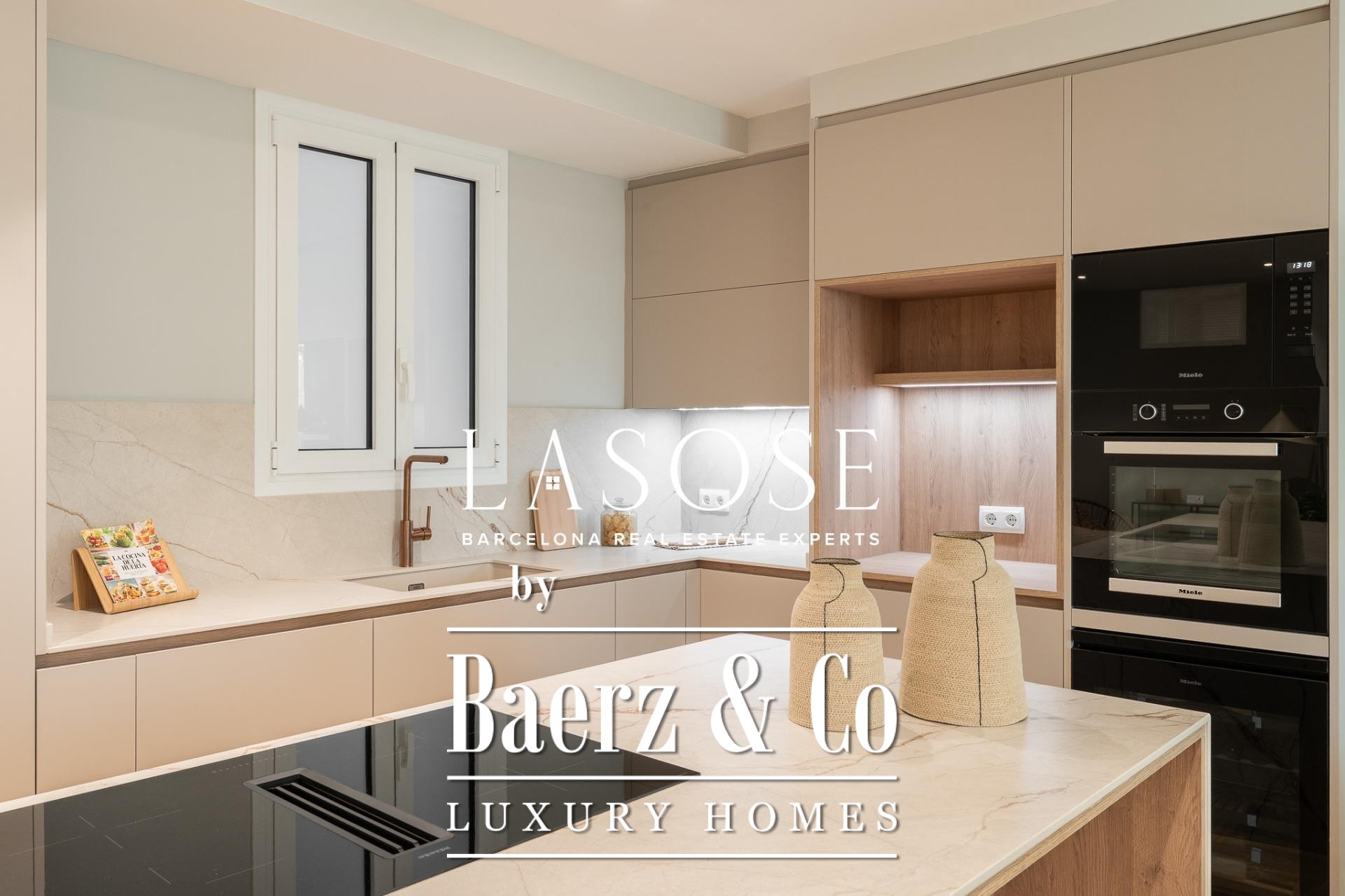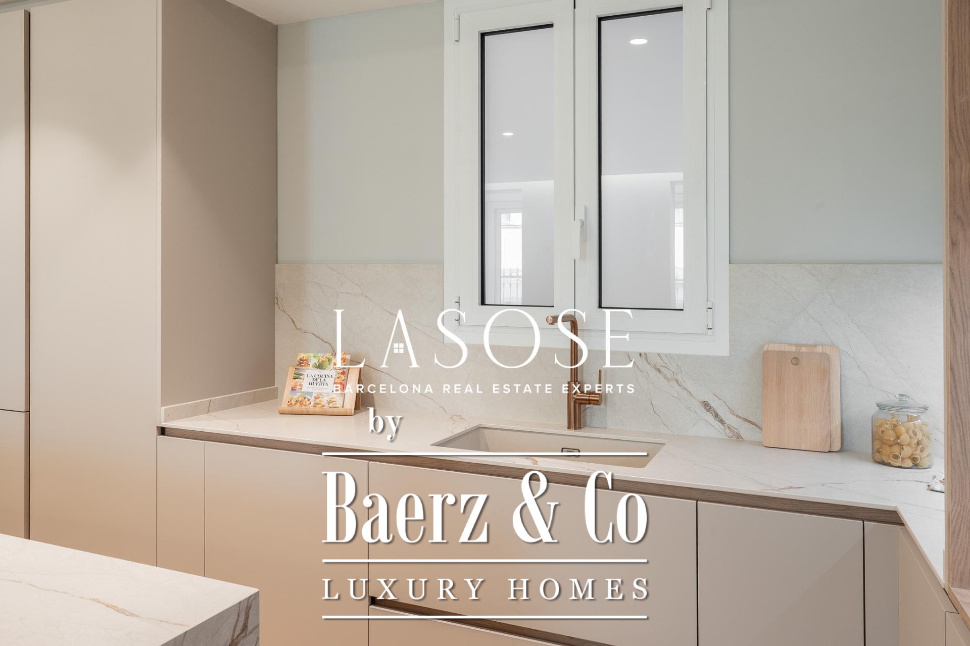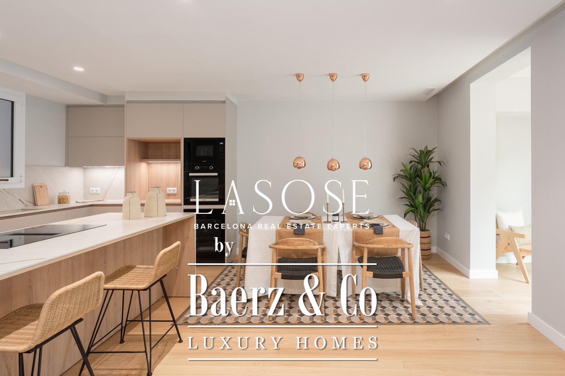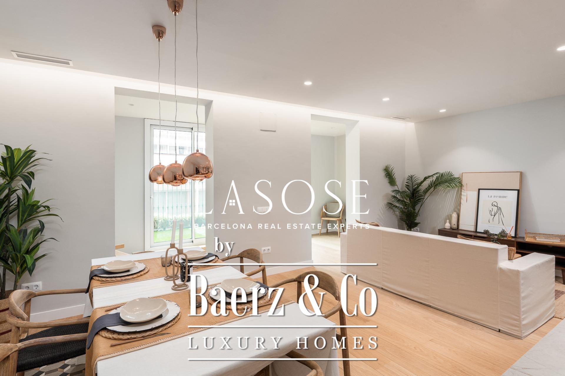 Het appartement Barcelona bevindt zich op het kruispunt van Plaça Catalunya en Dreta de l'Eixample, op een markante locatie aan de Bergara-straat. Deze residentie van 162 m² combineert de architectuur uit het begin van de twintigste eeuw met modern comfort. Natuurlijk licht stroomt door de hoge, voorzien van cassetteplafonds, terwijl de gerestaureerde hydraulische Nolla-mozaïekvloeren, originele houtdetails en verfijnde sierlijsten het erfgoed en karakter onderstrepen.