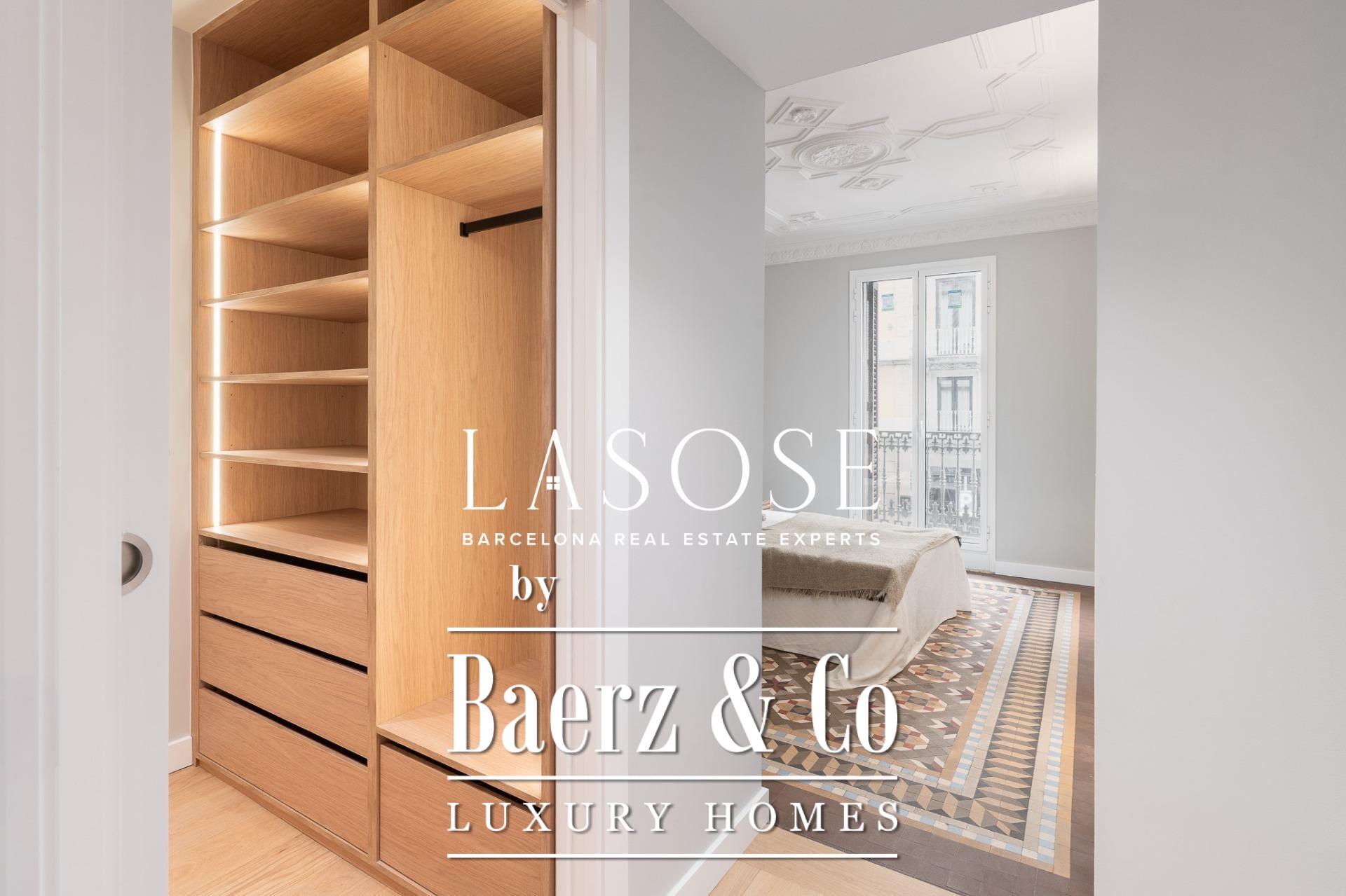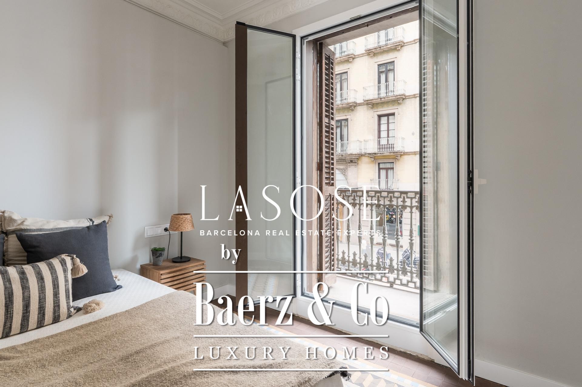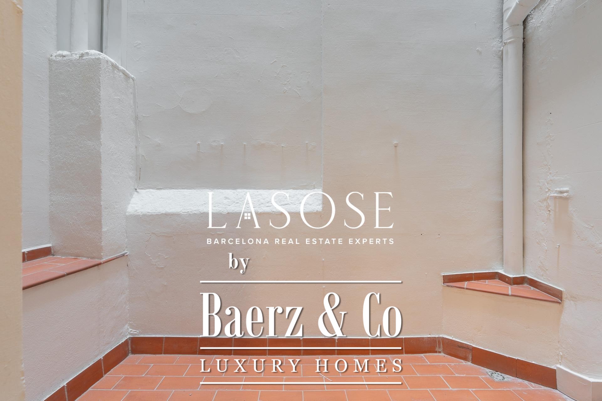 Het gerestaureerde gebouw is uitgerust met een lift, alarmsysteem en moderne voorzieningen zoals een terras en balkon. Wonen op deze plek betekent dat Passeig de Gràcia en Las Ramblas praktisch aan uw voeten liggen, samen met de beste boetieks, gastronomie en transportverbindingen van de stad. Dit appartement biedt een zeldzame kans voor wie op zoek is naar zowel erfgoed als exclusief stadsleven in Barcelona.