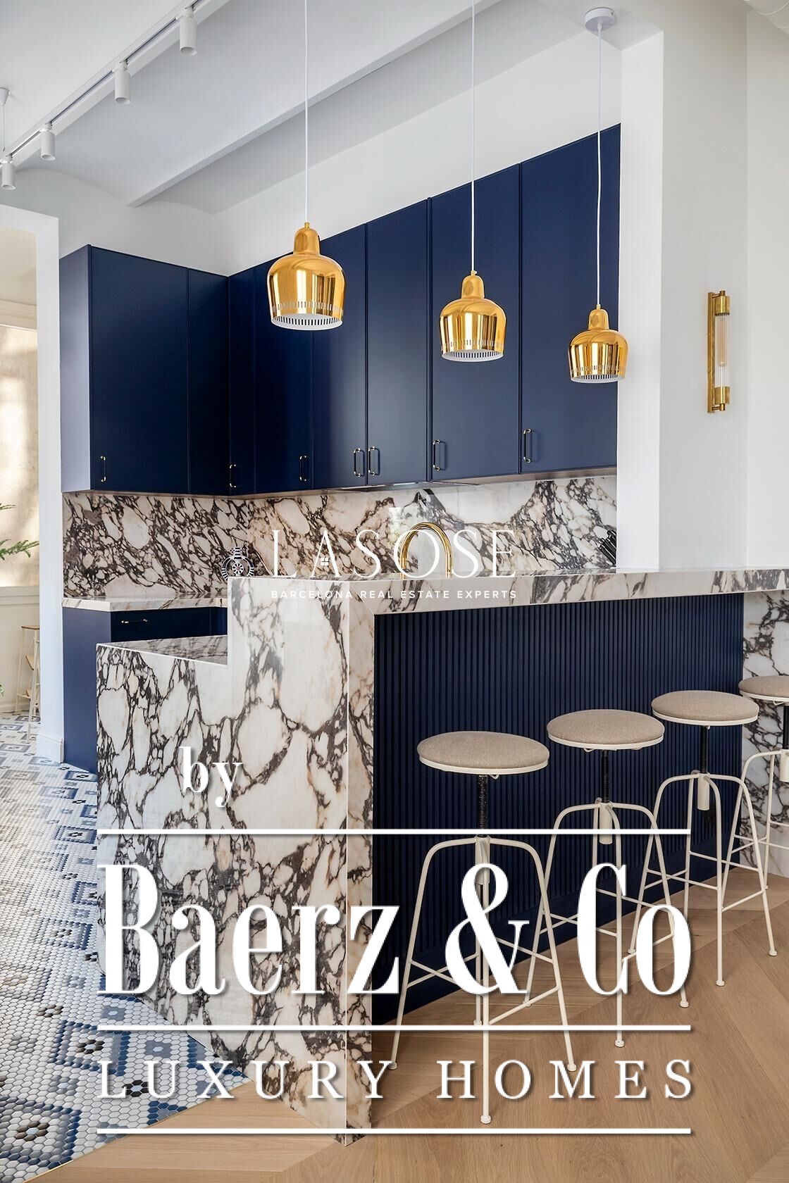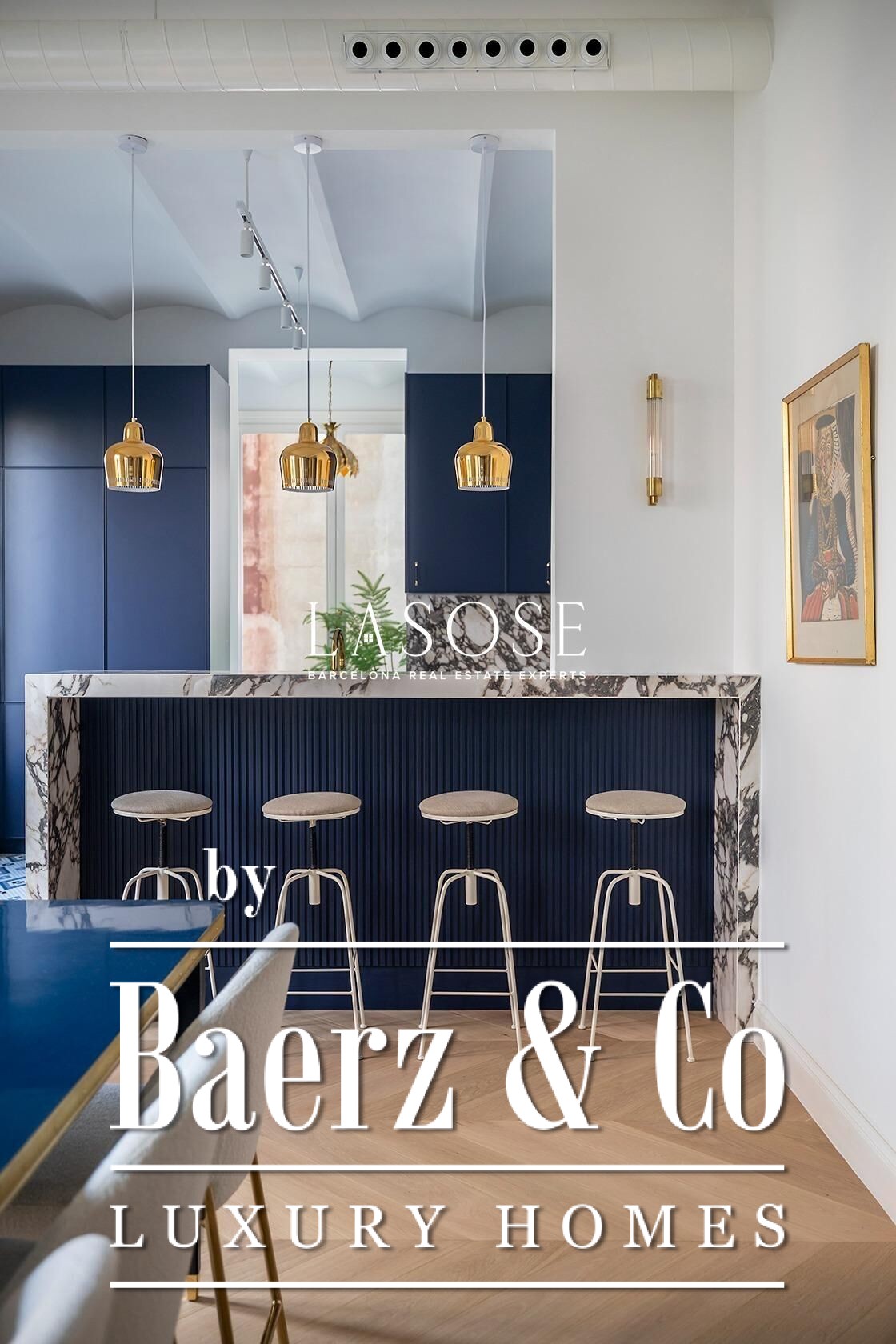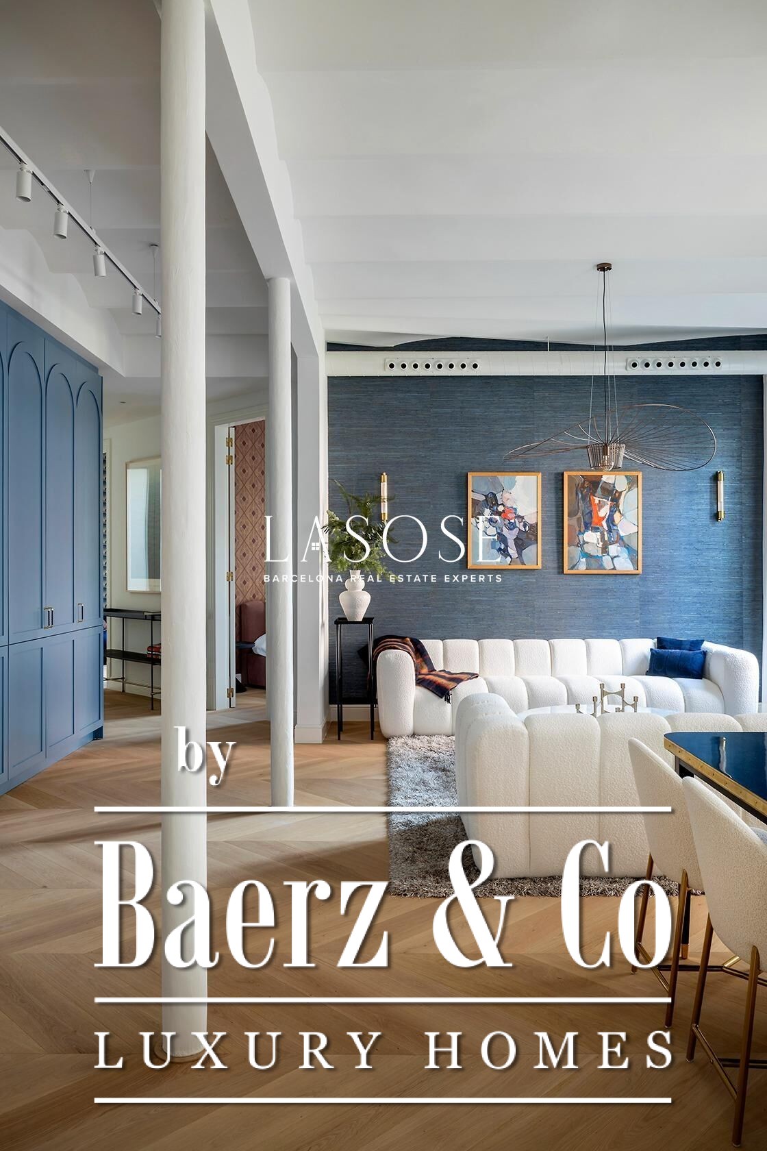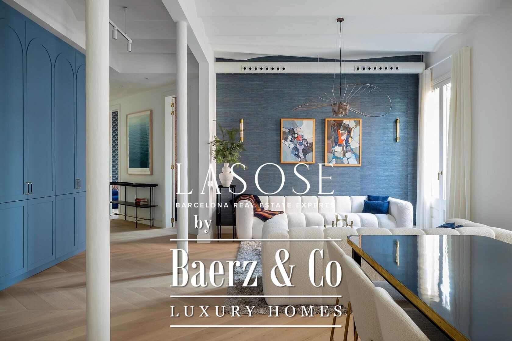 Appartement Barcelona nodigt uit tot verfijnd stedelijk wonen. Deze woning van 199 m² op de derde verdieping is recent gerenoveerd en zorgvuldig ontworpen om optimaal gebruik te maken van het natuurlijke licht; vier balkondeuren aan de Calle Girona en royale ramen versterken de lichte sfeer. De indeling verloopt vloeiend van de open keuken en eetruimte naar een woonkamer, voorzien van een maatwerkbar en bijkeuken met twee wijnklimaatkasten en een tweede vaatwasser.