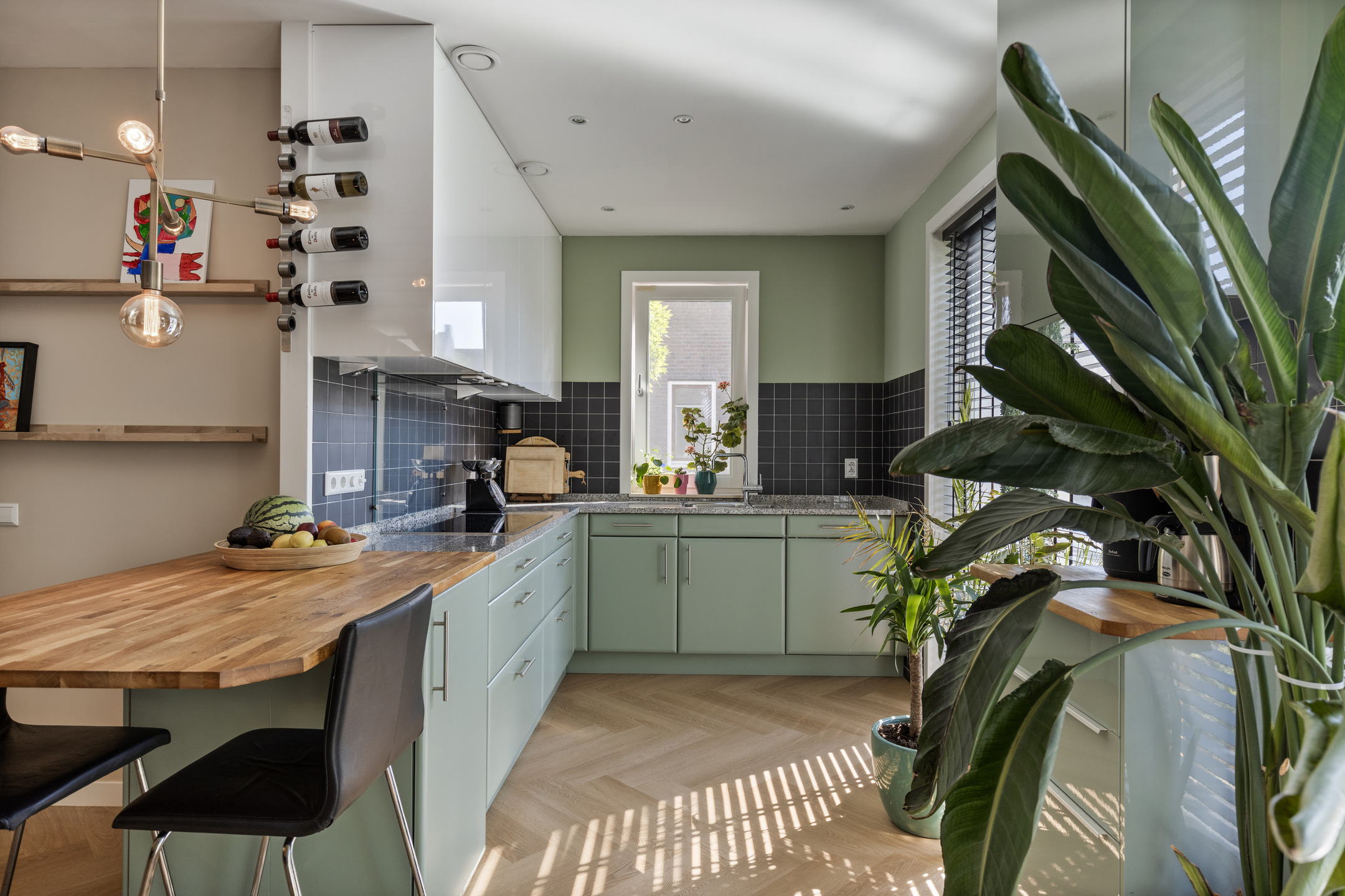 De luxe keuken is aan de voorzijde van de woning gelegen en is voorzien van diverse inbouwapparatuur, waaronder een vaatwasser, afzuigkap, inductiekookplaat, combimagnetron en oven.