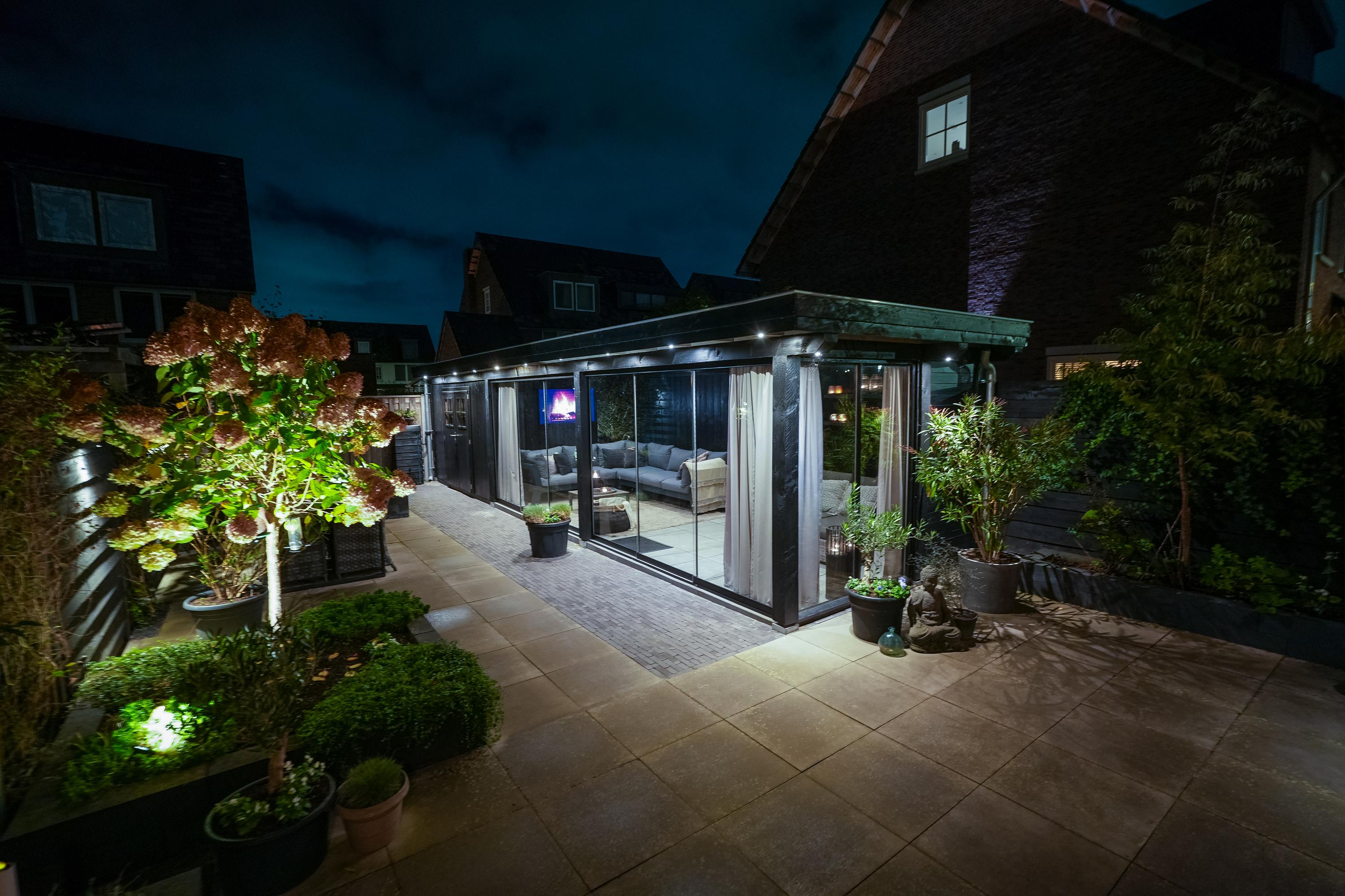 In deze zonnige tuin bevindt zich een sfeervolle overkapping met glazen pui, voorzien van stroom en internet. De ruimte is volledig geïsoleerd en uitgerust met plintverwarming, waardoor deze het hele jaar door comfortabel te gebruiken is. Bovendien zijn er vier zonnepanelen aanwezig, wat bijdraagt aan een energiezuinige en duurzame inrichting.