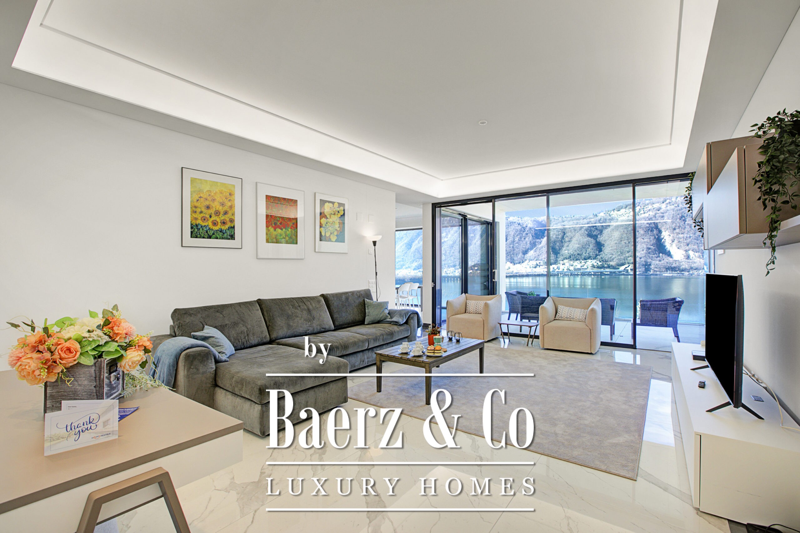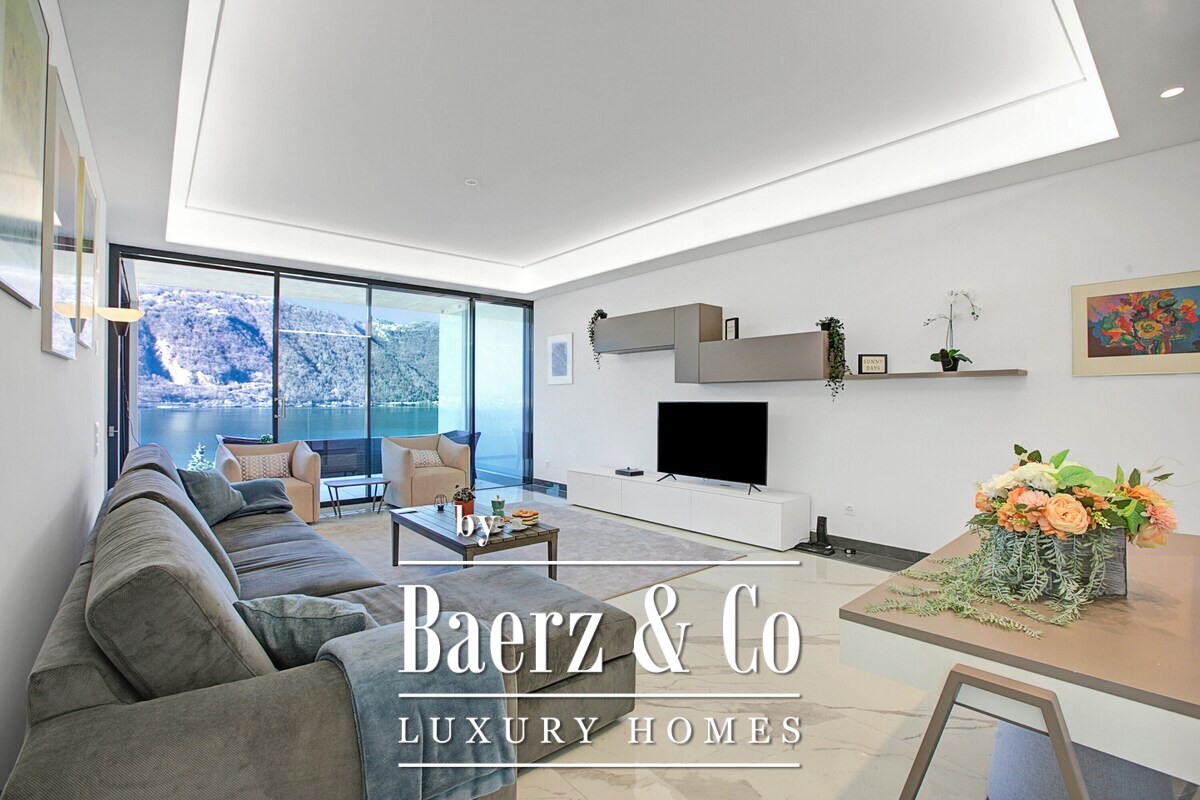 Het appartement biedt 140 m² aan lichte, eigentijdse ruimte met twee slaapkamers en twee badkamers, elk voorzien van direct uitzicht op het meer en stijlvolle en suite faciliteiten. Overvloedig daglicht stroomt naar binnen, waarbij hoge ramen van vloer tot plafond het landschap omlijsten. Het privéterras verlengt het leefgedeelte naar buiten en is ideaal voor een ontbijt in het ochtendlicht of rustige avonden terwijl de zon over het water zakt.