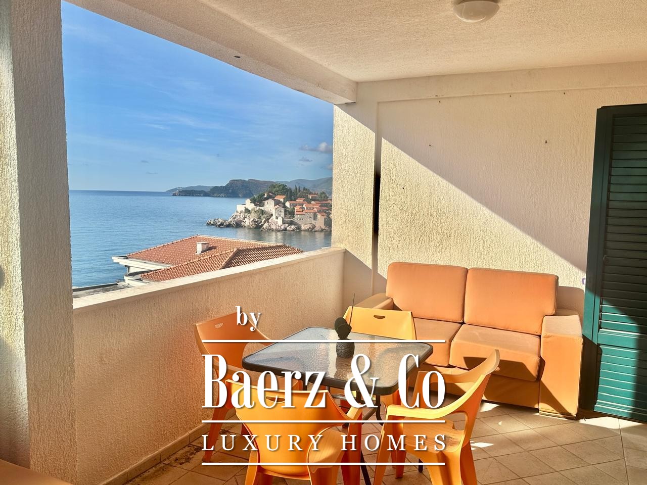 Het duplex appartement Sveti Stefan verwelkomt u met een zeldzame combinatie van panoramisch zee- en bergzicht, op een unieke locatie nabij de Adriatische Zee. Deze residentie van 142 m² bevindt zich op de derde verdieping van een driehoog gebouw, slechts 50 meter van de kust en op loopafstand van het befaamde Milocer park en het Queen's beach. Dankzij de directe aansluiting op de hoofdweg biedt de ligging een aangename balans tussen natuur en bereikbaarheid.