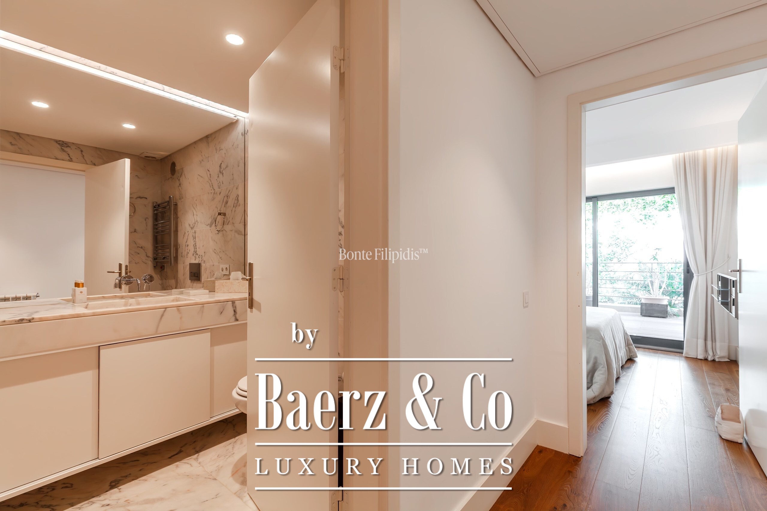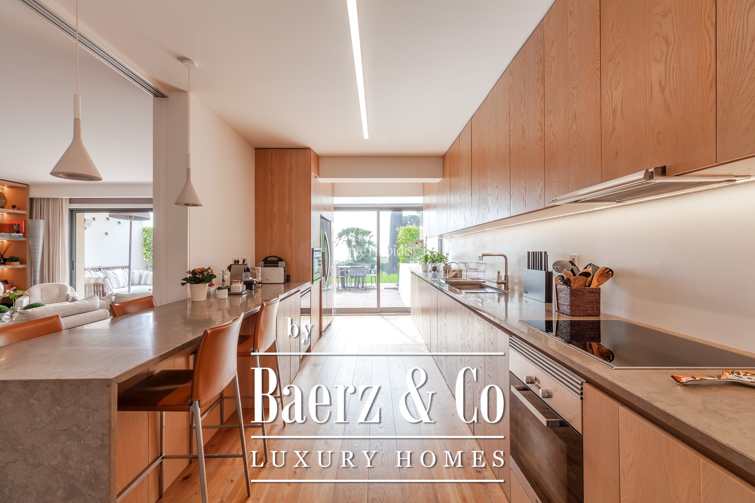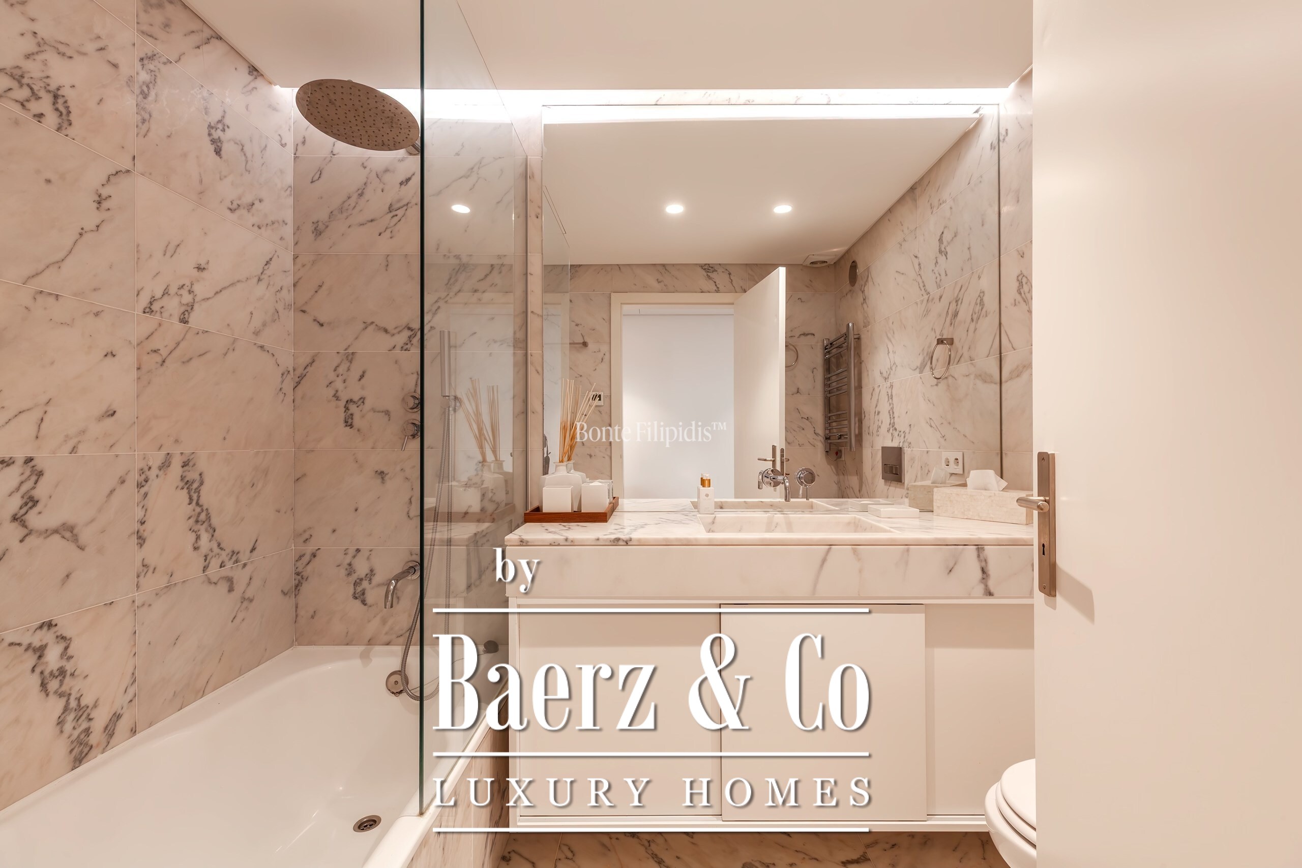 Het appartement beschikt over drie slaapkamers, waaronder een privé suite, en drie badkamers, waarbij comfort en privacy op subtiele wijze behouden blijven. Een volledig uitgeruste keuken vormt het hart van wonen en ontvangen. Essentiële voorzieningen omvatten airconditioning, centrale verwarming, berging en twee inpandige parkeerplaatsen, die een naadloos, modern wooncomfort onderstrepen.