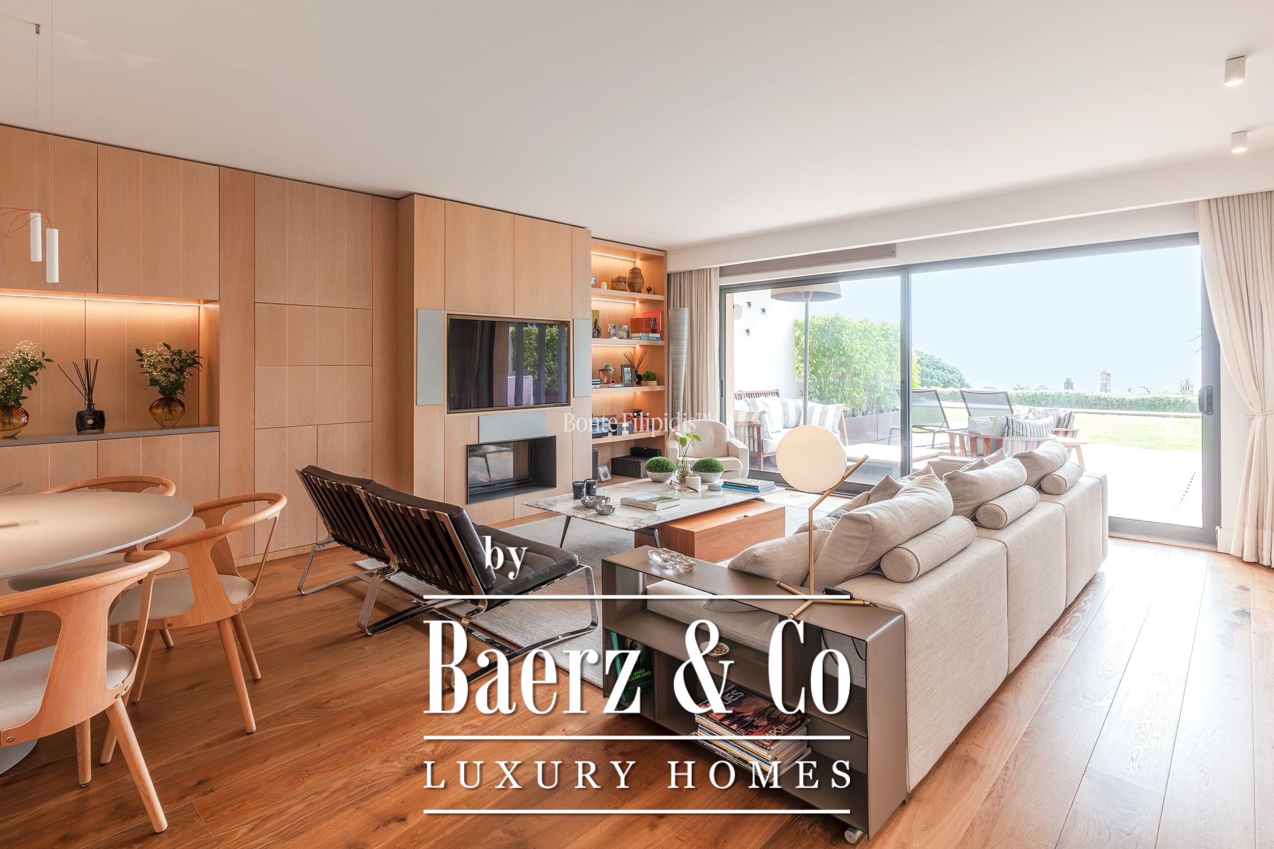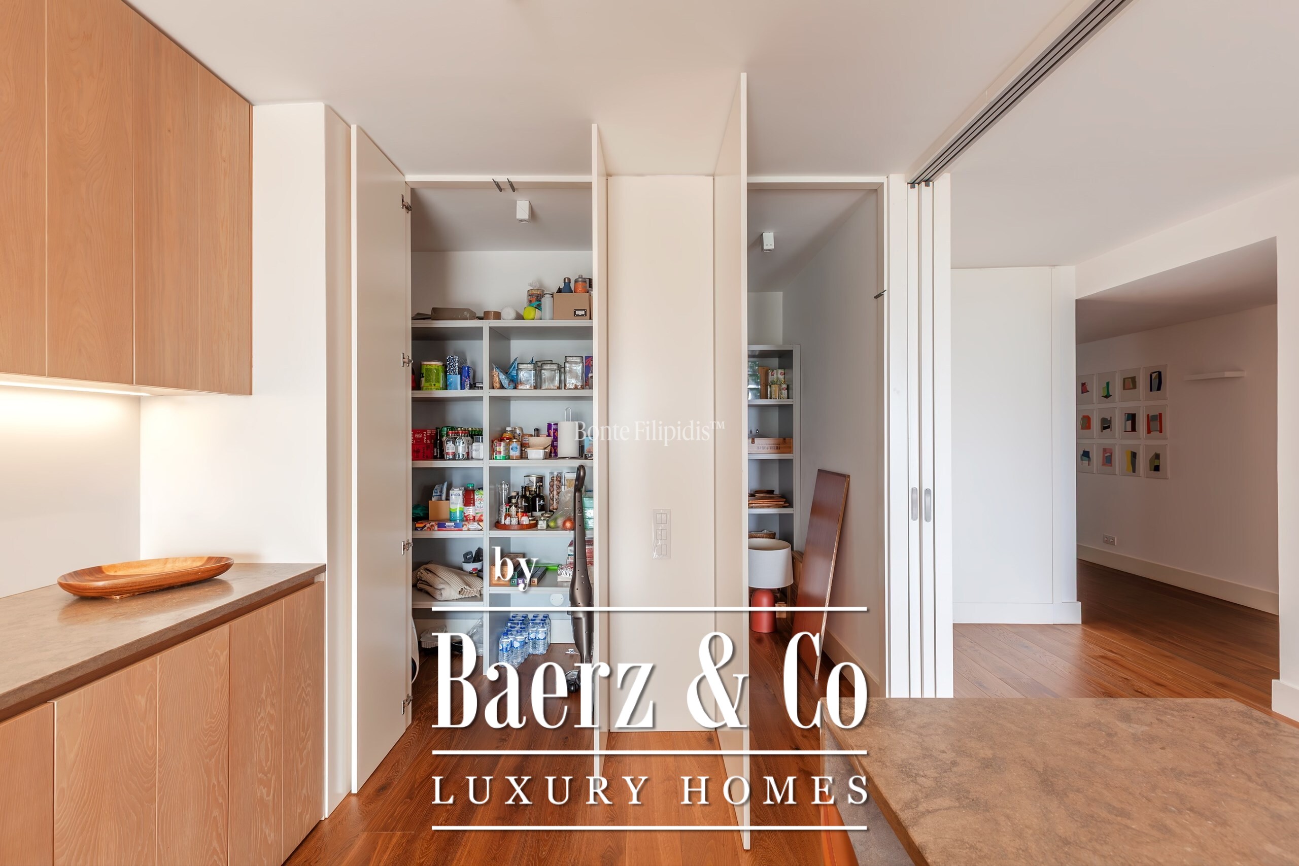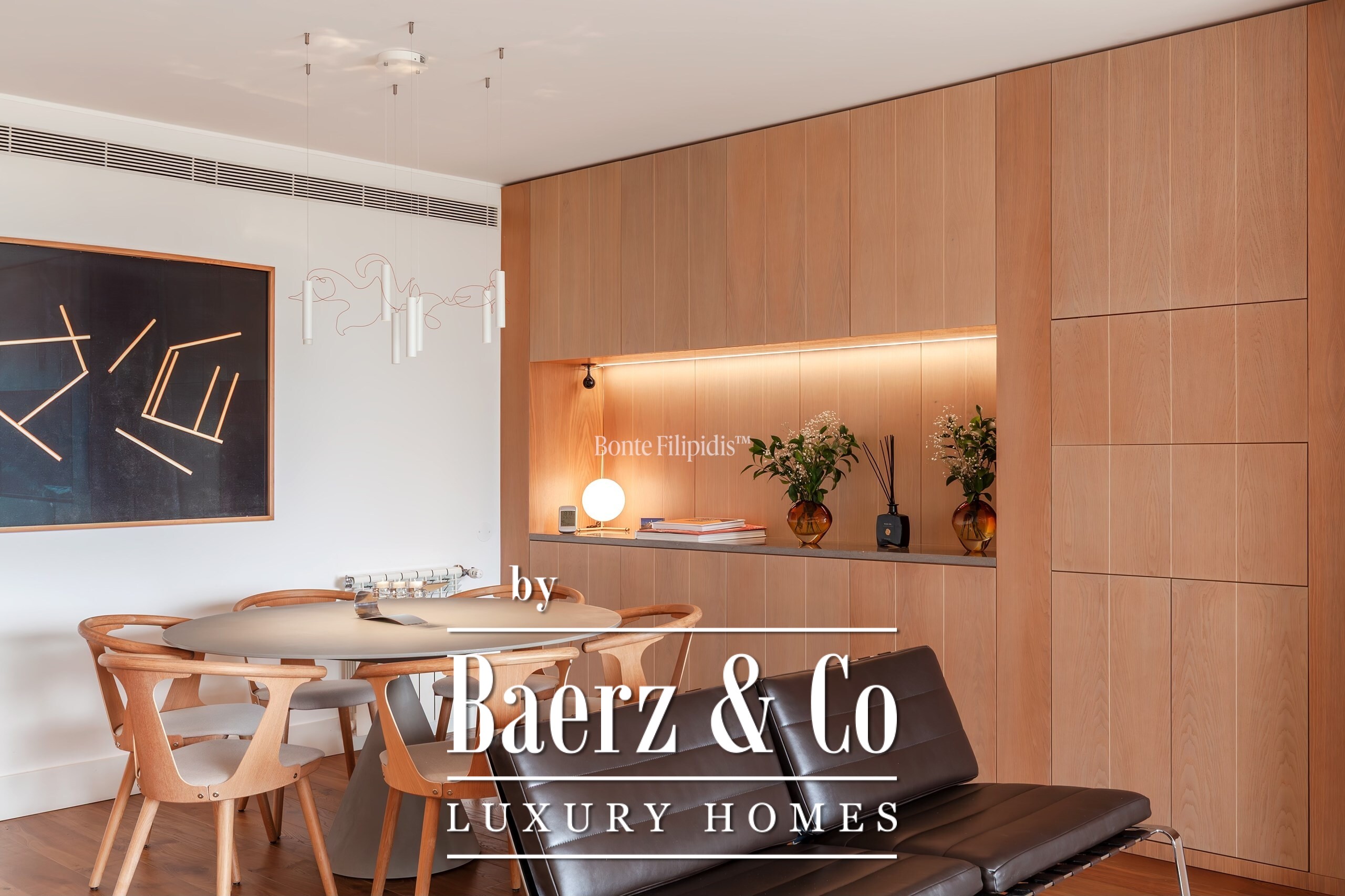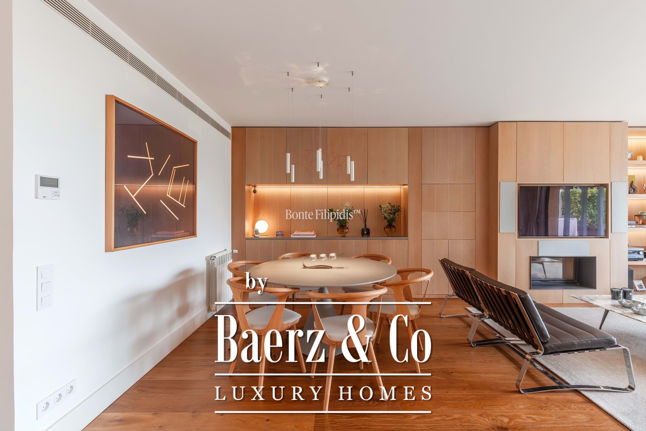 Het appartement beschikt over drie slaapkamers, waaronder een privé suite, en drie badkamers, waarbij comfort en privacy op subtiele wijze behouden blijven. Een volledig uitgeruste keuken vormt het hart van wonen en ontvangen. Essentiële voorzieningen omvatten airconditioning, centrale verwarming, berging en twee inpandige parkeerplaatsen, die een naadloos, modern wooncomfort onderstrepen.