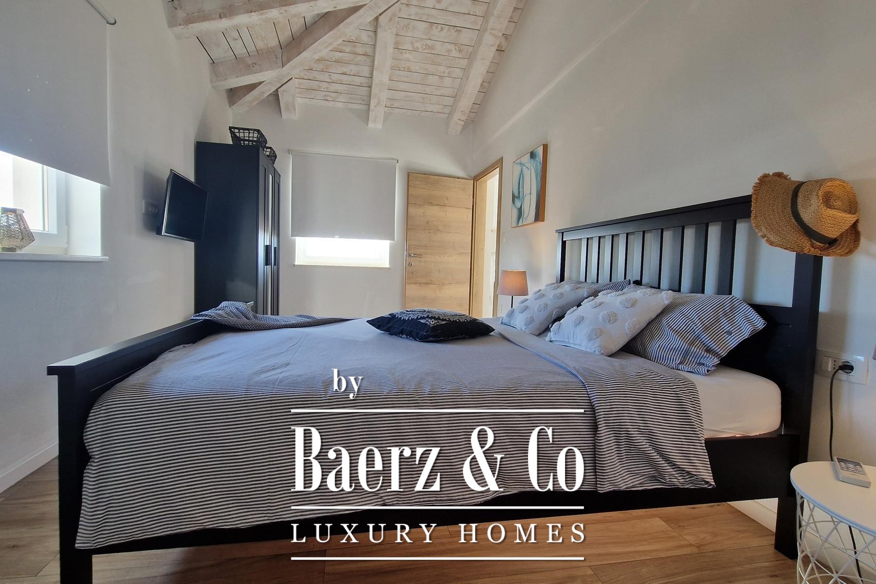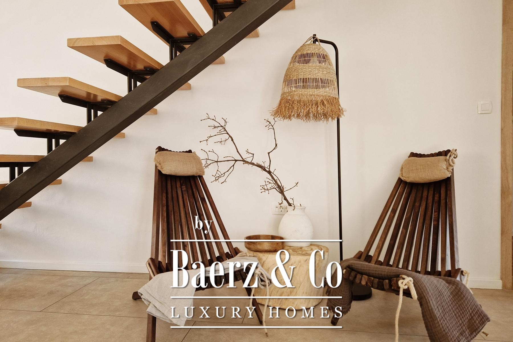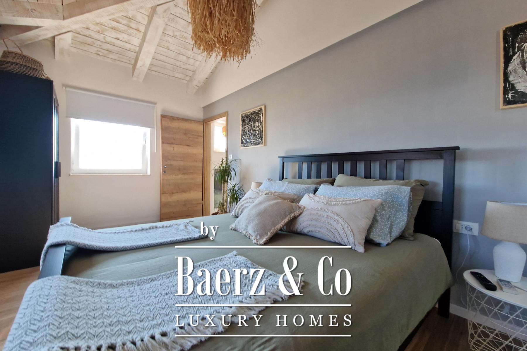 Bij binnenkomst zijn er drie slaapkamers, elk met een eigen en-suite badkamer. De badkamers beschikken over vloerverwarming en de gehele villa is voorzien van airconditioning. Het interieur balanceert zorgvuldig tussen rustiek karakter en moderne luxe, met een royale woonkamer met open haard, een volledig uitgeruste keuken en een eetruimte die uitkomt op een overdekt terras van 36 m². Een extra gastentoilet en een technische ruimte van 14 m² bieden praktische verfijning.
