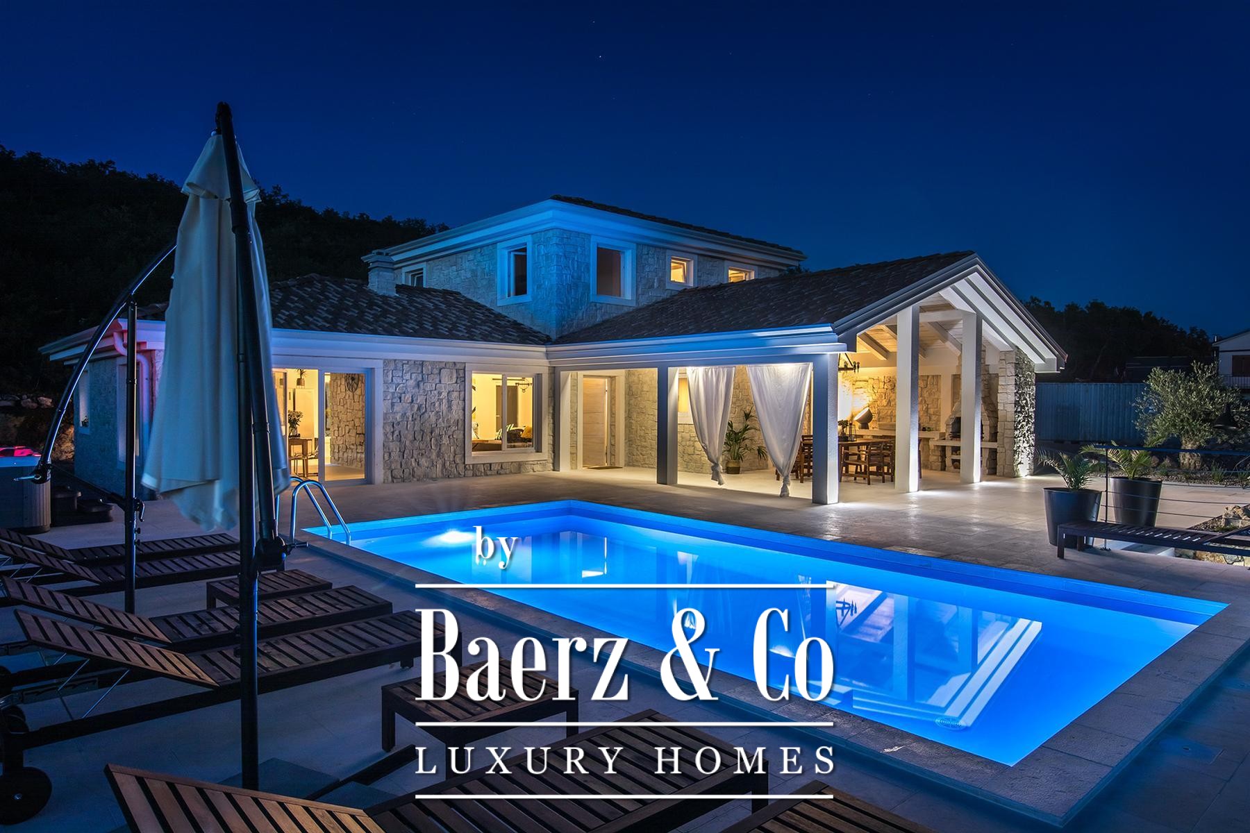 Het buitenleven wordt gekenmerkt door mediterrane beplanting op een volledig omheind perceel van 700 m² met olijf-, lavendel-, rozemarijn- en laurierstruiken. Het verwarmde zwembad van 38 m², de jacuzzi voor zes personen en een massieve houten eettafel nodigen uit tot ontspannen en samenkomen. De stenen barbecue en zonneweide vergroten de gastvrije ambiance van de villa. Met de zee op slechts 900 meter afstand, biedt dit object een zeldzame rust midden in dennen- en eikenbossen. Met een gecertificeerde vijfsterren-verhuurstatus en onbezwaard eigendom is deze stenen villa Crikvenica een uitzonderlijk toevluchtsoord en een waardevolle investering.