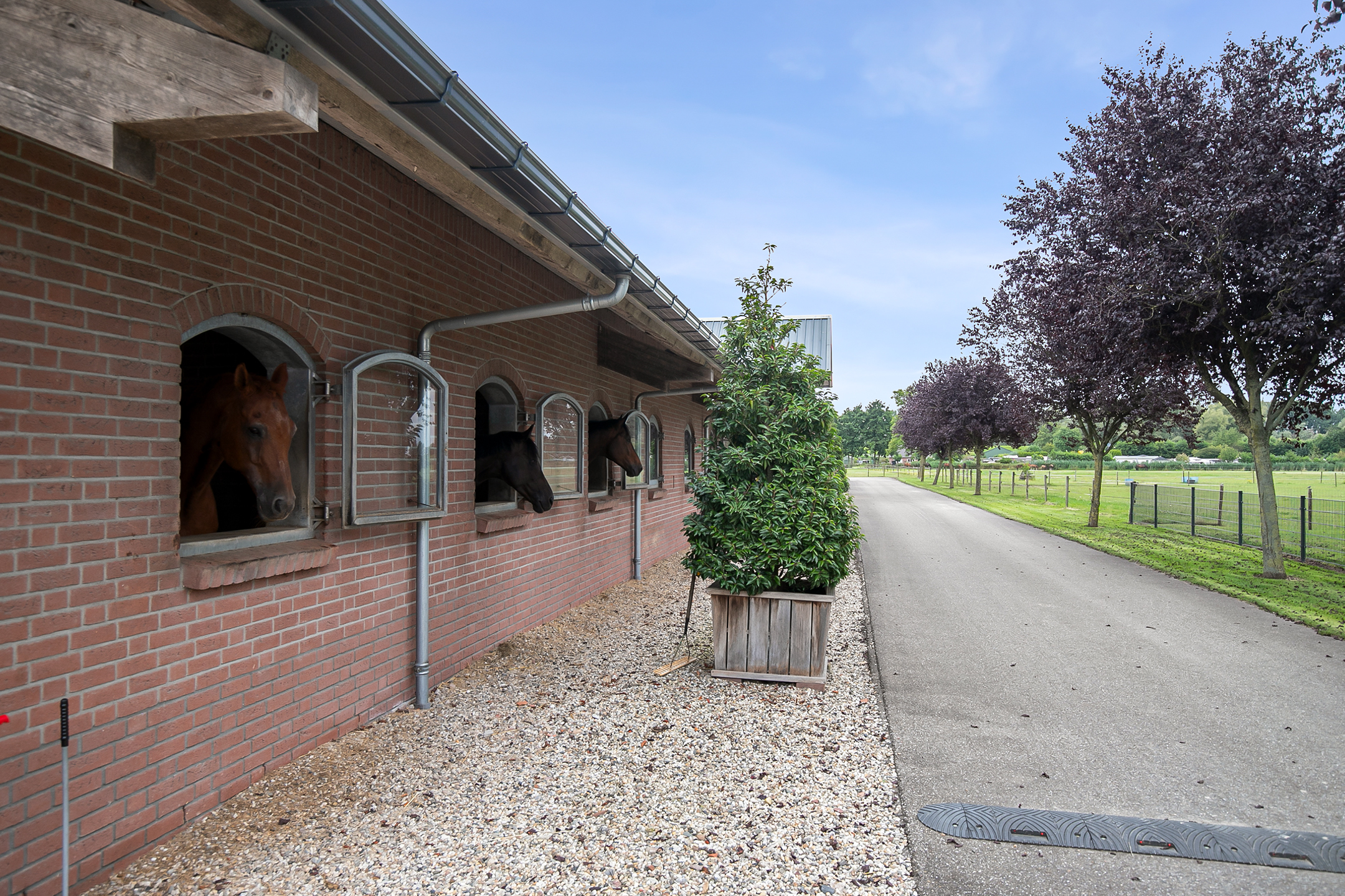 Deze prachtige, complete en goed onderhouden hippische accommodatie biedt volop mogelijkheden door de aanwezigheid van een prachtige luxe afgewerkte vrijstaande woning, in totaal 39 paardenstallen, een royale binnen- en buitenpiste (ca. 21x61 mtr.), een ontvangstruimte, twee appartementen welke perfect zijn voor groomverblijven, een overdekte stapmolen en diverse weilanden. Dit alles is gelegen op een royaal perceel van maar liefst ca. 4 ha. op een uitstekende, centraal gelegen locatie in het midden van Nederland.