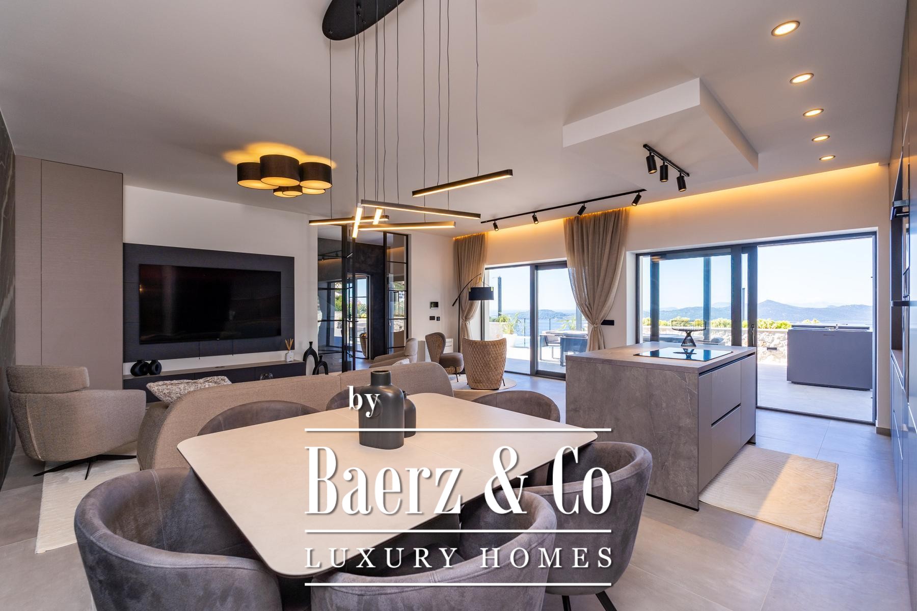 In the heart of idyllic Brsečine, near historical Dubrovnik, stands this magnificent stone house, a perfect synthesis of tradition and modern luxury. Built in 2024, the property offers an exceptional living space in an elevated position, providing spectacular, breathtaking panoramic views. This modern villa, ideal for those seeking privacy, tranquillity, and sophisticated elegance, represents a rare opportunity in the real estate market. Every detail has been meticulously designed to ensure maximum comfort and enjoyment.The spacious area of 300 m2 extends across multiple floors, offering ample space for living and entertaining. The house features four elegantly appointed rooms, three luxuriously equipped bathrooms, and two toilets, ensuring privacy and comfort for all residents and guests. The interior is furnished to the highest standards, including smart home technology that provides unparalleled control and efficiency. Energy efficiency ensures low maintenance