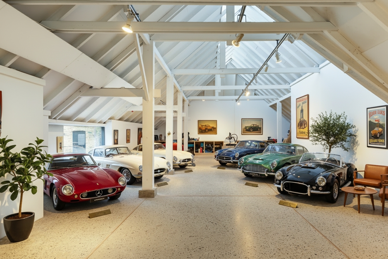 De aangrenzende bedrijfsruimte van 445 m² biedt talloze gebruiksmogelijkheden: atelier, galerie, showroom, kantoor of werkplaats. De hoge nok met zwarte houten gebinten, grote raampartijen en royale vertrekken creëren een indrukwekkende sfeer van ambacht en allure.