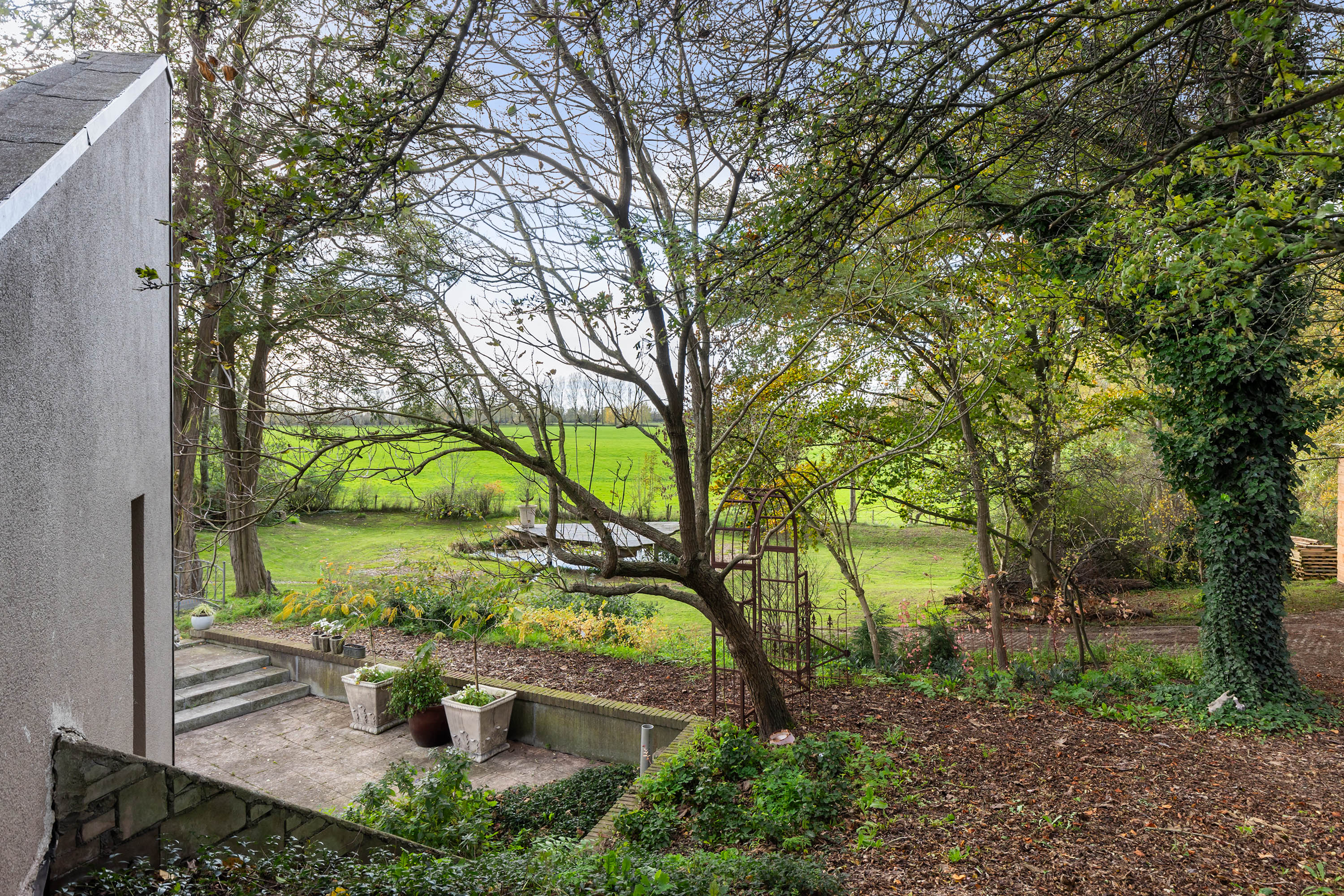 De tuin rondom de woning is met gevoel voor stijl en rust aangelegd. De achtertuin ligt op het zuiden en vloeit naadloos over in de omliggende landerijen, terwijl bomen en hagen privacy en beschutting bieden.