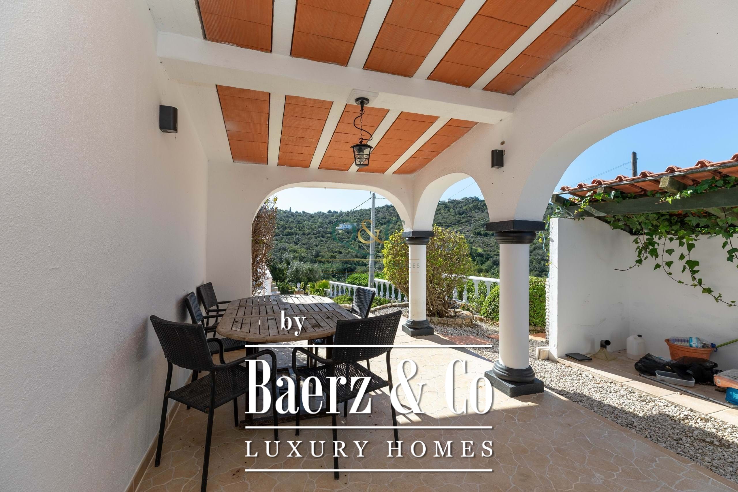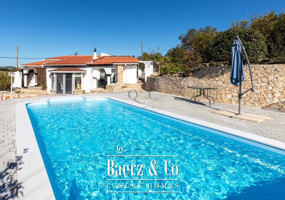 Vrijstaande villa Estoi biedt een verfijnde kans voor wie rust en het authentieke leven in de Algarve zoekt. Net buiten het dorp Azinheiro ligt deze gelijkvloerse woning met 119 m² aan lichte, harmonieuze interieurs, omgeven door panoramisch uitzicht op de bergen en het omliggende landschap. Het doordachte ontwerp voert van een uitnodigende entreehal naar een royale, nieuw ingerichte woonkeuken met eetgedeelte, die in open verbinding staat met de woonkamer. Vanuit hier openen de tuindeuren zich direct naar het op het zuiden gelegen terras met zwembad, wat zorgt voor een vloeiende overgang tussen verfijnde binnenruimtes en ontspannen buitenleven.