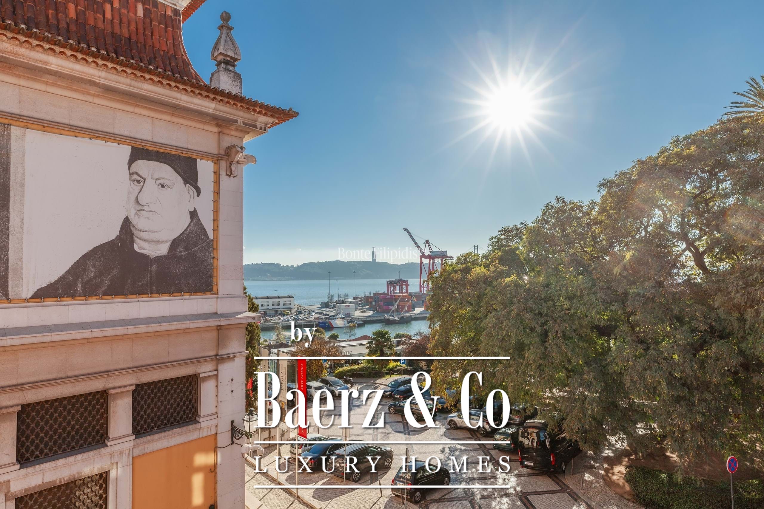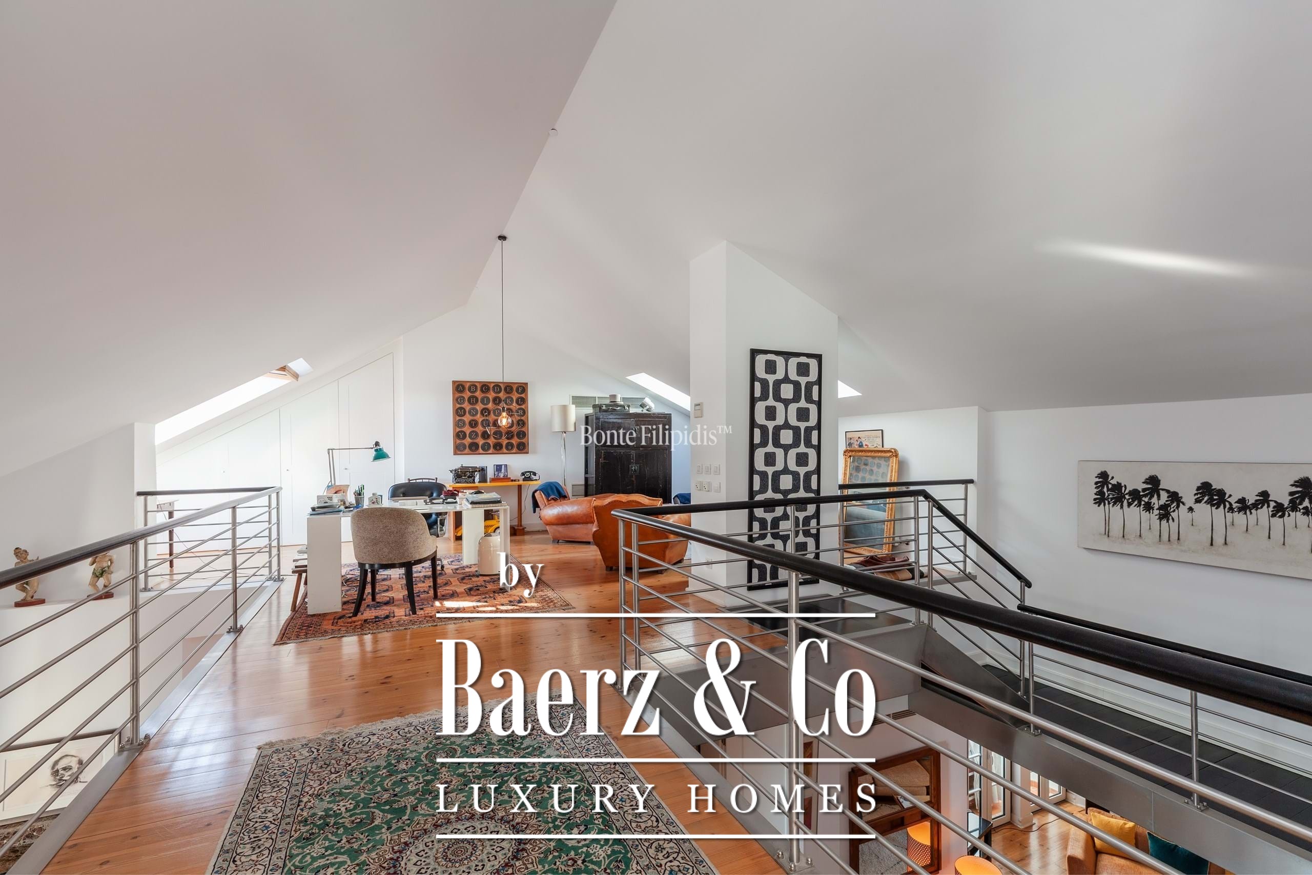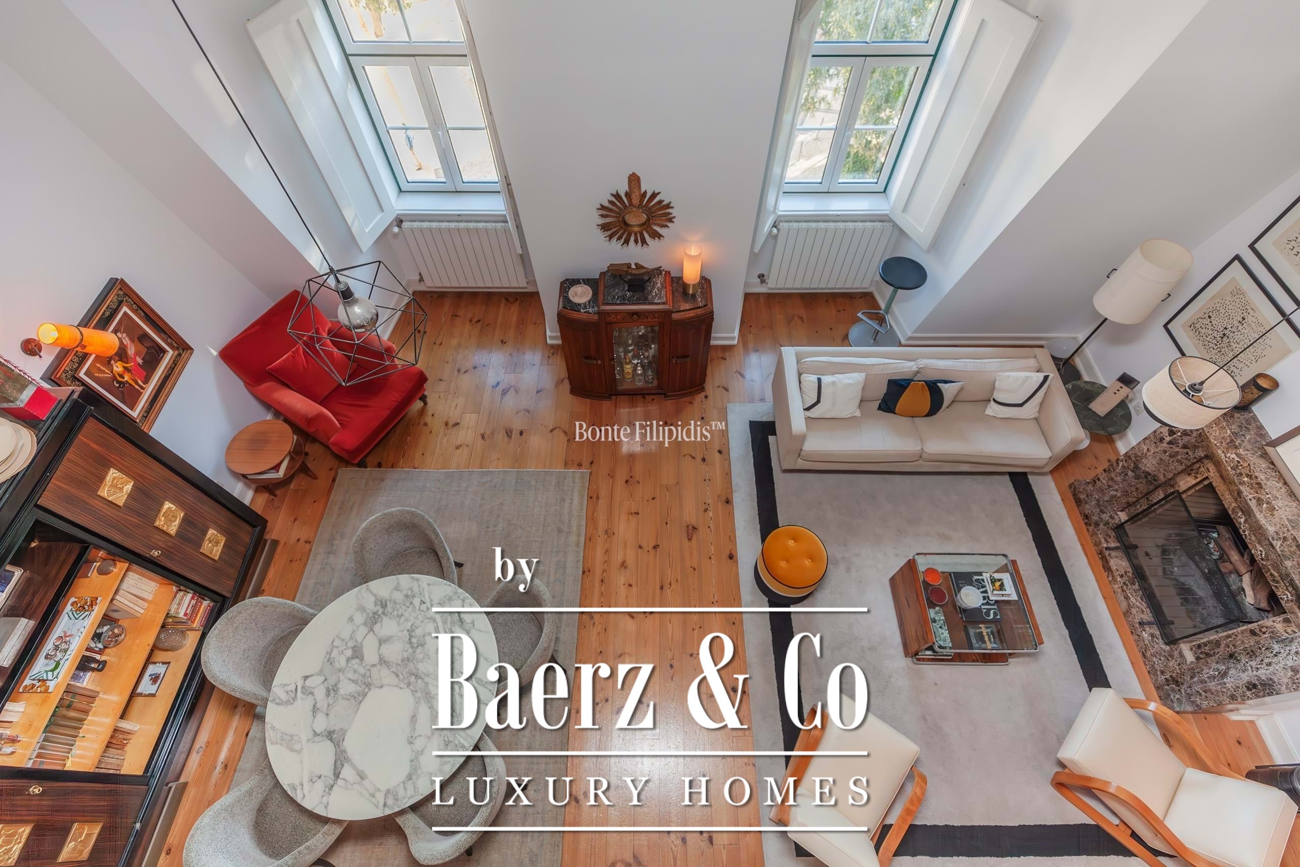 Dit duplexappartement in het hart van Santos, een van de meest geliefde wijken van Lissabon, biedt een woonoppervlak van 343 m² verdeeld over twee verfijnde woonlagen. Bij binnenkomst wordt u begroet door een woonkamer met dubbele plafondhoogte van 44,5 m² en een haard, die het evenwicht tussen licht en ruimte benadrukt. Grenzend ligt de eetkamer van 28 m², die toegang geeft tot een intiem terras met uitzicht over de rivier. In de volledig uitgeruste keuken van 16 m² gaan functionaliteit en elegantie moeiteloos samen.