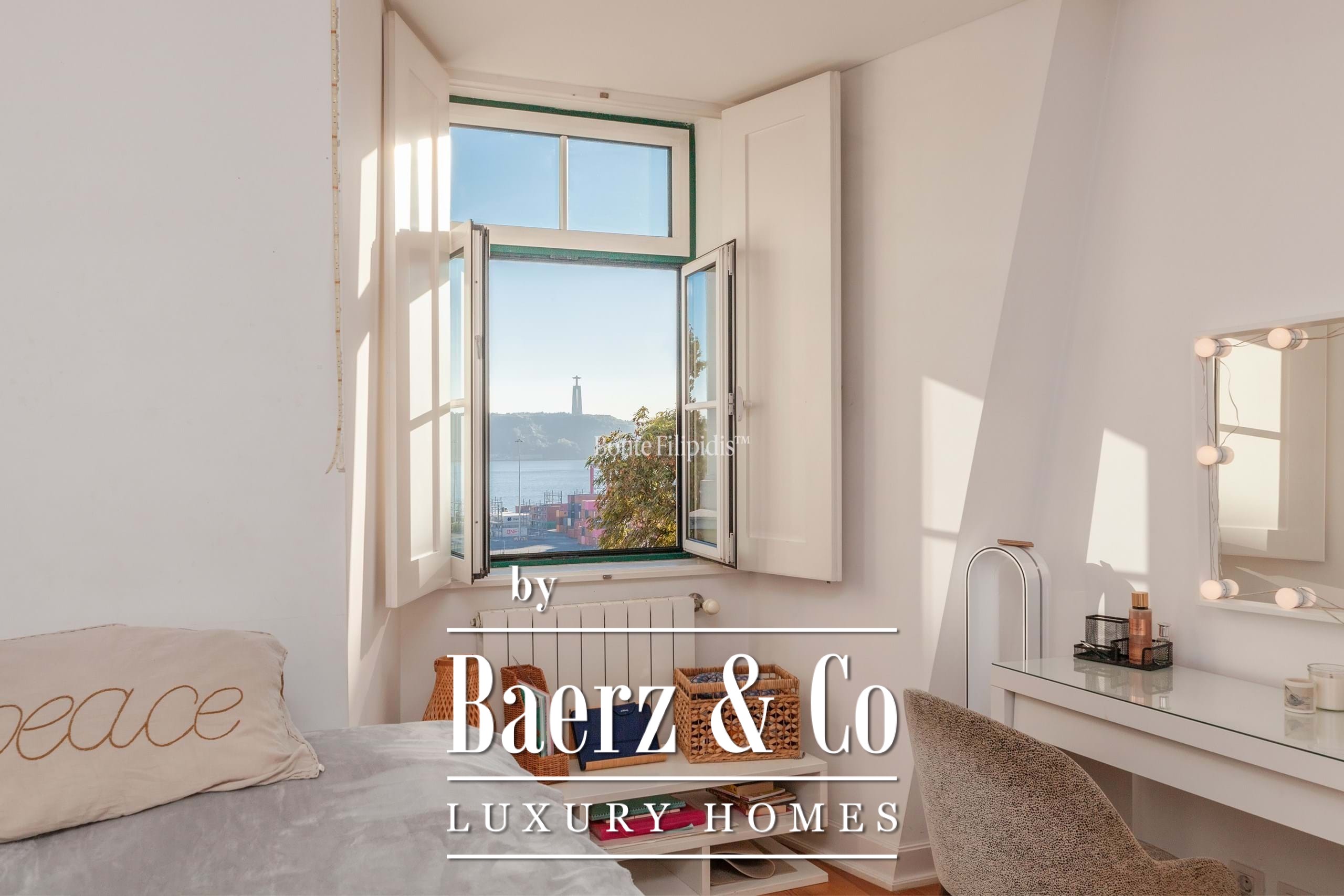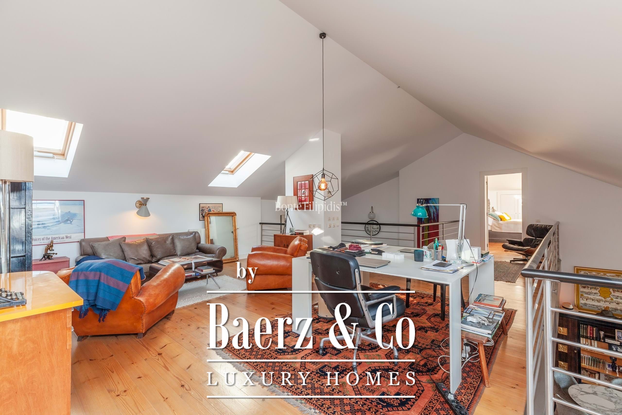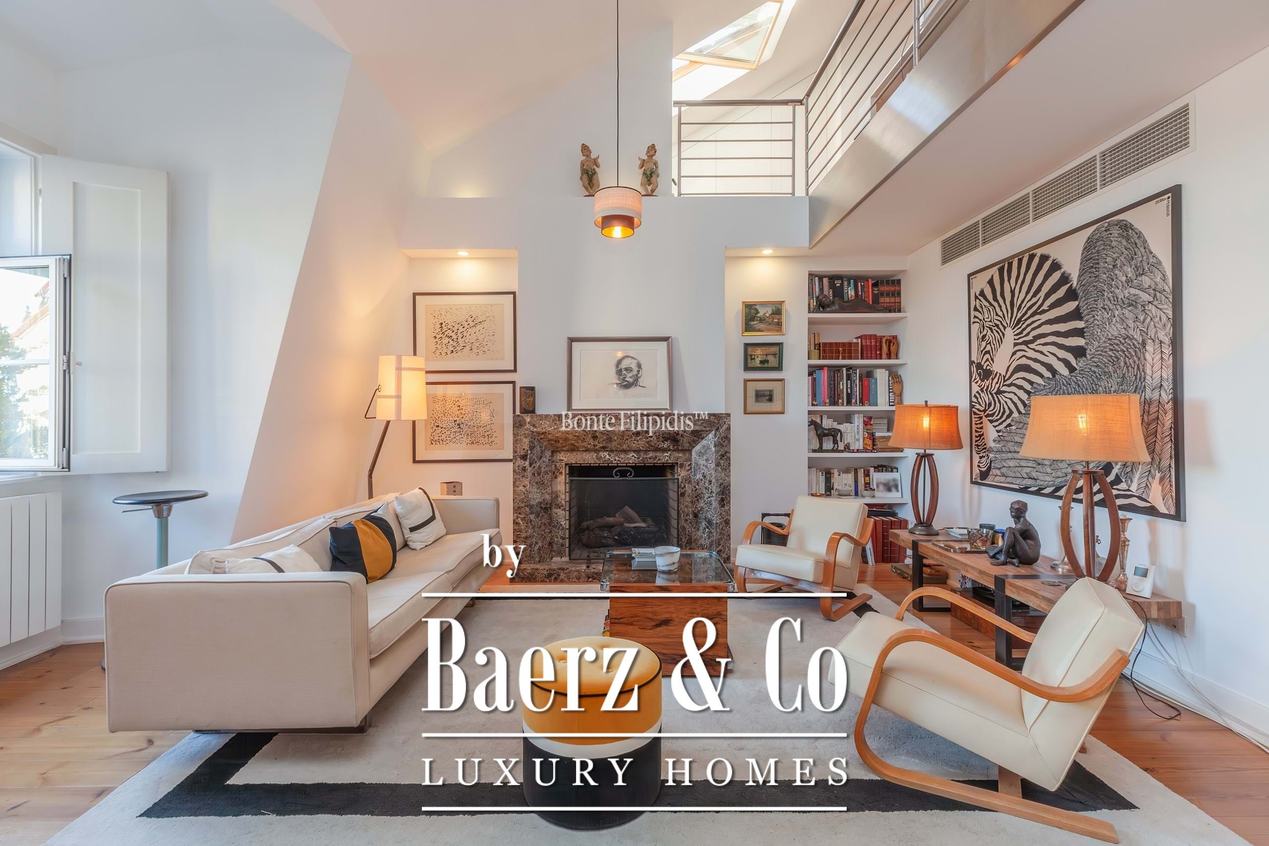 Dit duplexappartement in het hart van Santos, een van de meest geliefde wijken van Lissabon, biedt een woonoppervlak van 343 m² verdeeld over twee verfijnde woonlagen. Bij binnenkomst wordt u begroet door een woonkamer met dubbele plafondhoogte van 44,5 m² en een haard, die het evenwicht tussen licht en ruimte benadrukt. Grenzend ligt de eetkamer van 28 m², die toegang geeft tot een intiem terras met uitzicht over de rivier. In de volledig uitgeruste keuken van 16 m² gaan functionaliteit en elegantie moeiteloos samen.