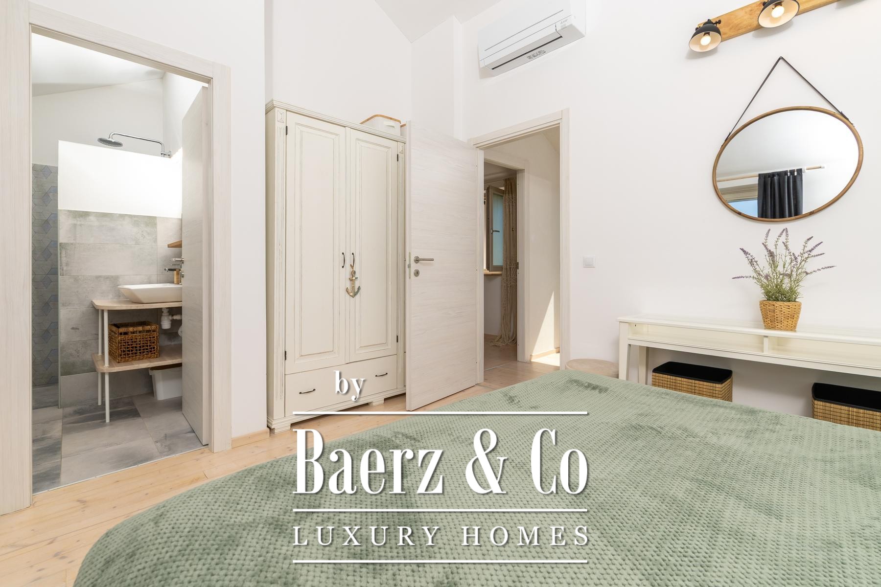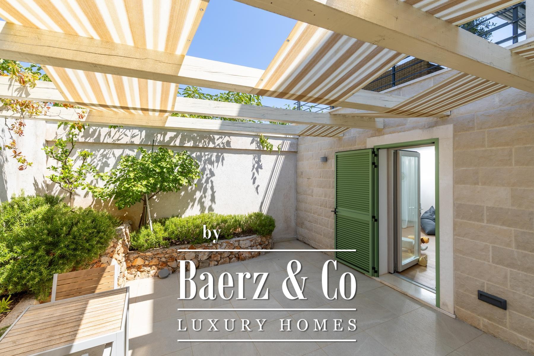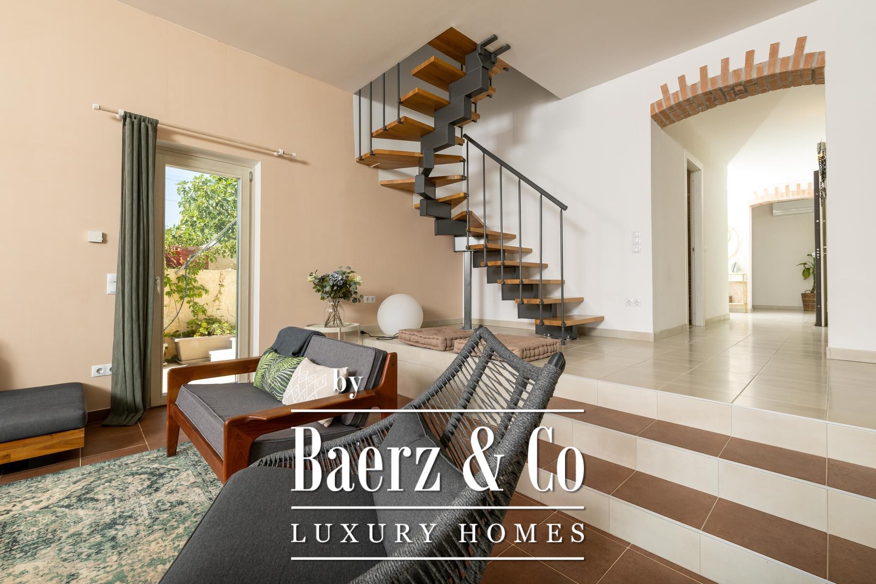 Vanuit de entree loopt u door naar een eigentijdse keuken en een extra zomerkeuken; samen met een royaal terras van 24 m² en een terras met zwembad vormt dit de ideale setting voor privé-bijeenkomsten of serene rust. Op de eerste verdieping zijn drie slaapkamers, elk met een eigen badkamer, een inloopkast en een flexibele studio, alle met toegang tot ruime terrassen.
